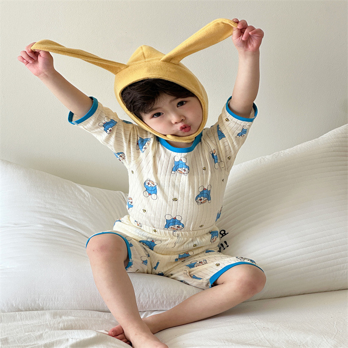 어린이 여름 자카드 에어컨 의류 남녀 아기 통기성 잠옷 세트 7부 소매 홈웨어 아동복 반팔