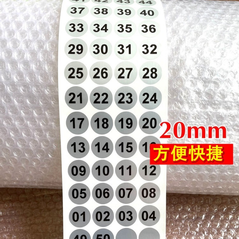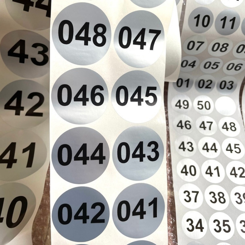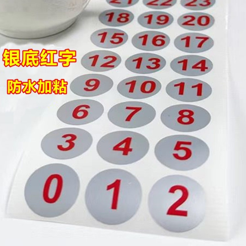 라운드 디지털 페이스트 실버 방수 라벨 컵 고온 소독 일련 번호 1-50 디지털 KTV 마크 페이스트