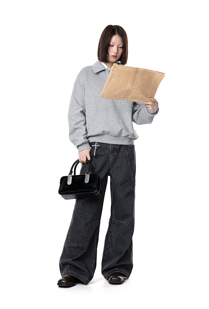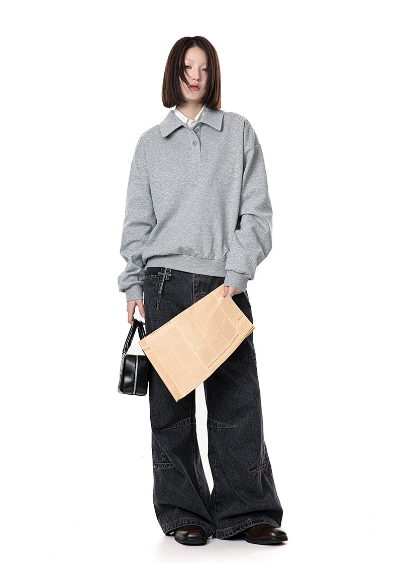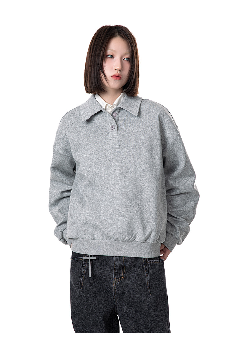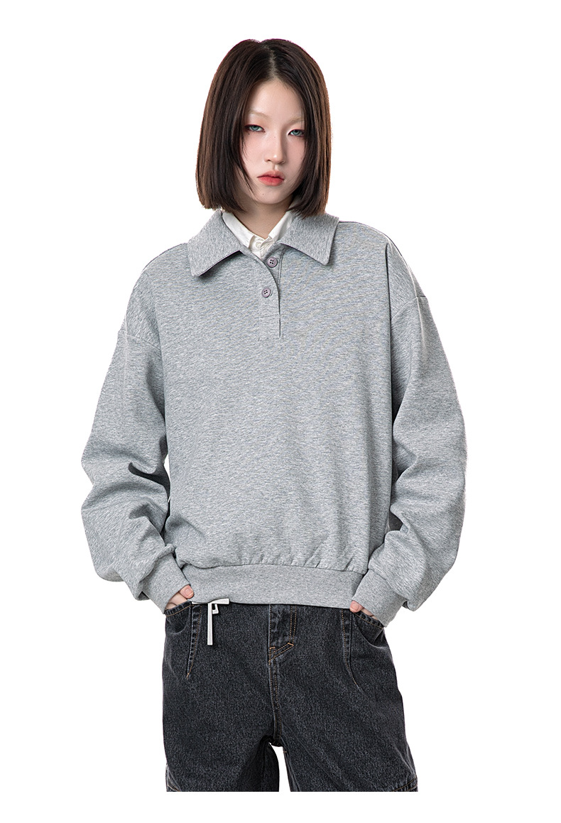 MADEEXTREME 280g 액체 면화 여전히 고급 남성용 캐주얼 조커 단색 옷깃 폴로 스웨터 재킷 여성