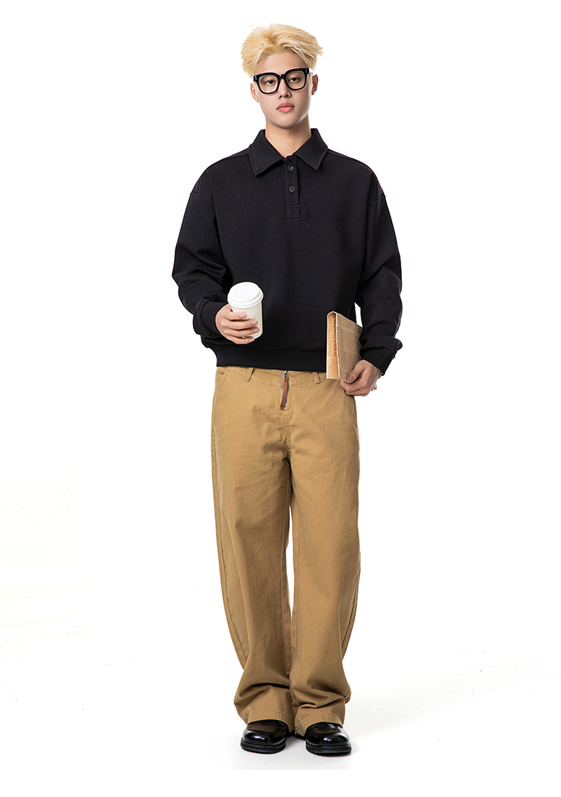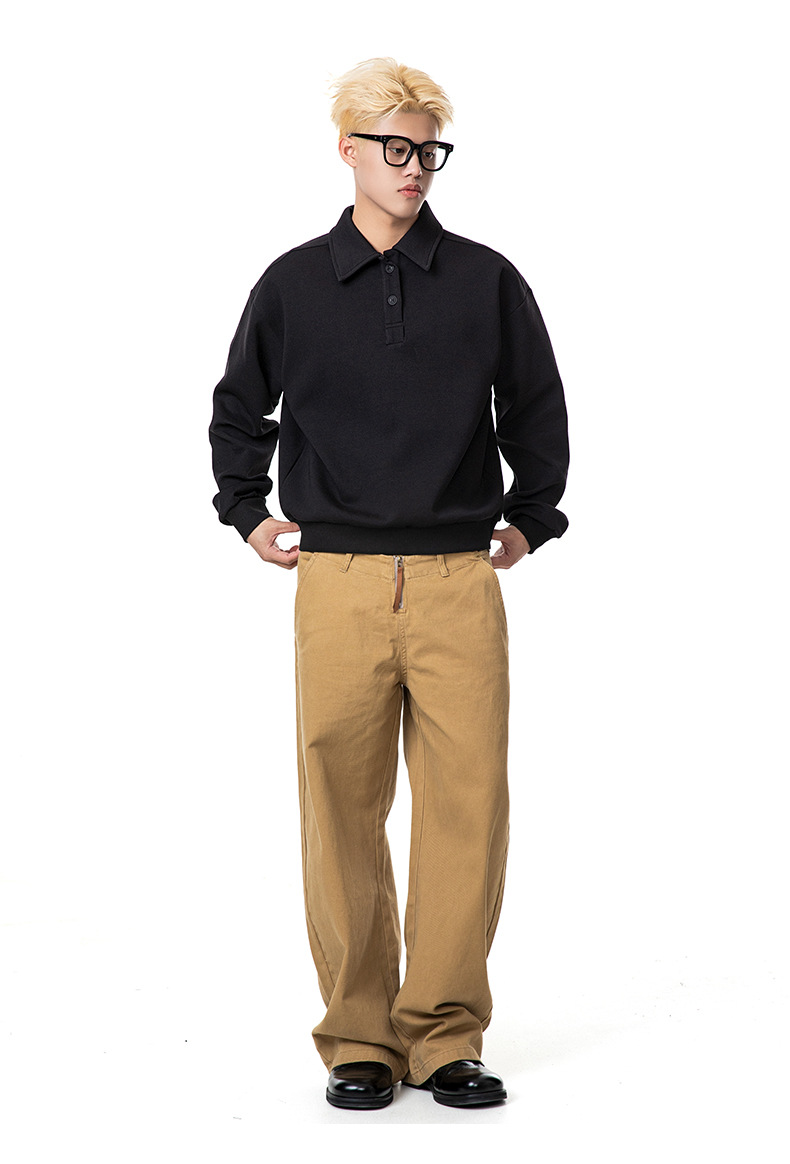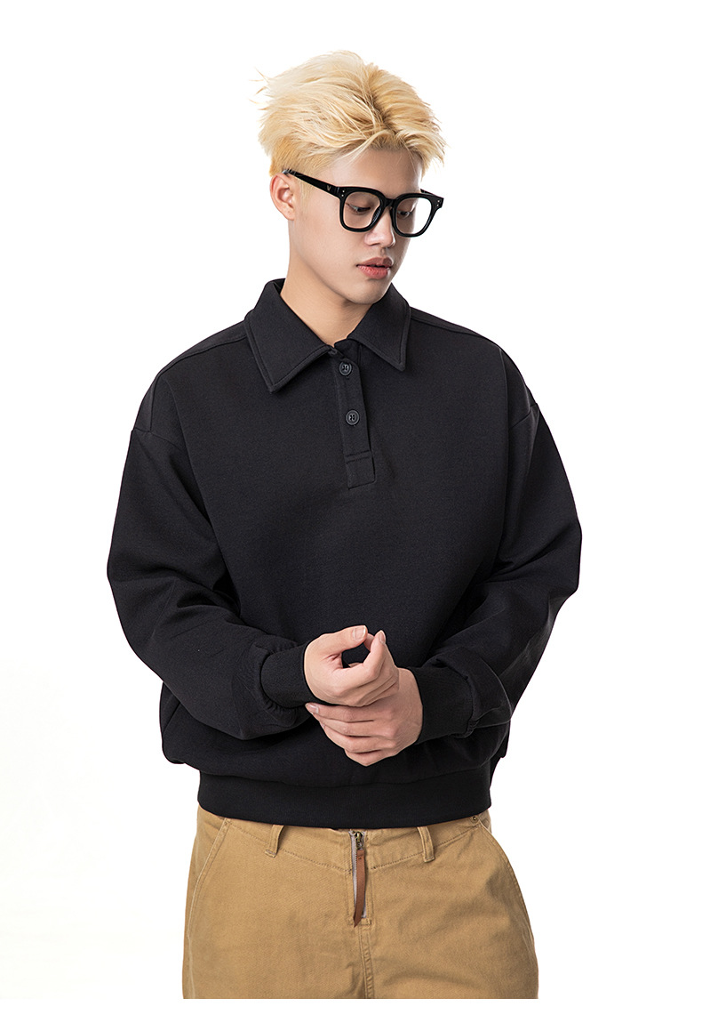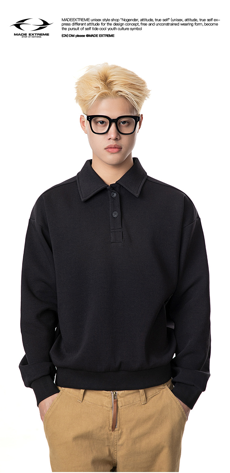 MADEEXTREME 280g 액체 면화 여전히 고급 남성용 캐주얼 조커 단색 옷깃 폴로 스웨터 재킷 여성스토어 가기