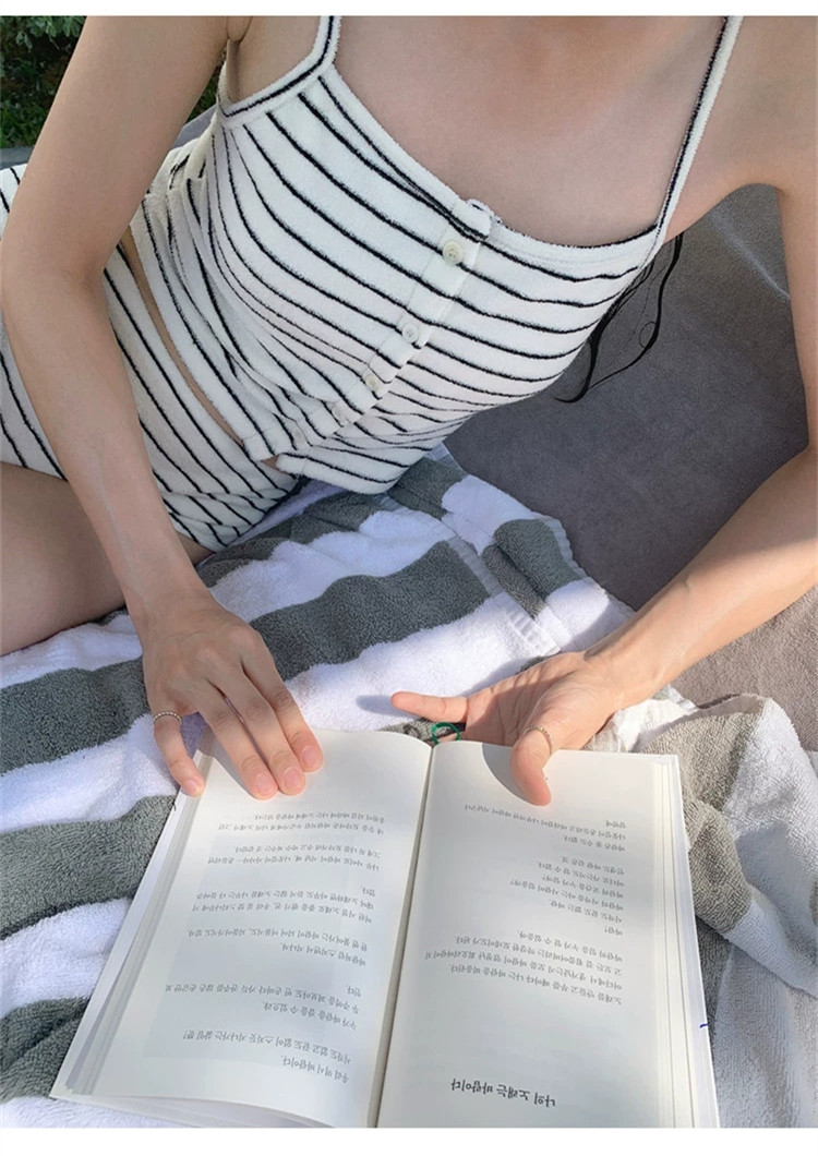 상쾌한 연령 감소 슬림 스트라이프 스타일 디덕트 수영복 여성 2025 년 여름 뉴 벨리 커버 슬리밍 수영복스토어 가기