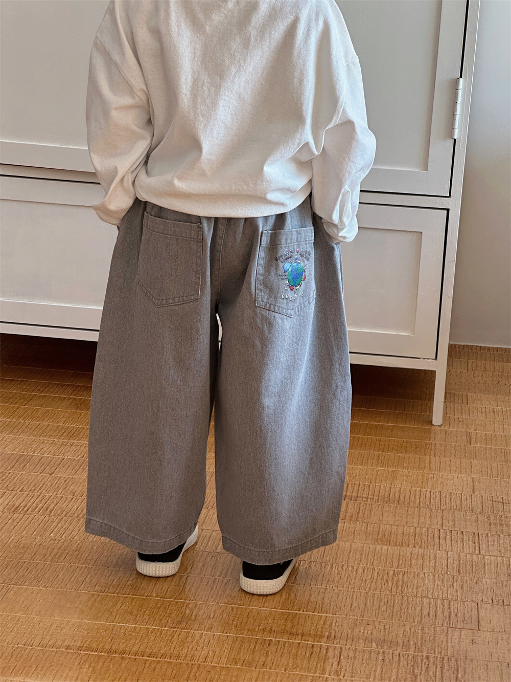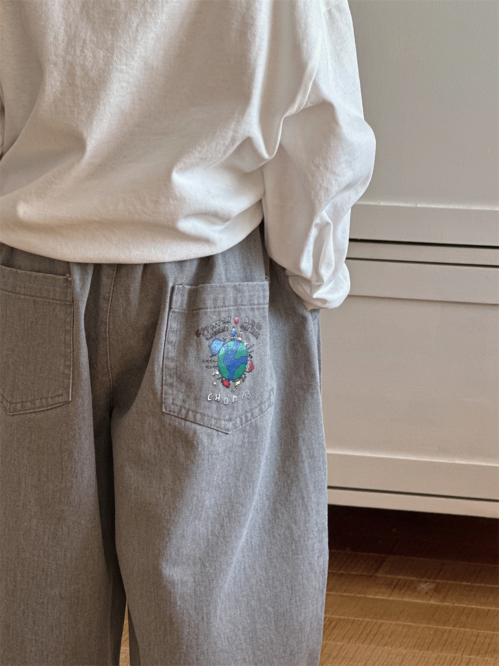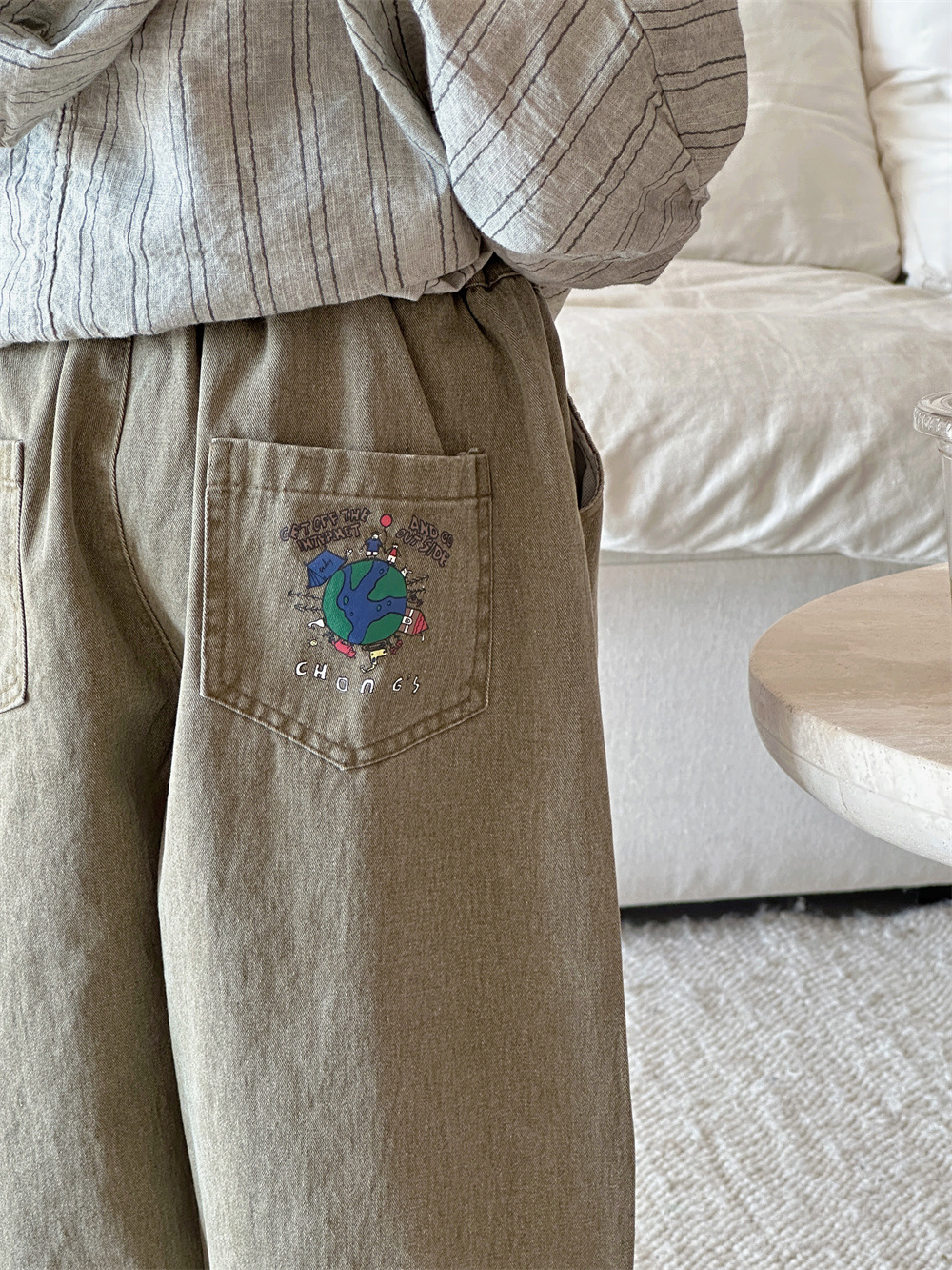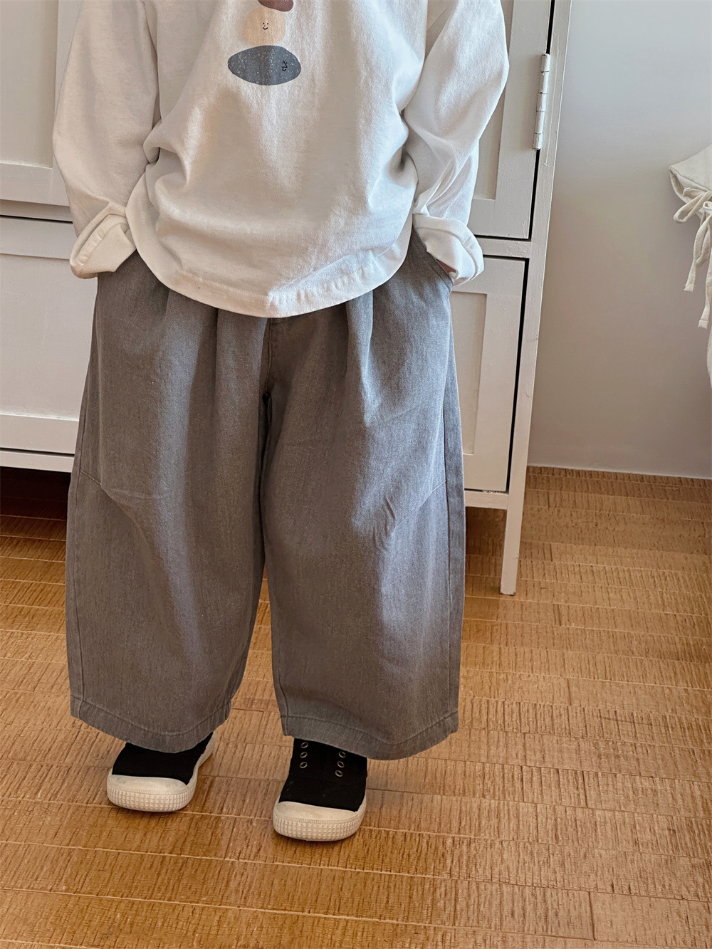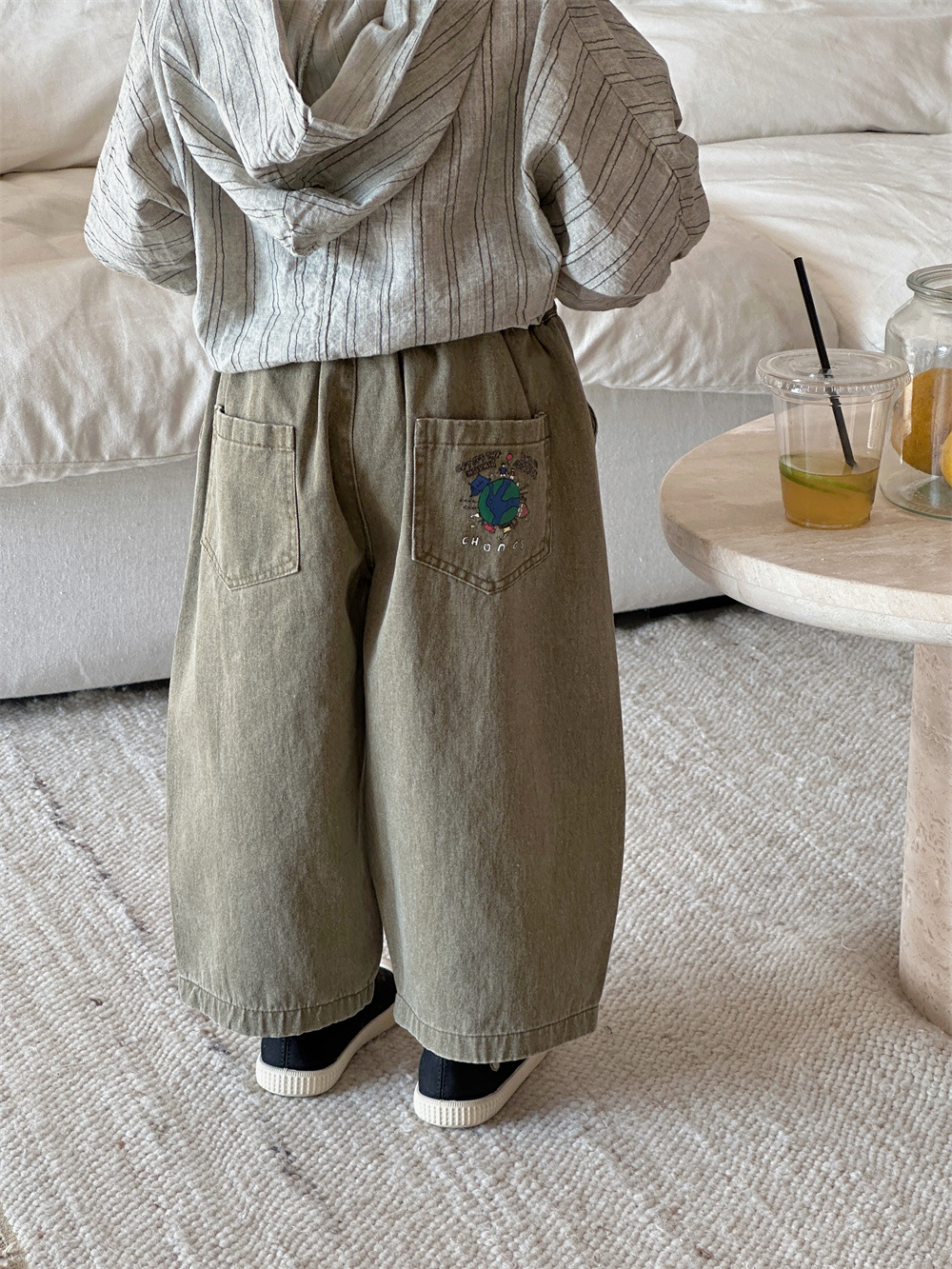 Montaigne 어린이 바지 봄과 가을 2025 새로운 소년과 소녀 캐주얼 바지 아기의 스트레이트 와이드 다리 트렌디 아동복스토어 가기