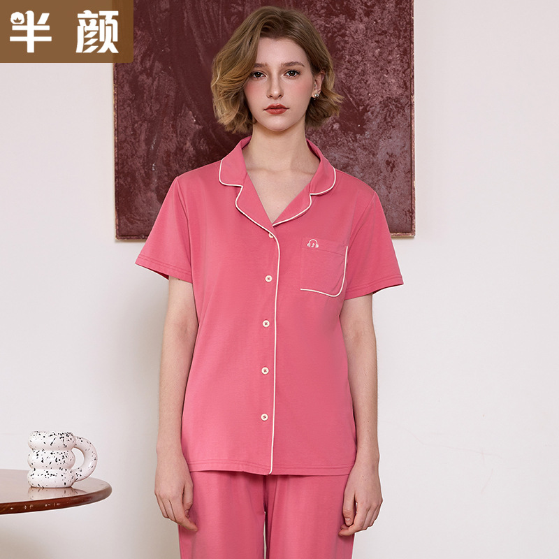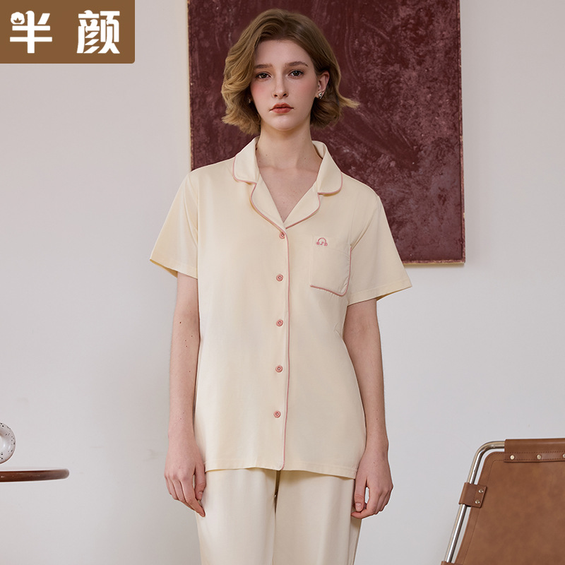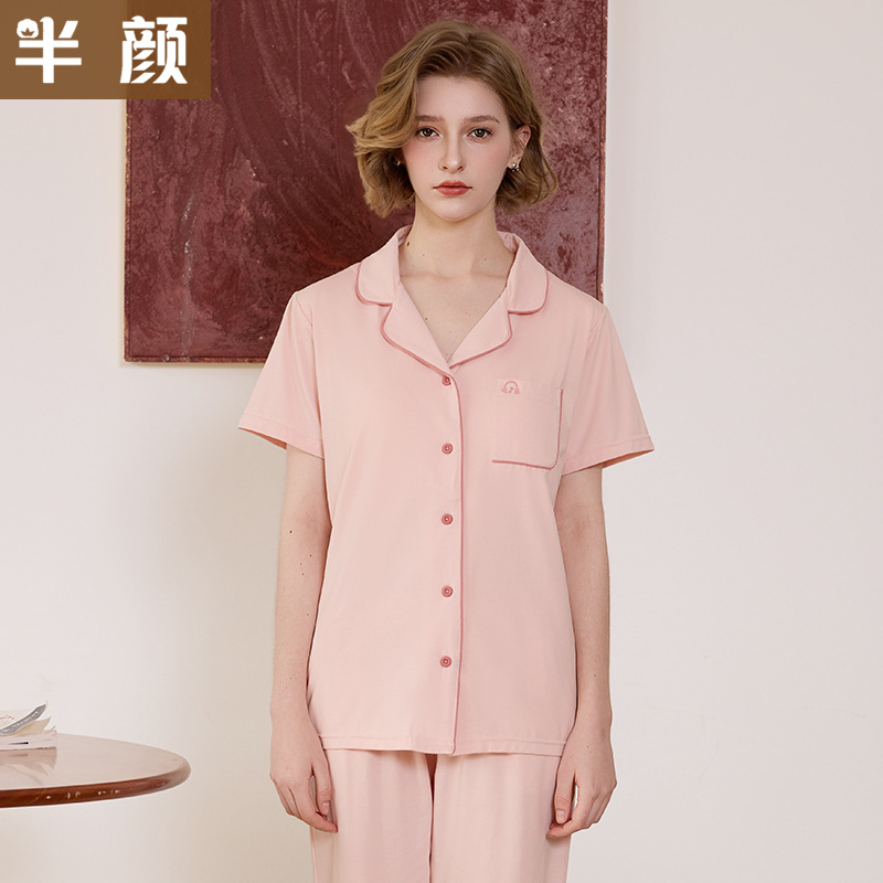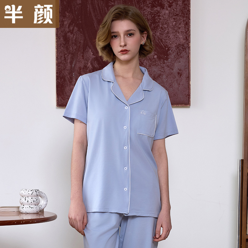 봄과 여름 새 커플 니트 란징 모데 일 코튼 반팔 바지 카디건, 가슴 패드 프리 브라 여성용 잠옷스토어 가기