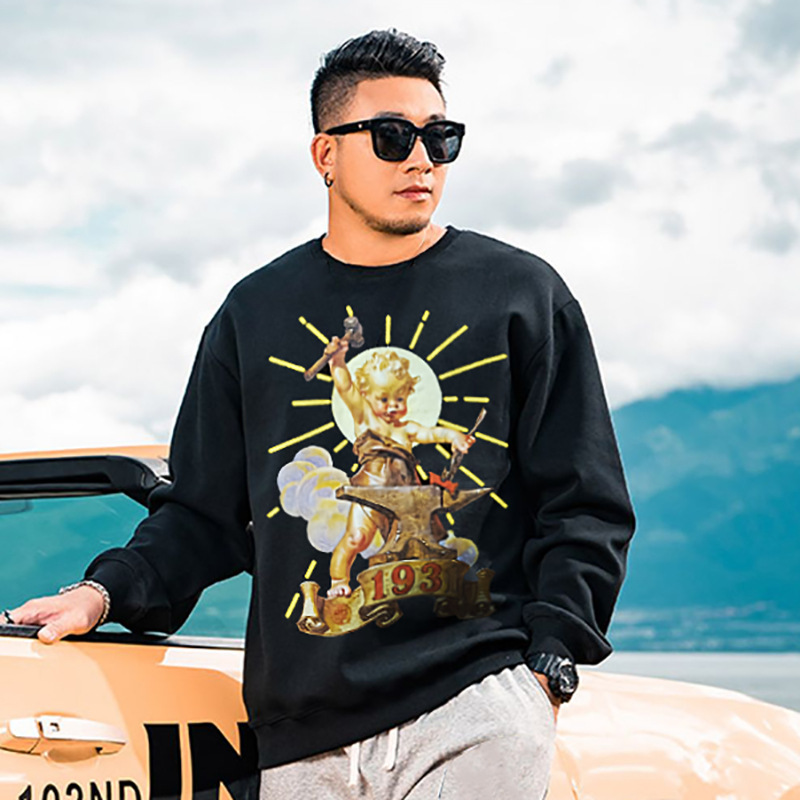 2023 년 겨울 남성 의류 플러스 지방 증가 느슨한 뚱뚱한 형제 풀오버 기모 두꺼운 캐주얼 크루 넥 뚱뚱한 남자 스웨터스토어 가기