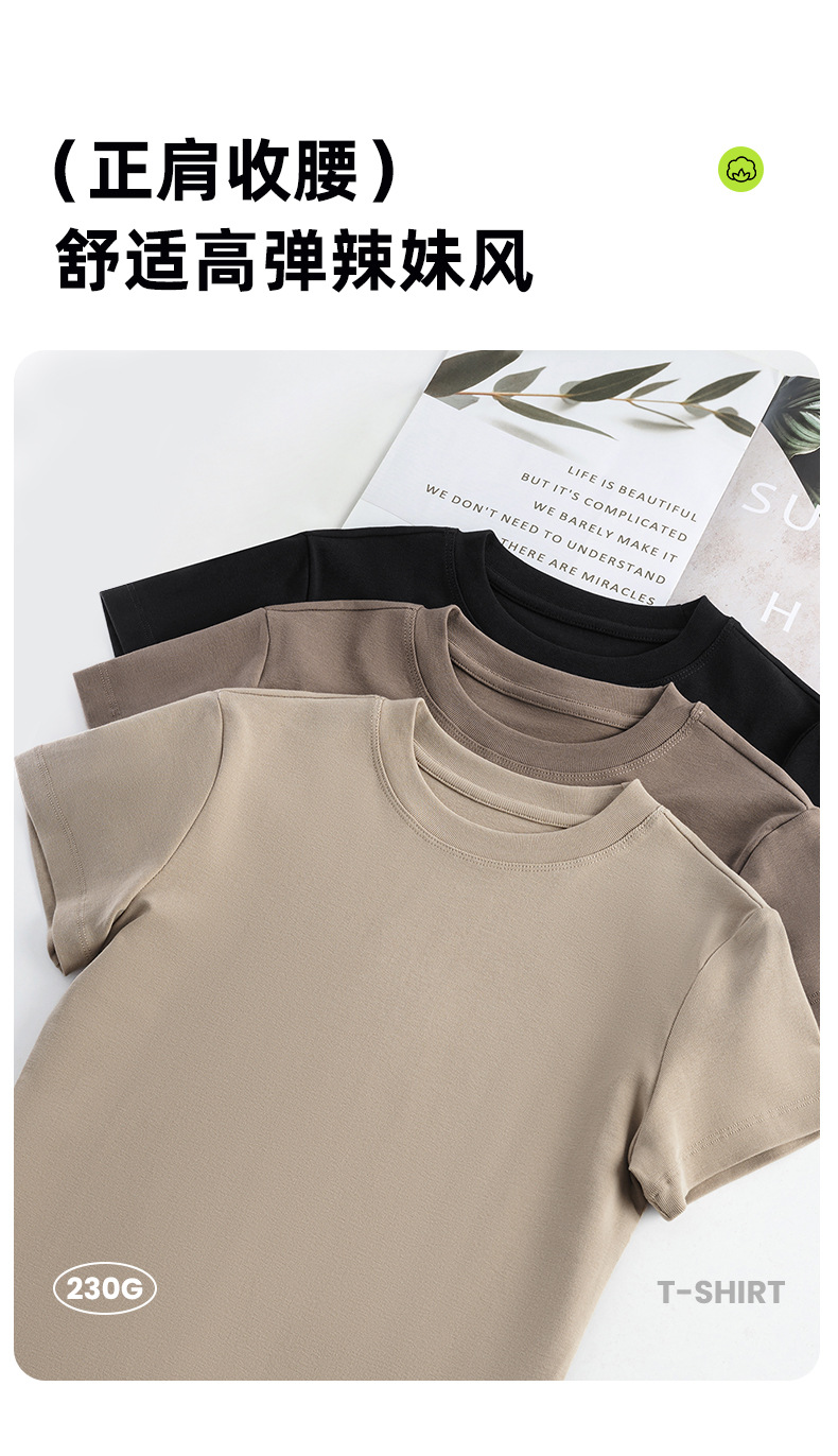 2025 년 여름 새 어깨 반팔 티셔츠 여성용 슬림 핏 타이트 허리 스파이스 소녀의 캐주얼 슬림 룩 라운드 넥 쇼트 탑