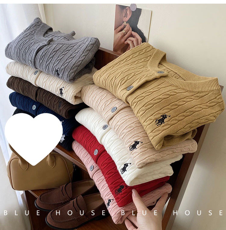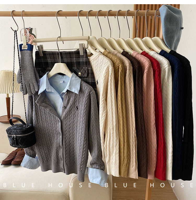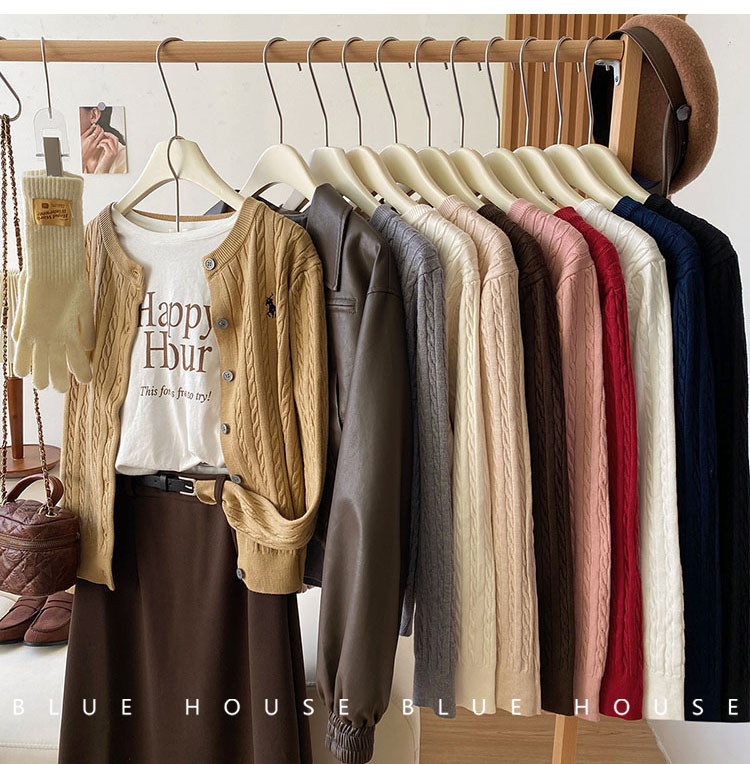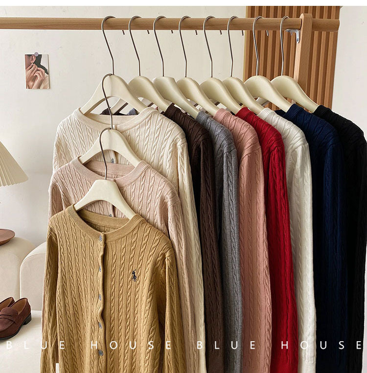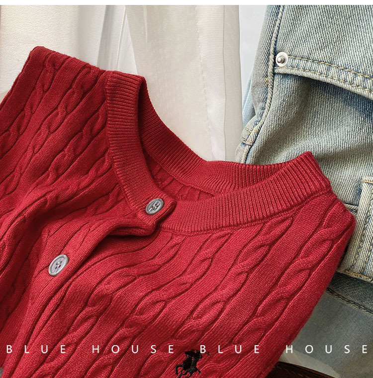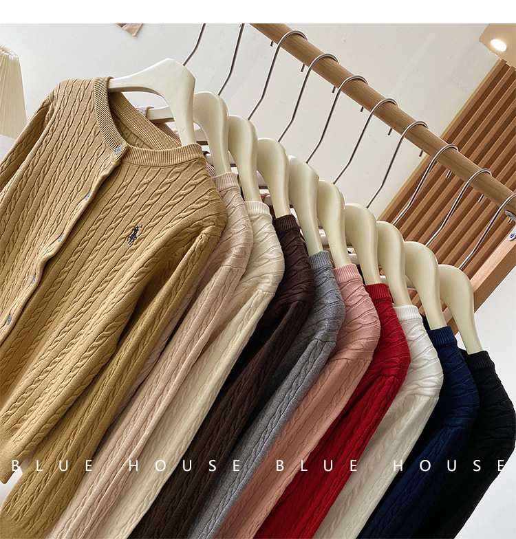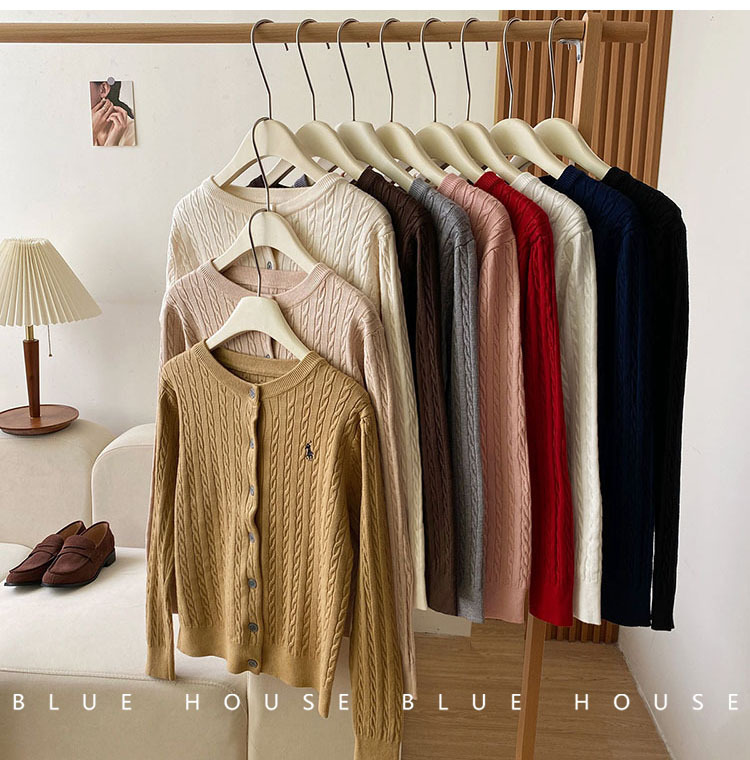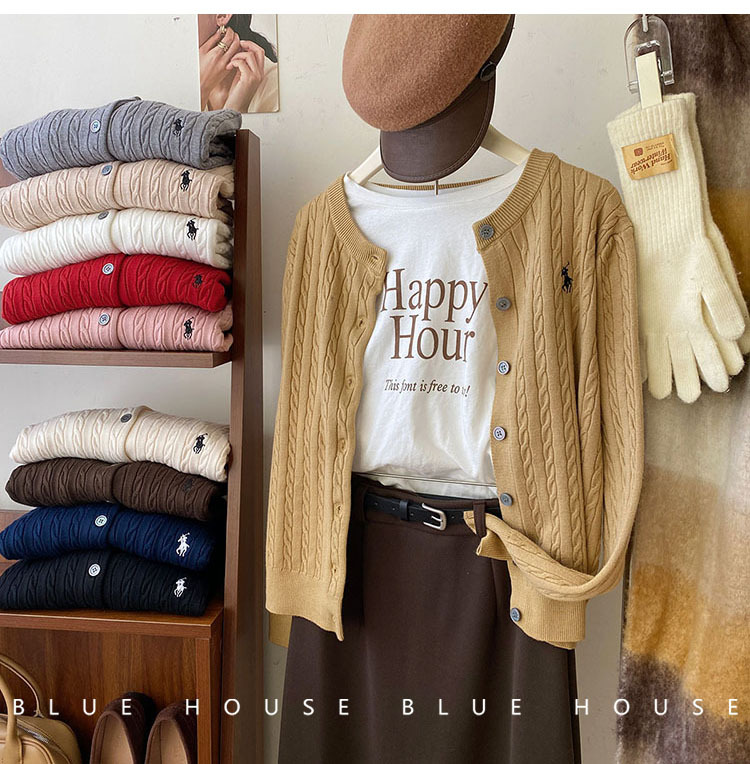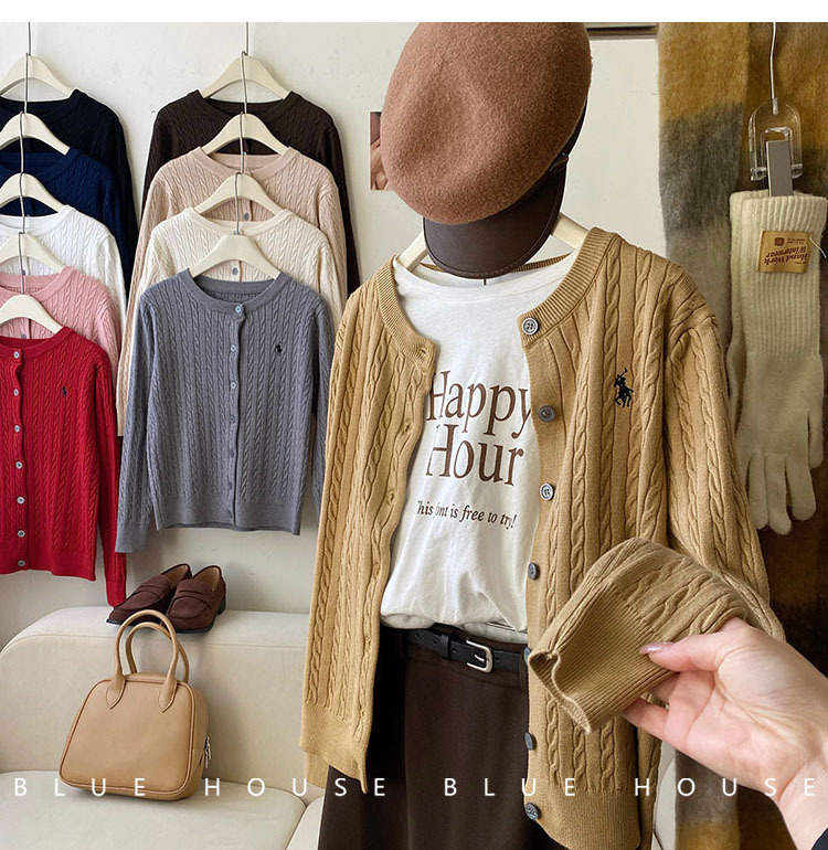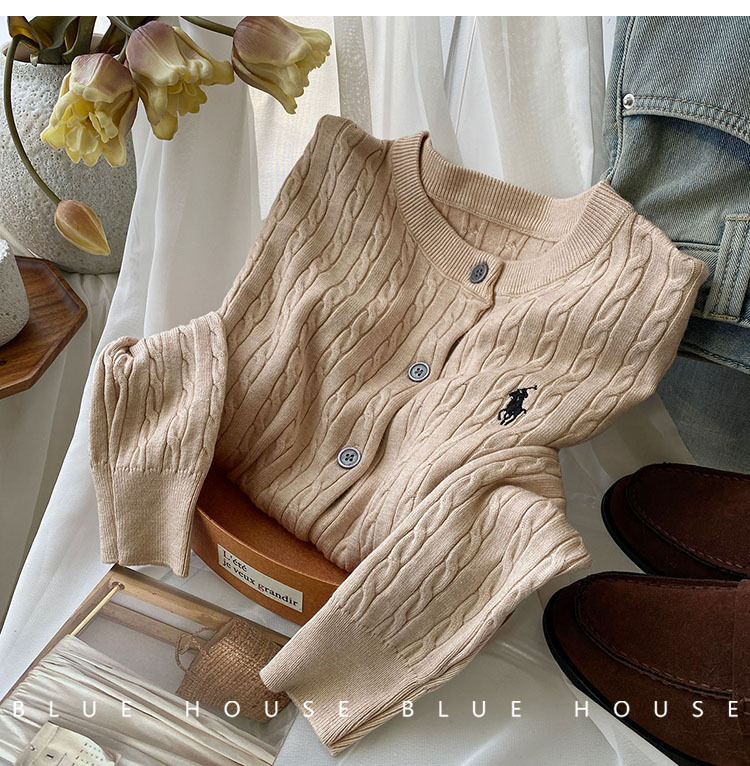 새로운 폭발 둥근 목 자수 니트 카디건 여성의 2024 년 이른 봄 새로운 복고풍 트위스트 슬림 스웨터스토어 가기