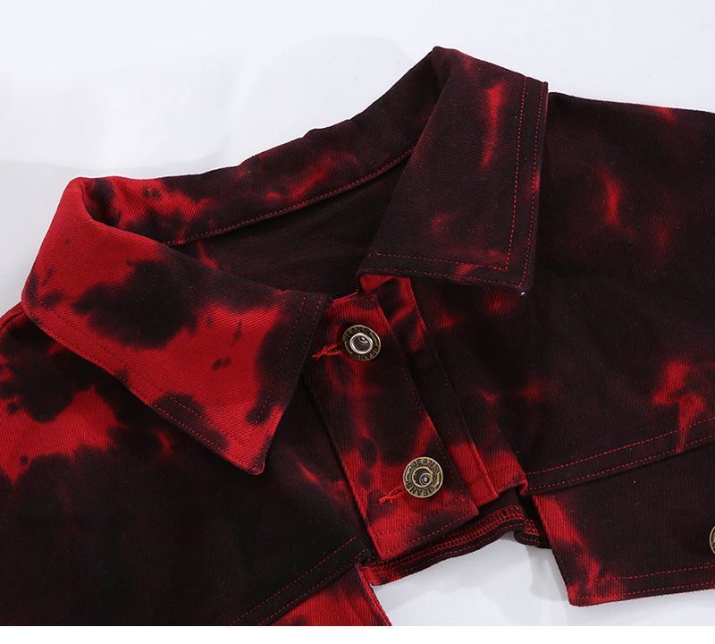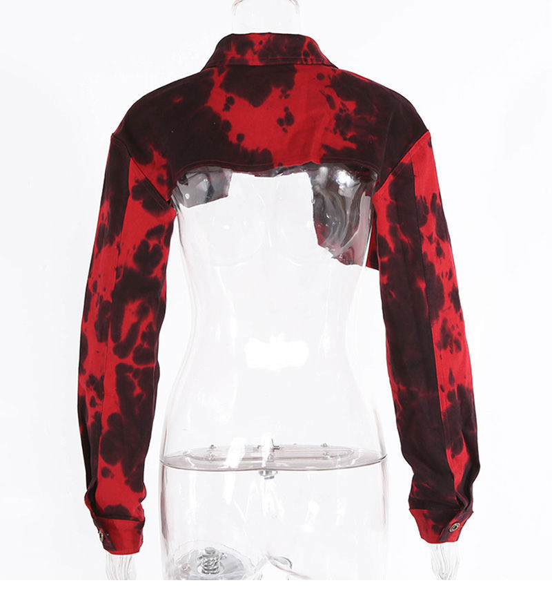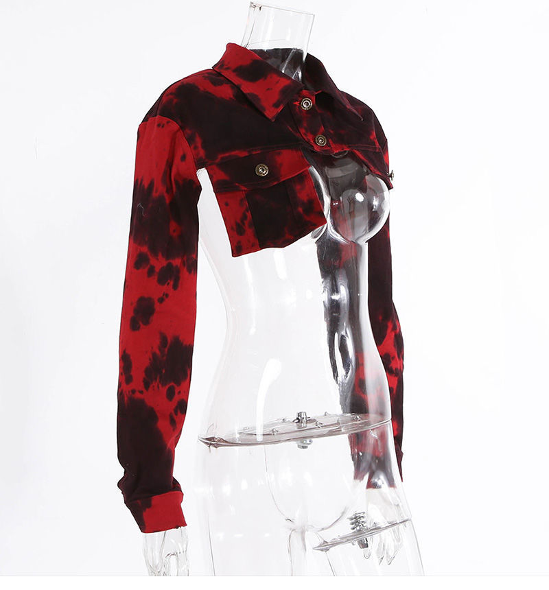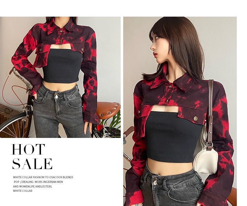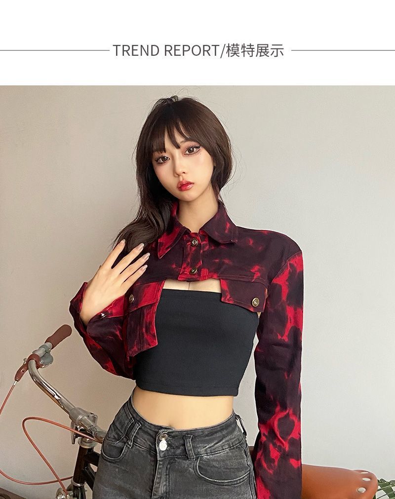 炸街春夏外套女潮个性扎染翻领不规则长袖超短工装上衣吊带两件套