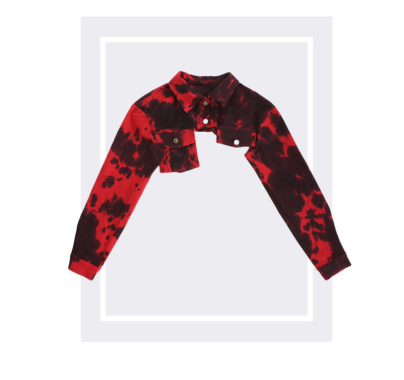 튀긴 거리 봄과 여름 코트 여성의 트렌디 한 독특한 타이 염색 옷깃 불규칙한 긴팔 울트라 짧은 툴링 재킷 투피스 세트스토어 가기