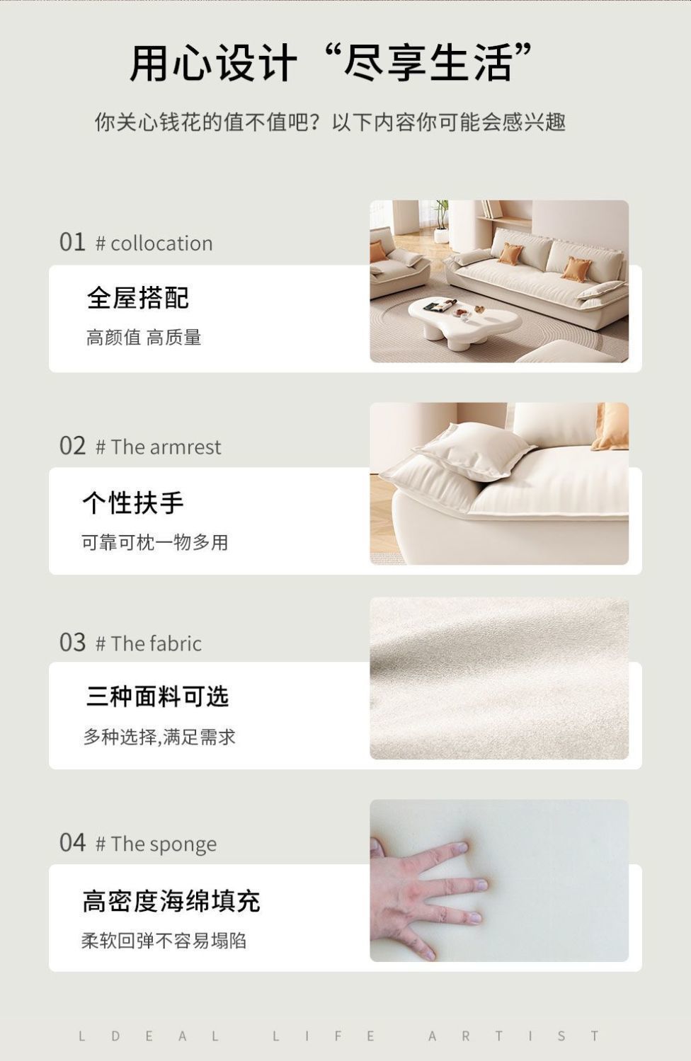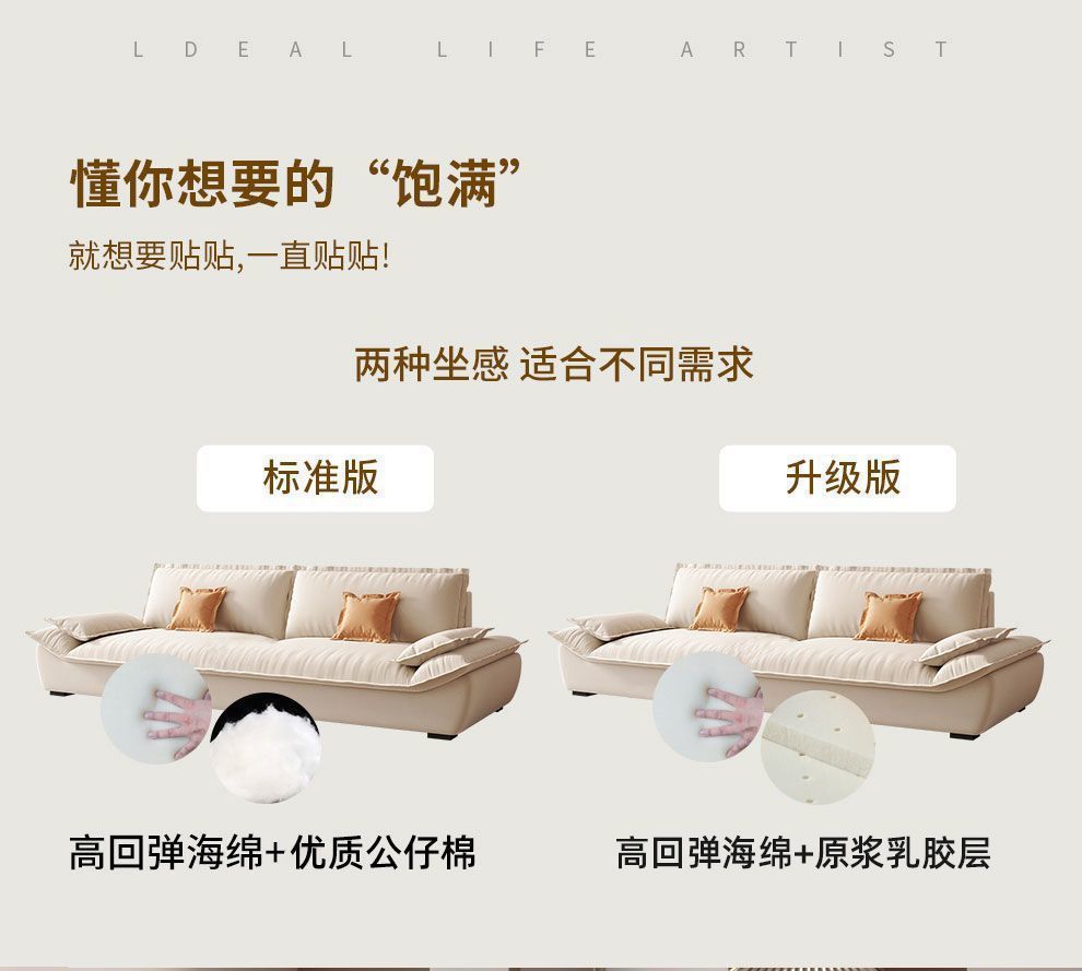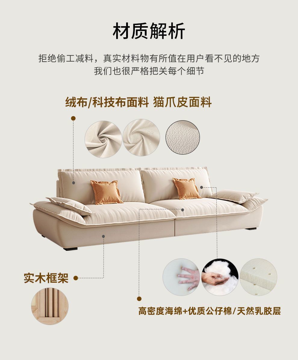 MZ 크림 스타일 작은 아파트 가구 거실 현대 고양이의 발톱 패브릭 항해 스트레이트 로우 슈퍼 소프트 작은 소파 임대 하우스스토어 가기