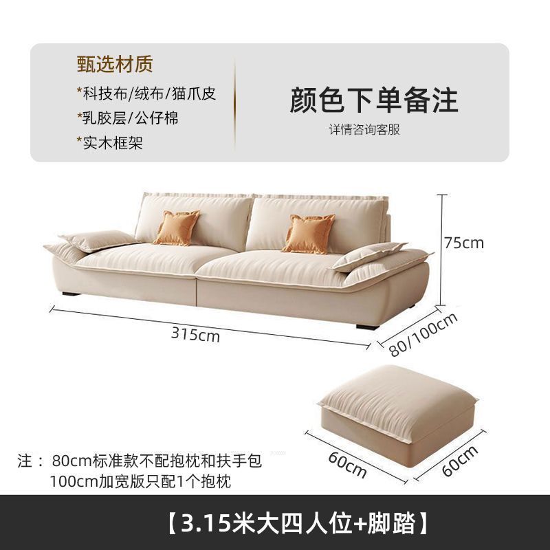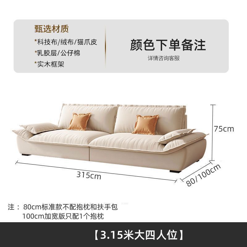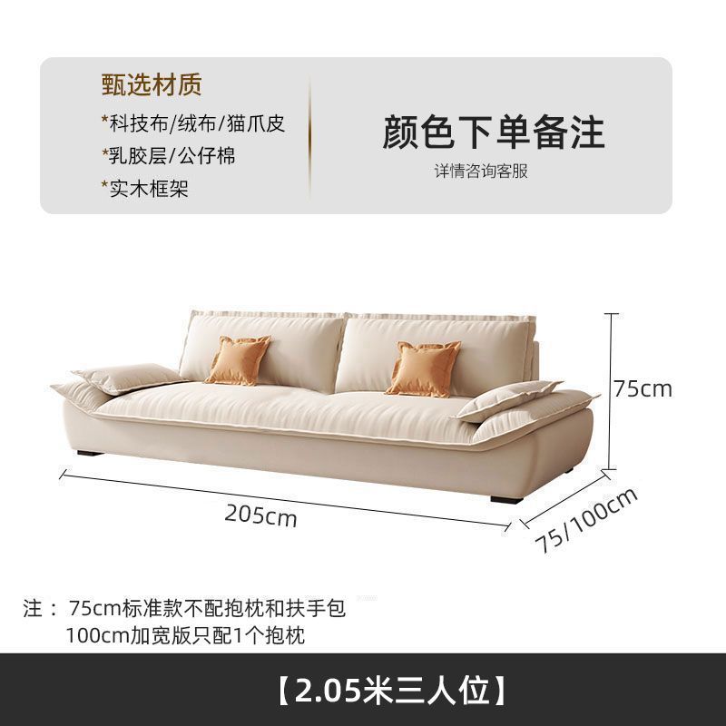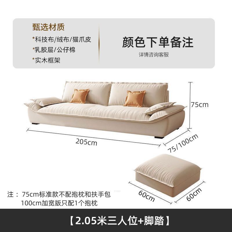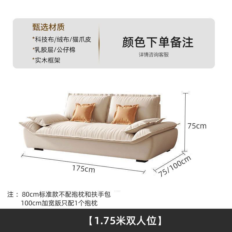 MZ 크림 스타일 작은 아파트 가구 거실 현대 고양이의 발톱 패브릭 항해 스트레이트 로우 슈퍼 소프트 작은 소파 임대 하우스