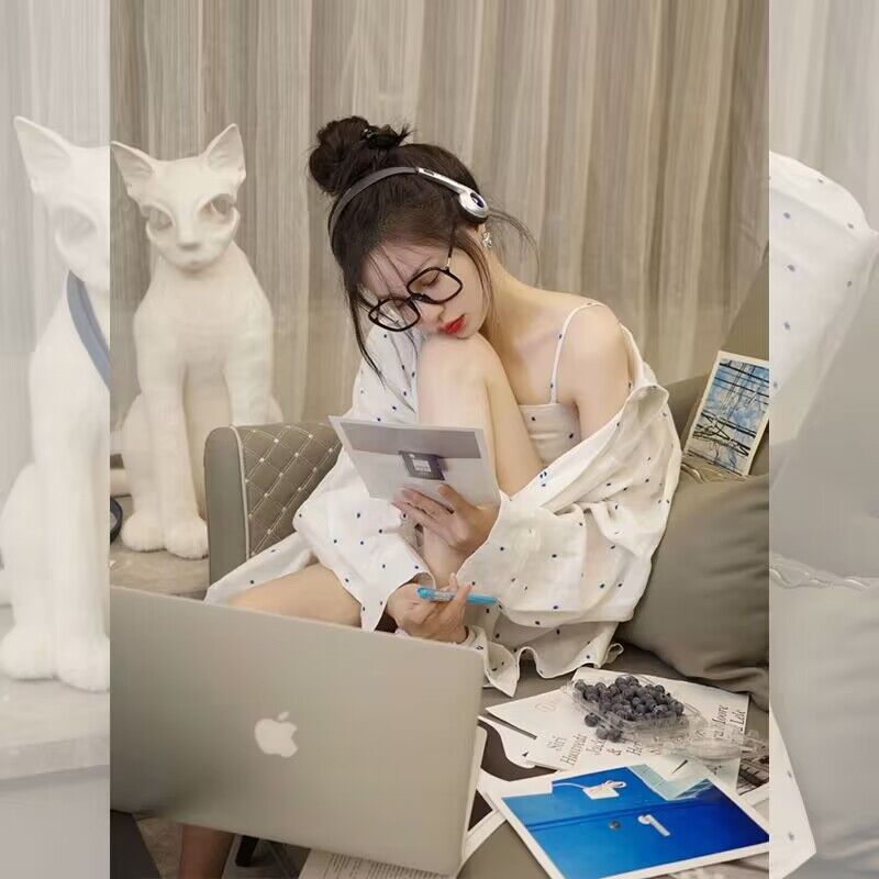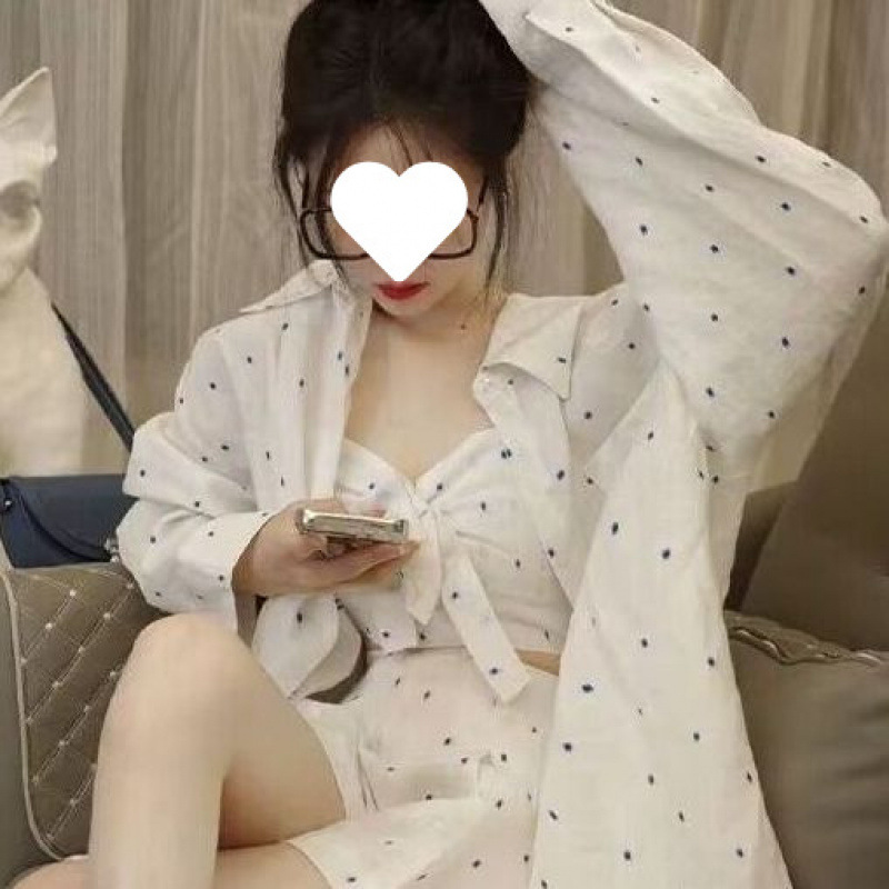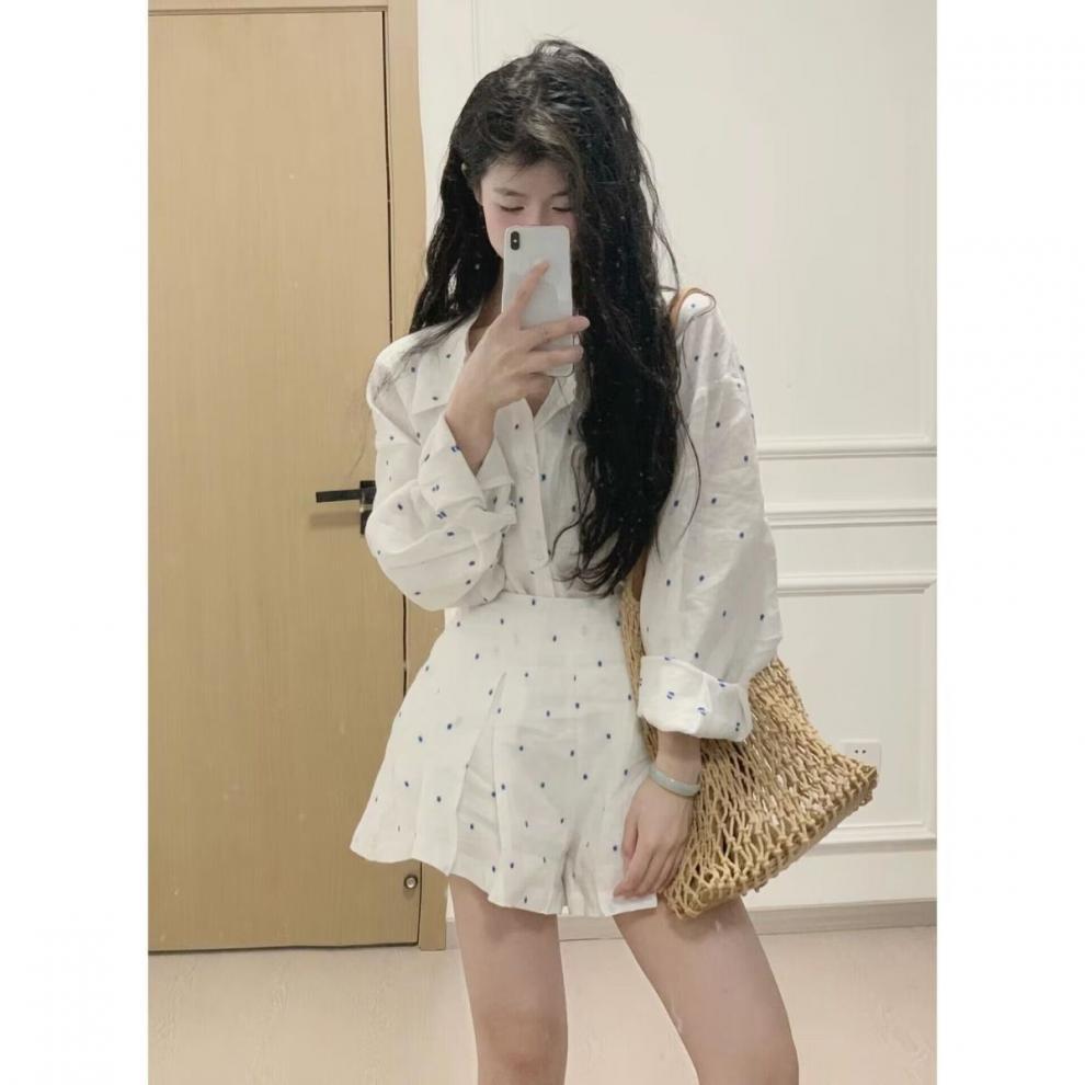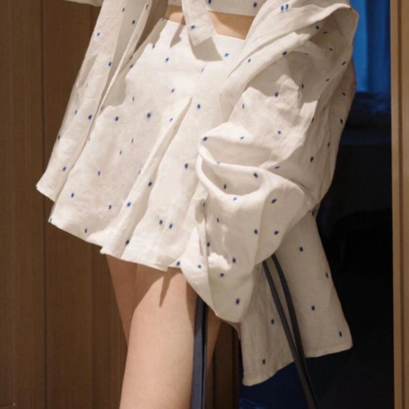 • 흰색 바탕에 파란색 도트 셔츠