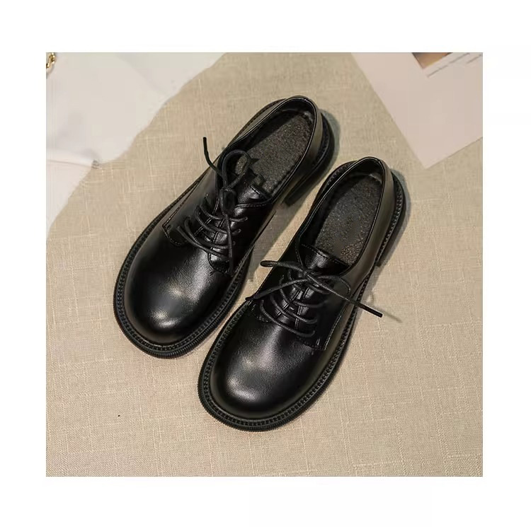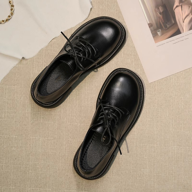 Qi Yan 작은 가죽 신발 여성 영국 스타일 플랫 로퍼 2025 새로운 봄과 가을 가죽 레이스 업 캐주얼 여성 싱글 신발스토어 가기