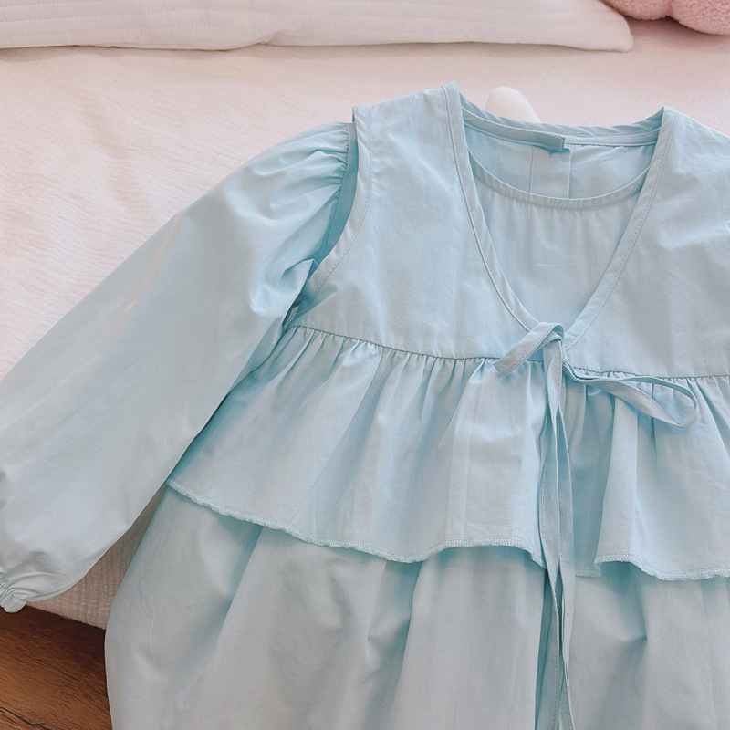 소녀의 셔츠 원피스 봄과 가을 새로운 어린이 서양식 공주 원피스 어린 소녀의 면화 원피스 아기 두 조각 유행 세트