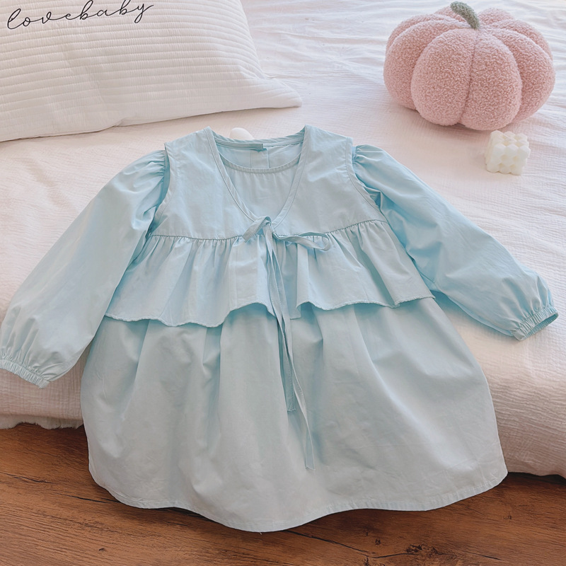 소녀의 셔츠 원피스 봄과 가을 새로운 어린이 서양식 공주 원피스 어린 소녀의 면화 원피스 아기 두 조각 유행 세트스토어 가기