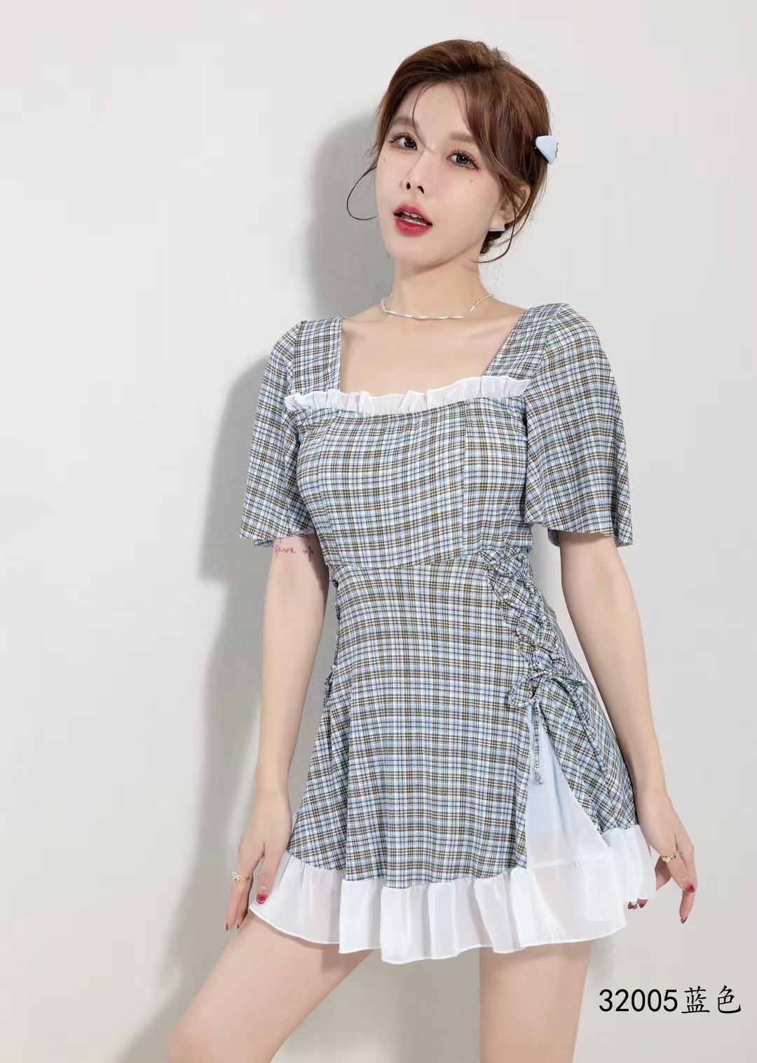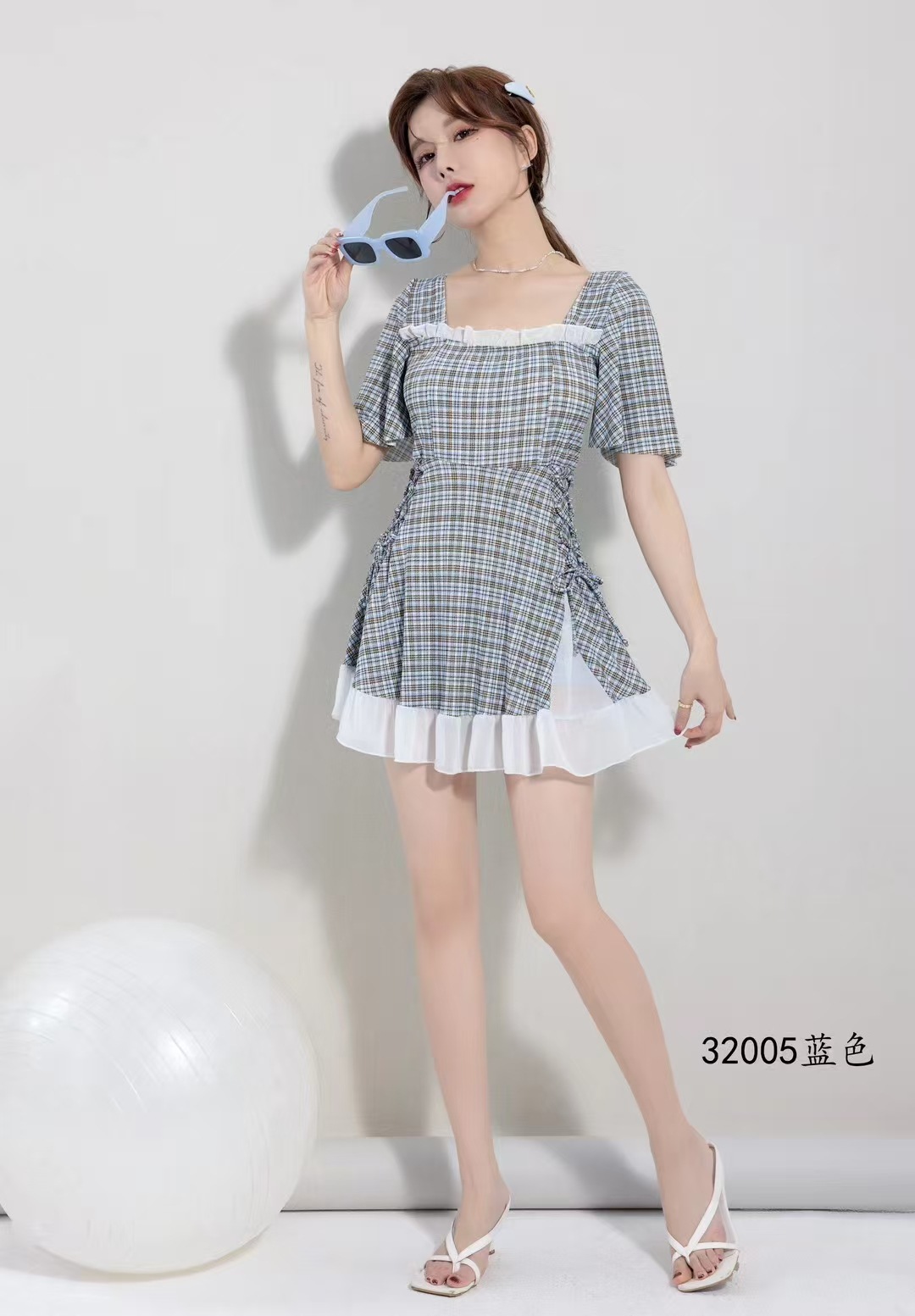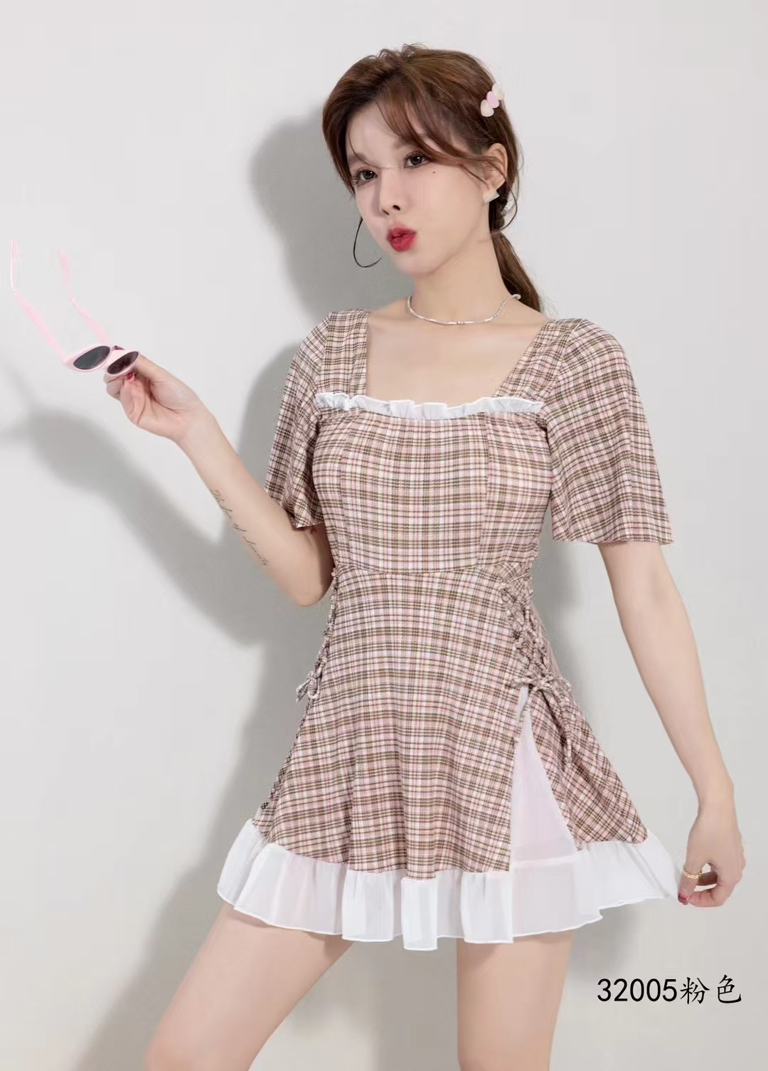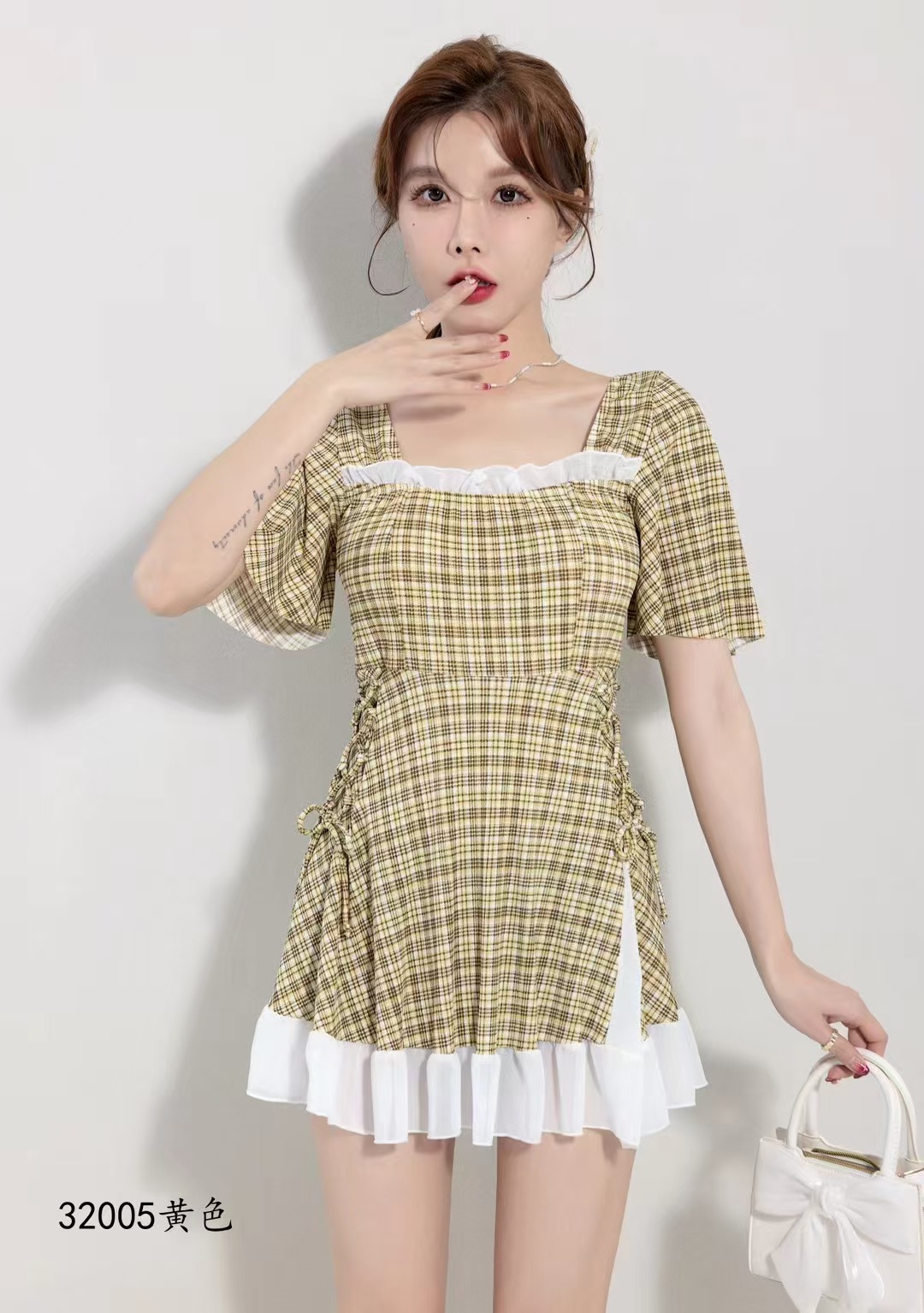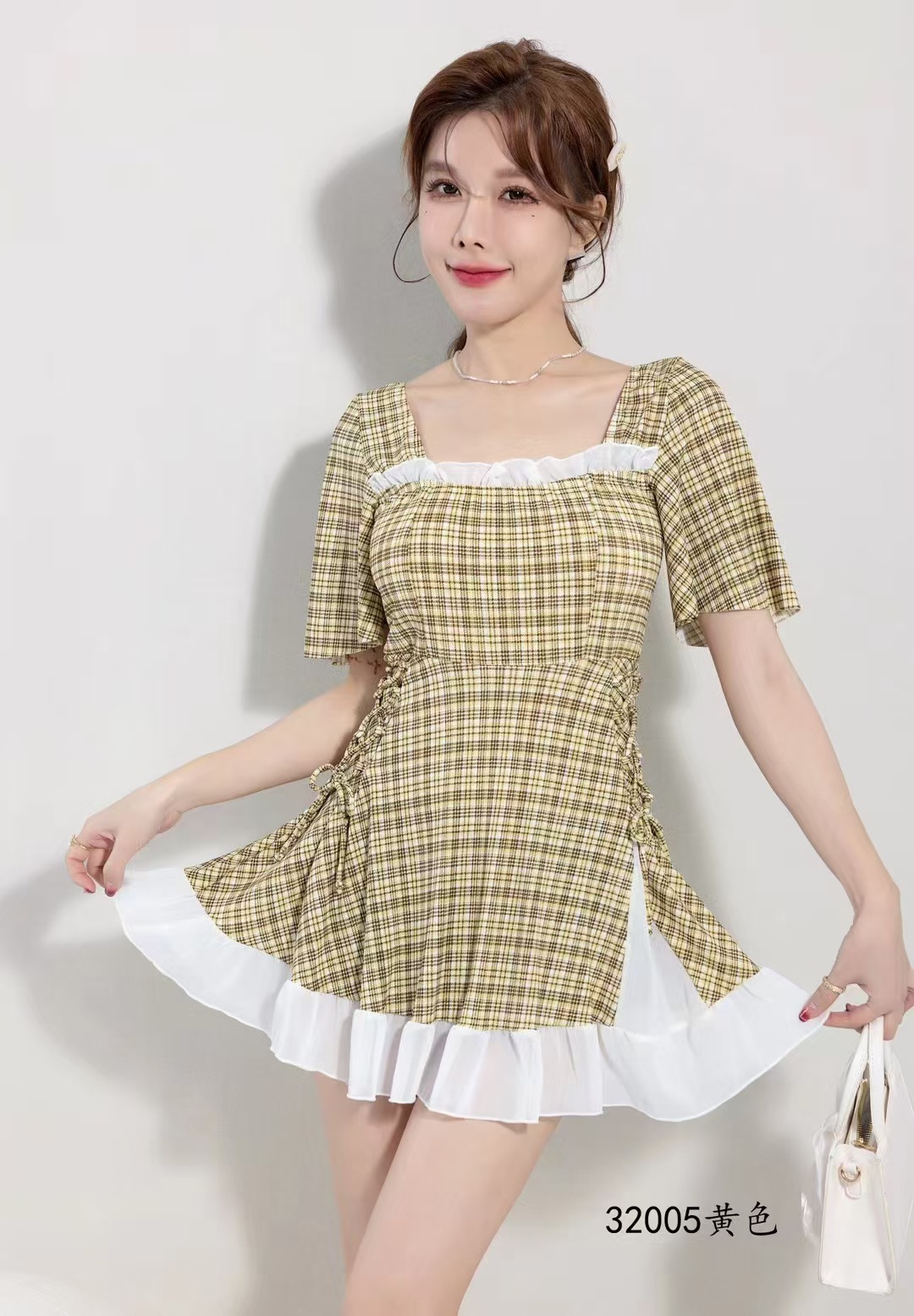 2025 새로운 격자 무늬 수영복 원피스 비치 수영복 수영복 32005