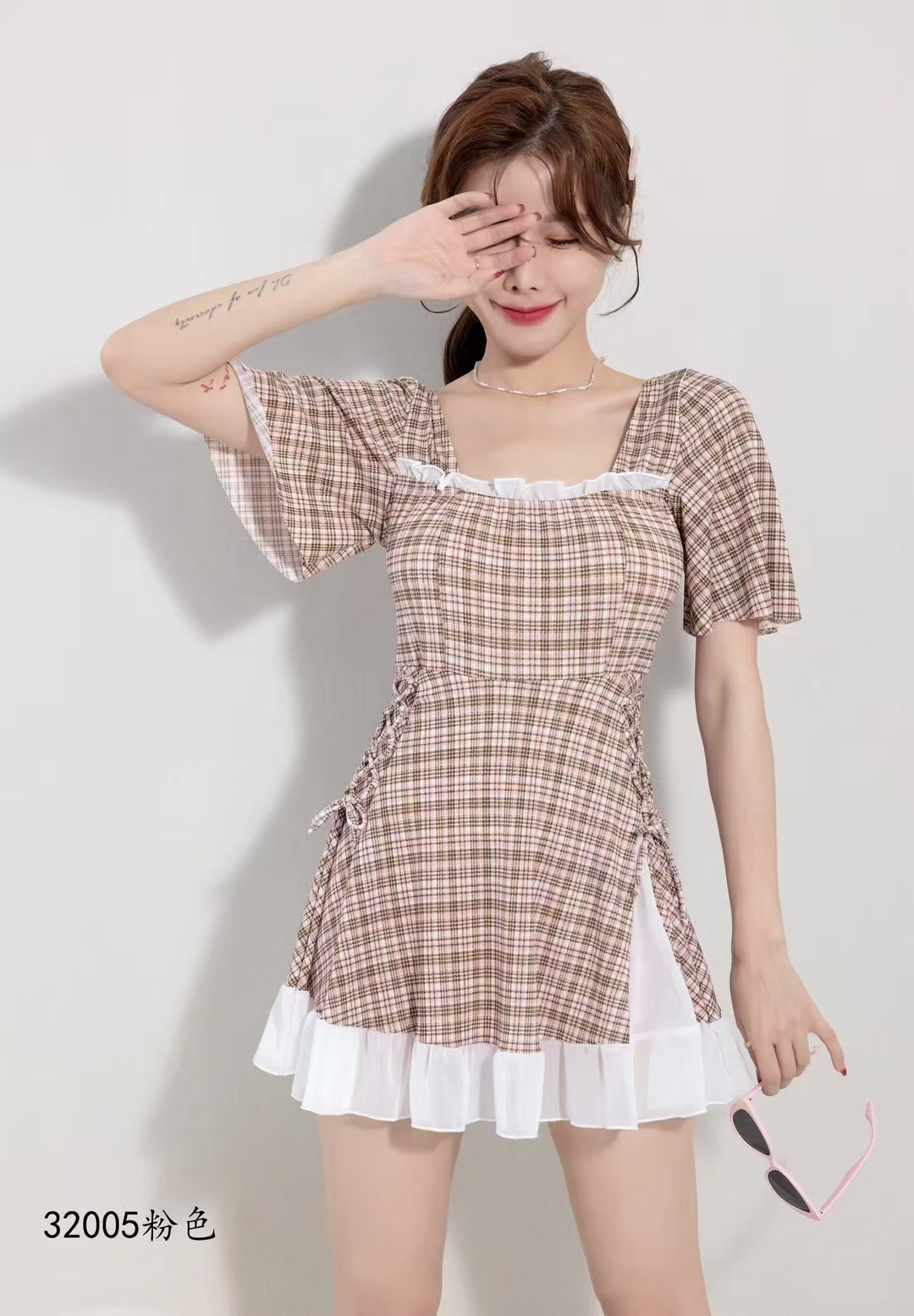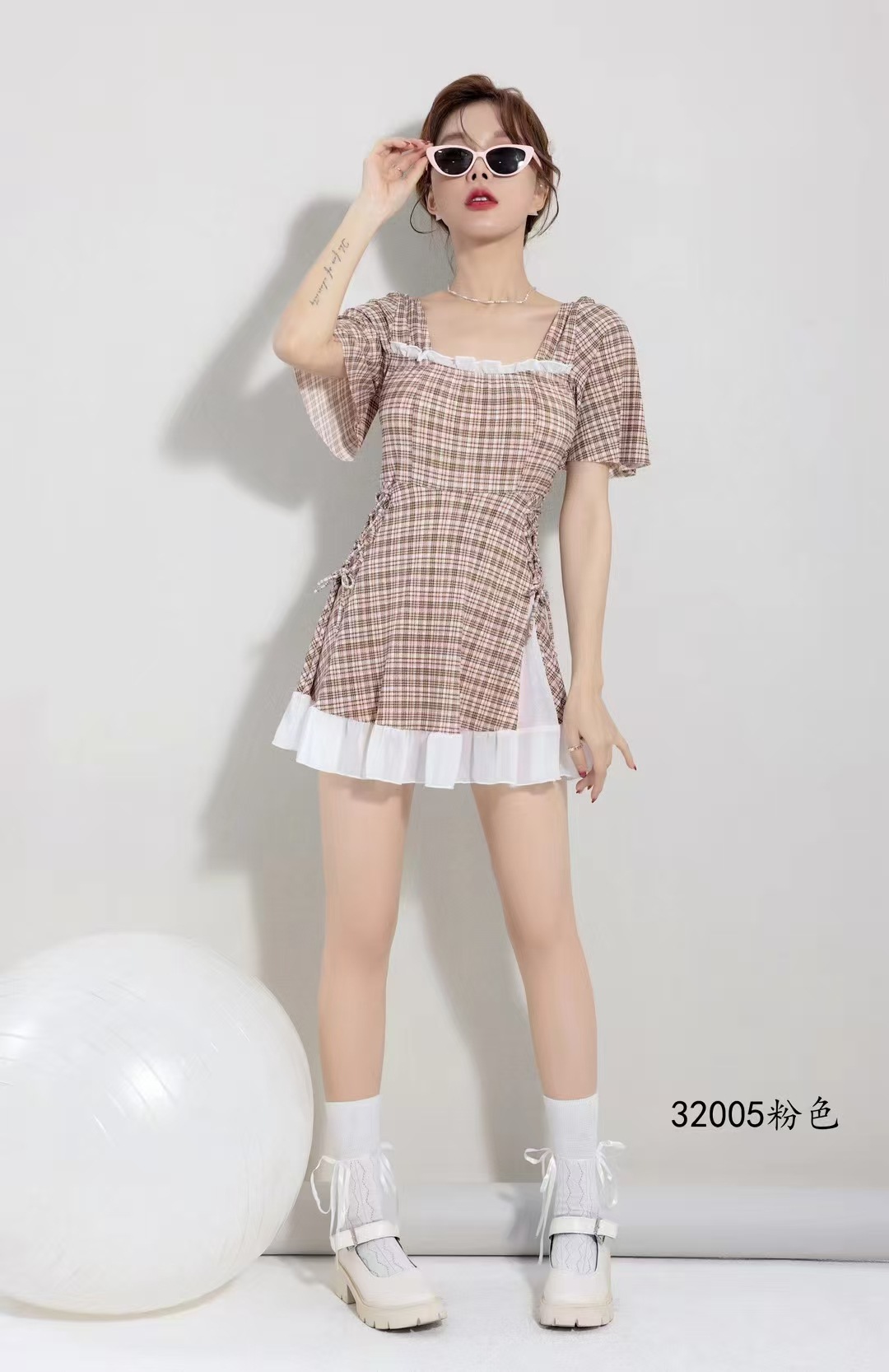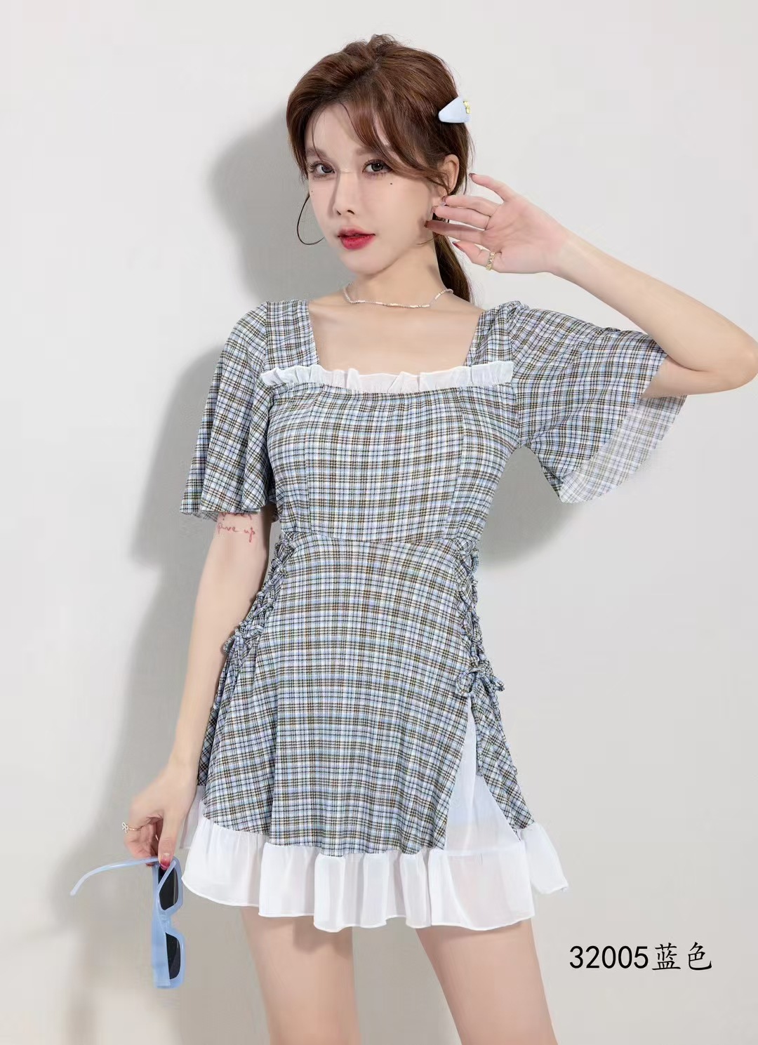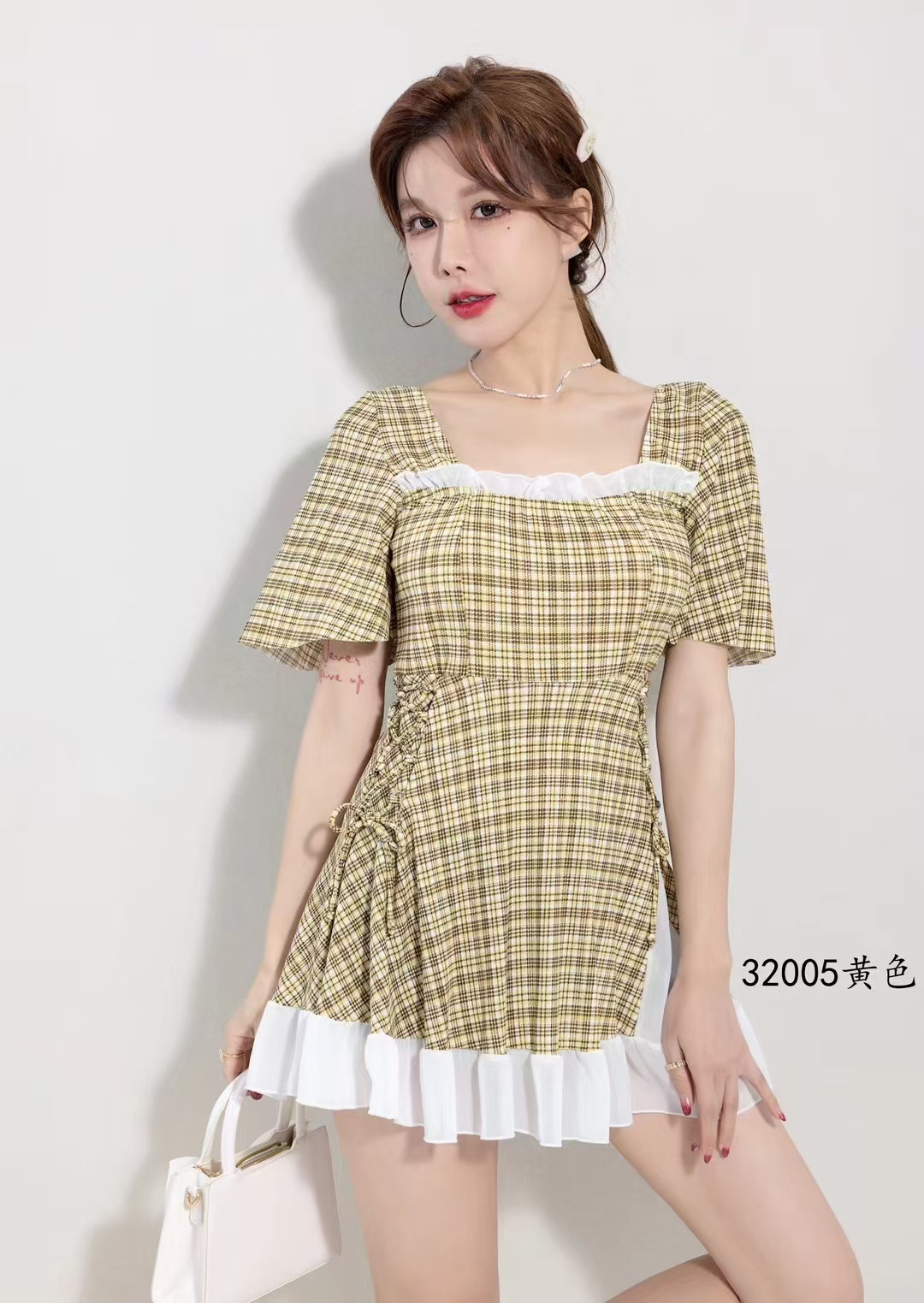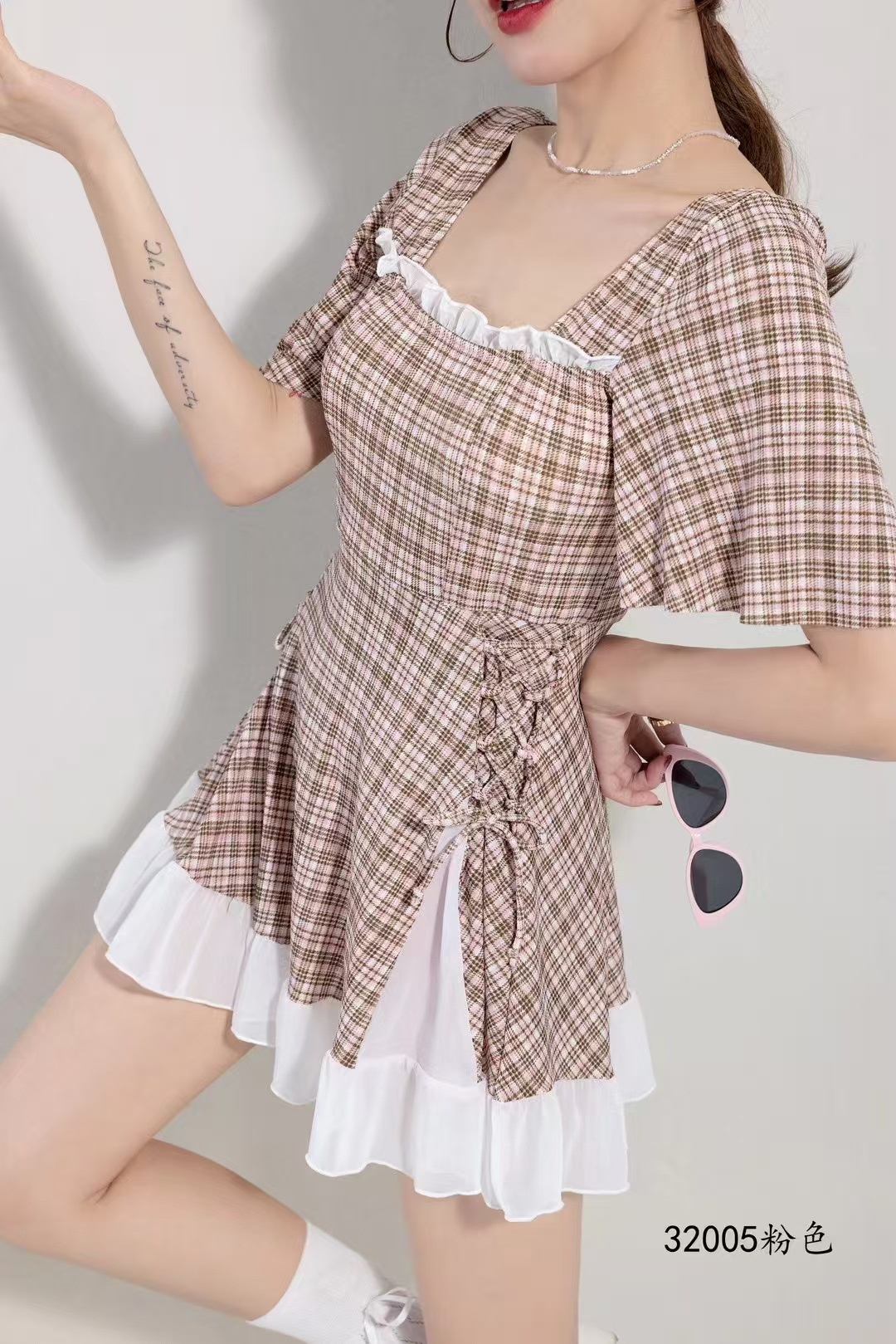 2025 새로운 격자 무늬 수영복 원피스 비치 수영복 수영복 32005