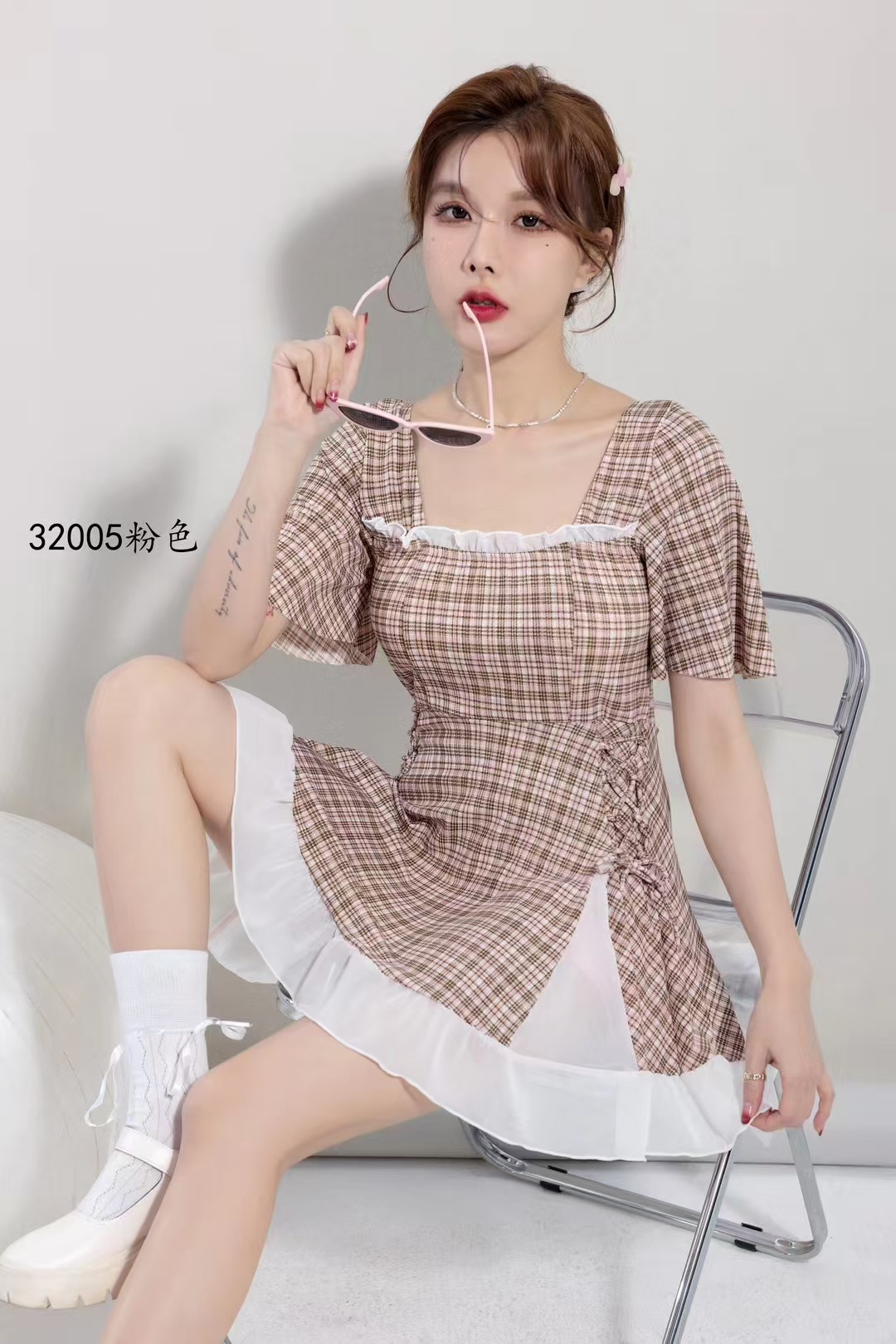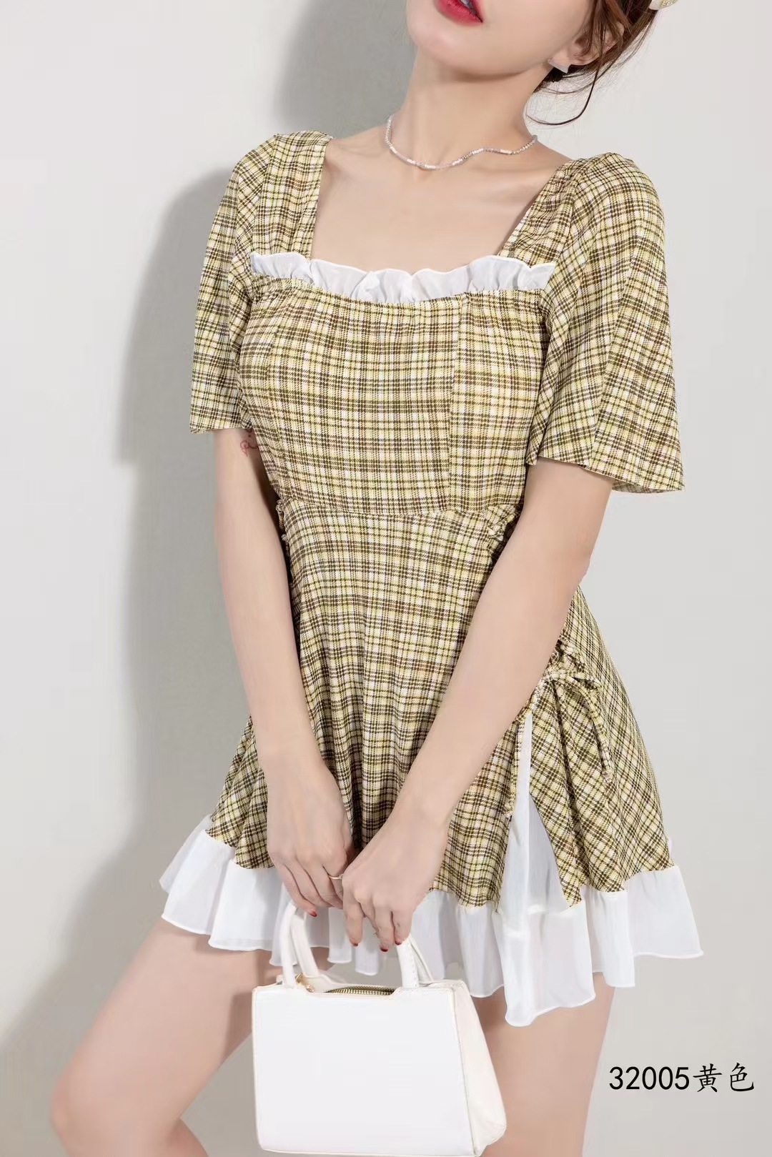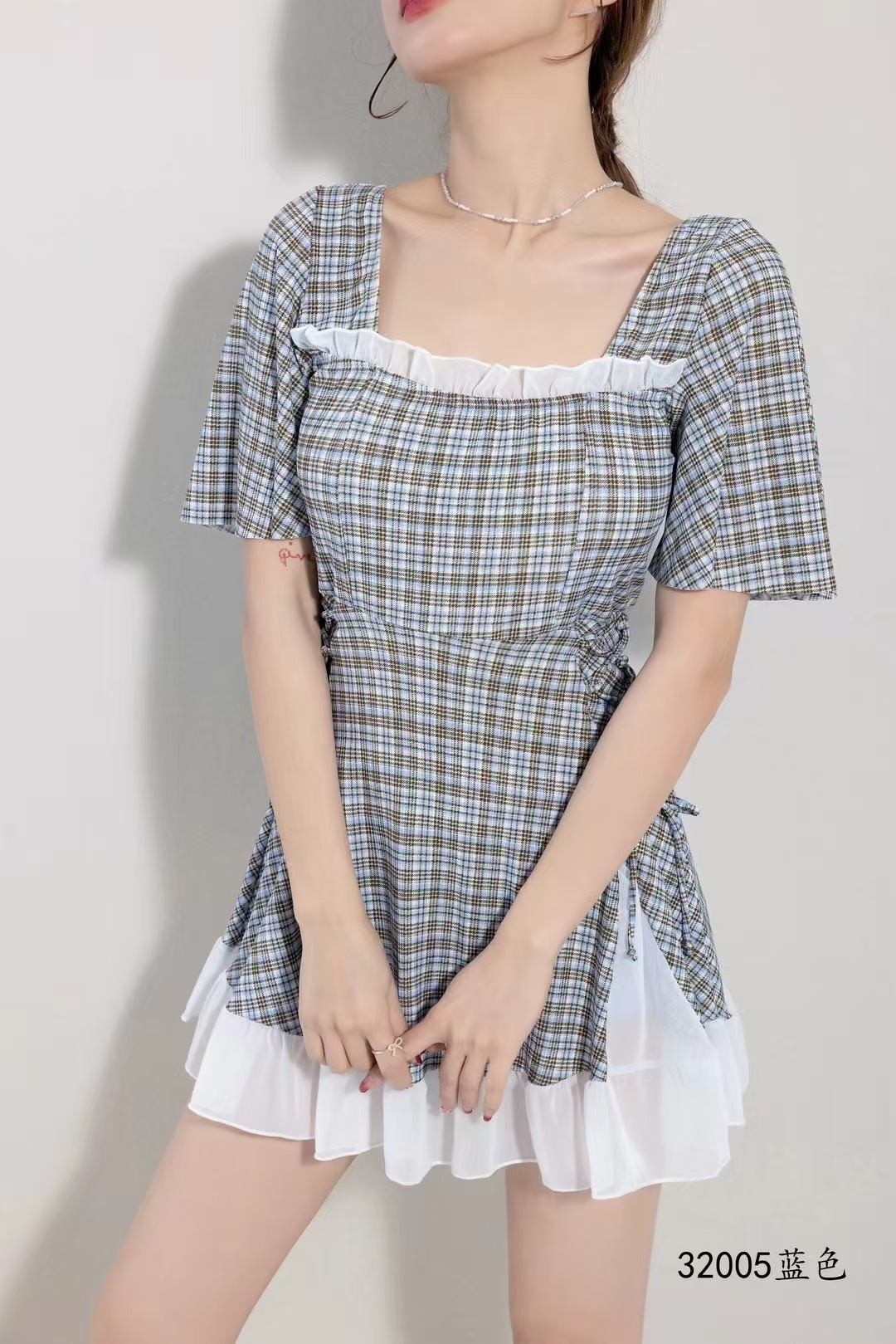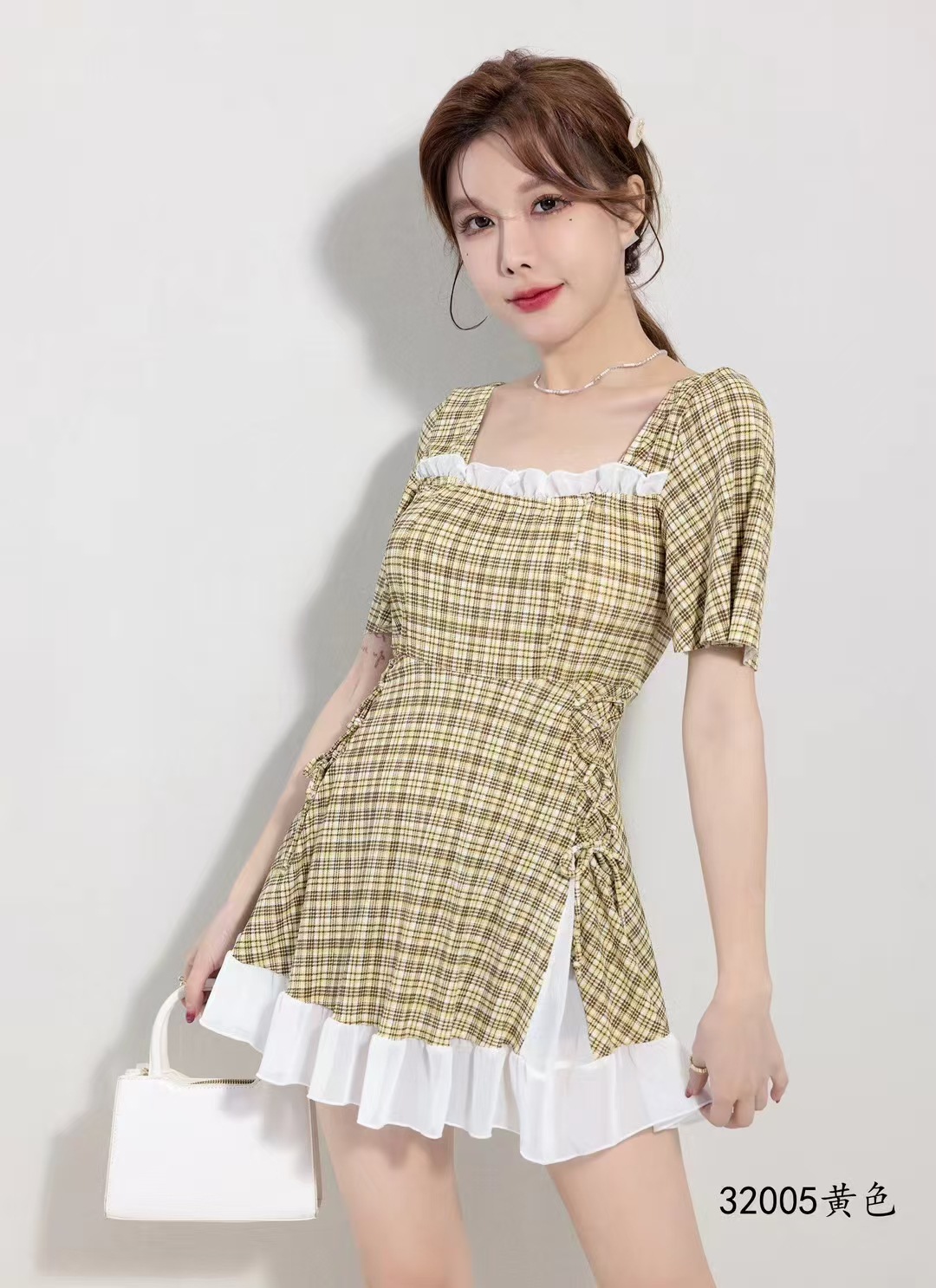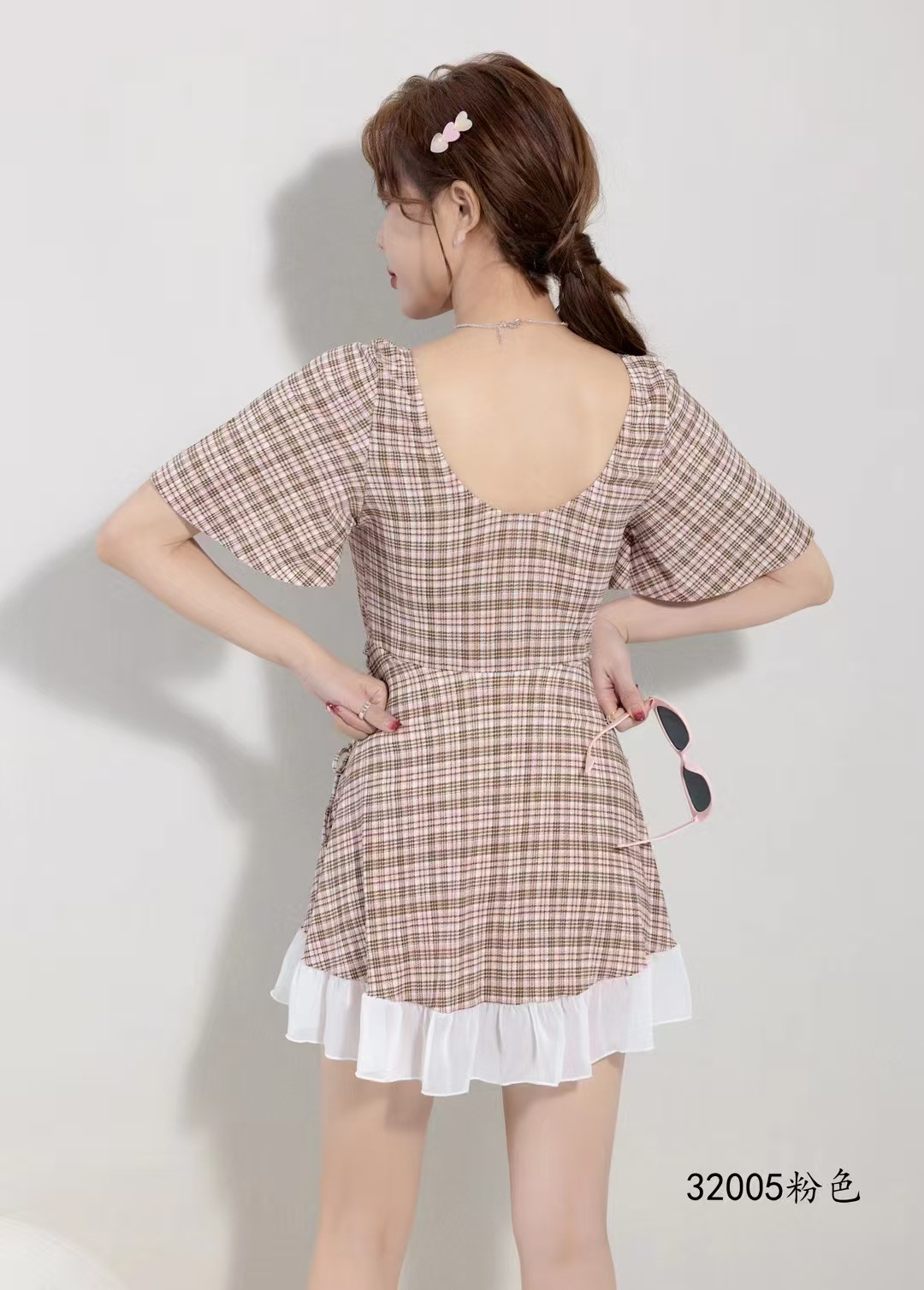 2025 새로운 격자 무늬 수영복 원피스 비치 수영복 수영복 32005