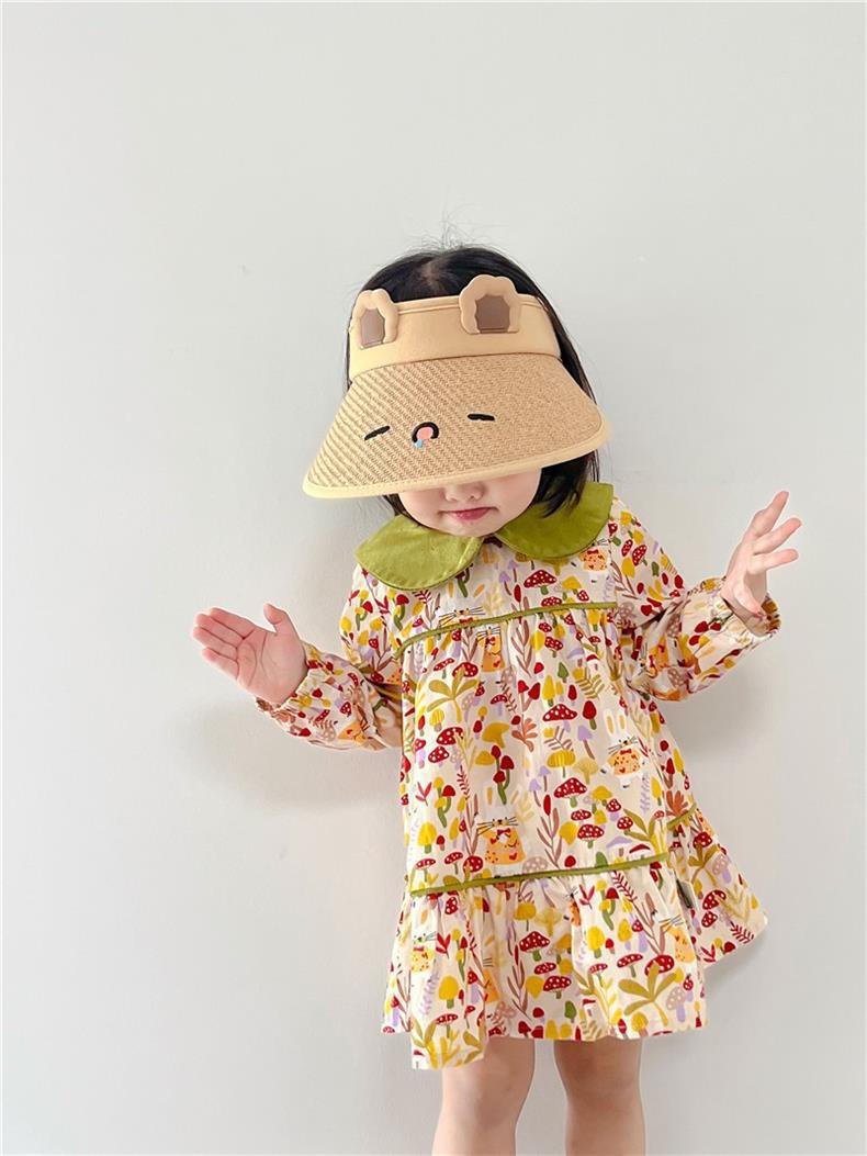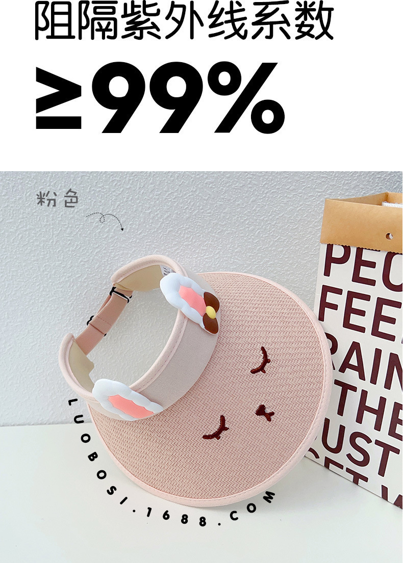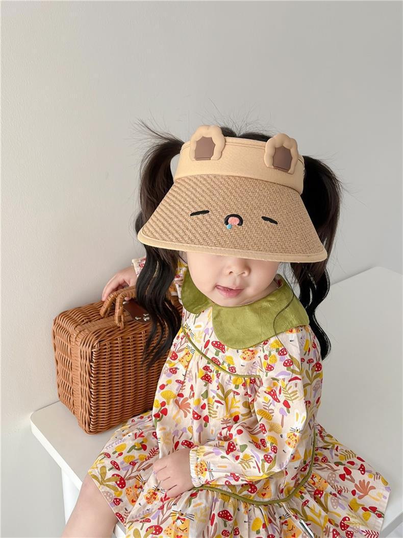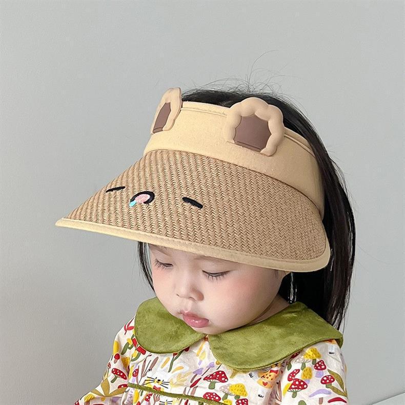 새로운 어린이 빈 탑 선 스크린 모자 여름 안티-UV 귀여운 밀짚 태양 모자 빅 브림 태양 모자