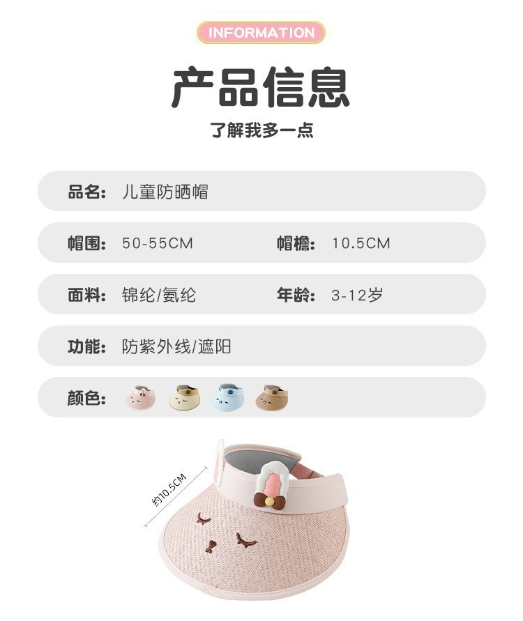 새로운 어린이 빈 탑 선 스크린 모자 여름 안티-UV 귀여운 밀짚 태양 모자 빅 브림 태양 모자스토어 가기