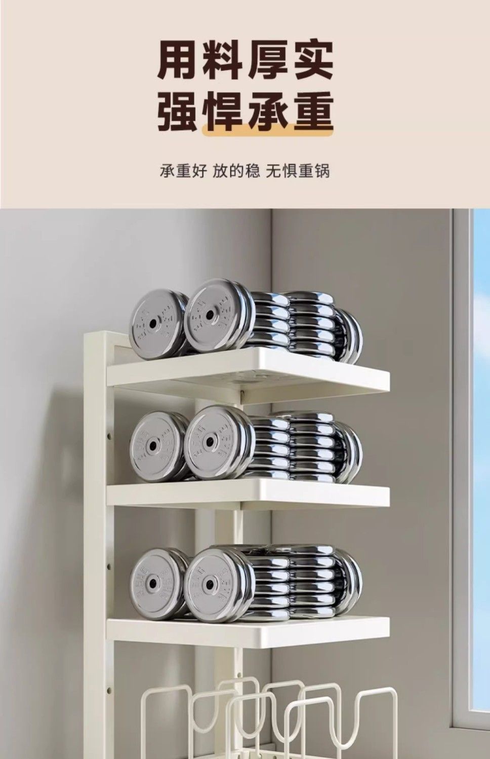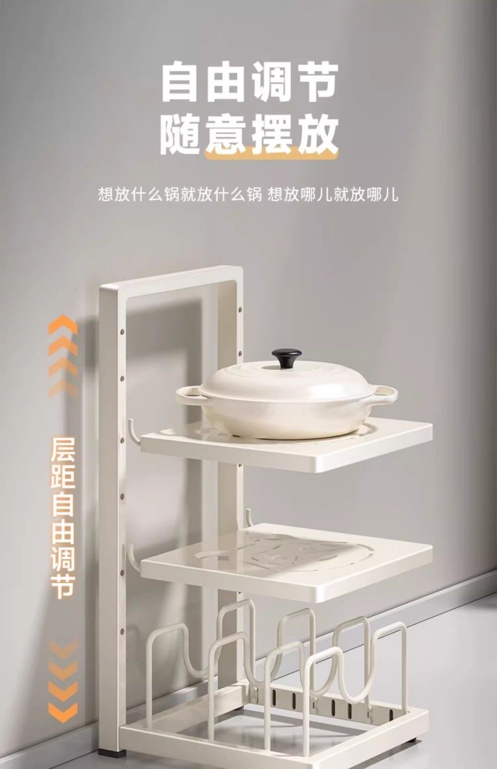 • (냄비걸이+냄비뚜껑걸이) 3단 - 흰색 - 층간격 조절 가능