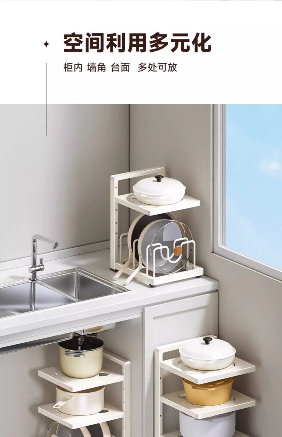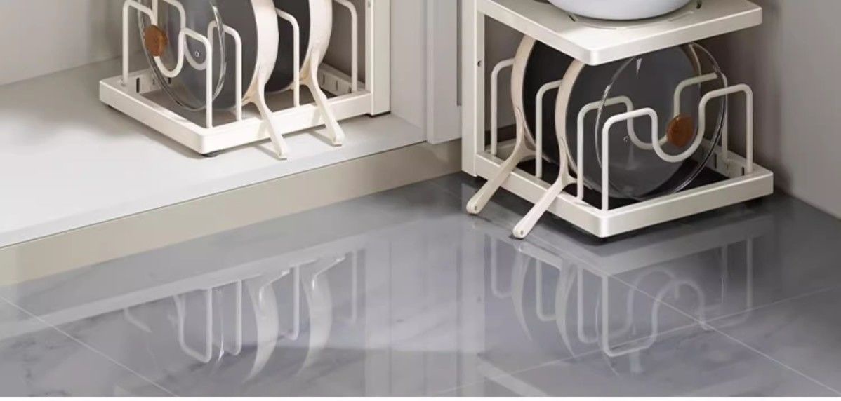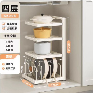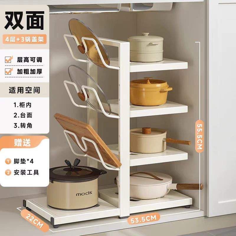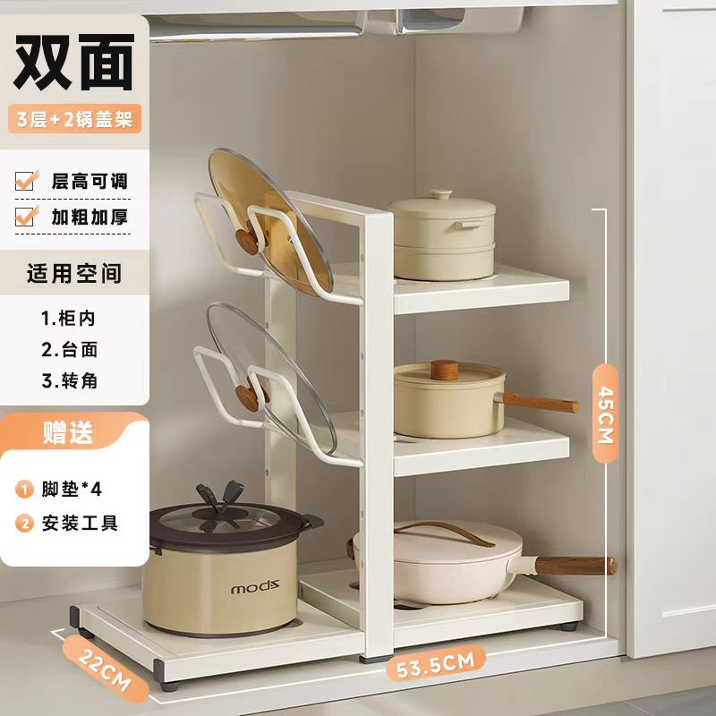 다층 주방 냄비 저장 랙 주방 카운터 탑 다기능 저장 랙 낮은 싱크를위한 수직 냄비 뚜껑 저장 랙