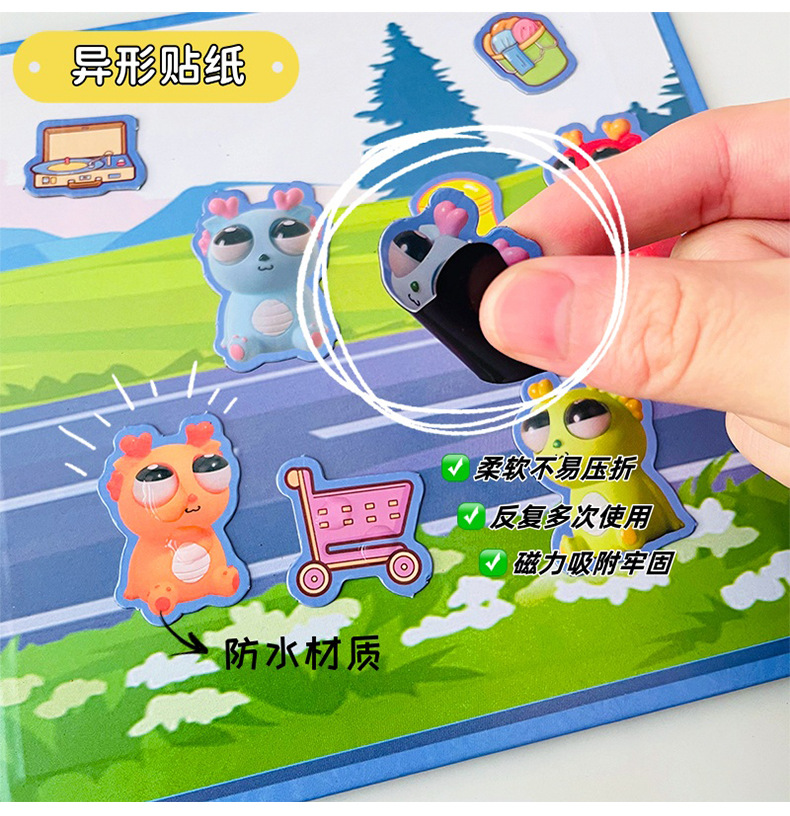 눈을 뗄 수없는 드래곤 마그네틱 조용한 책 대형 소녀 DIY 원피스 업 새로운 장면 어린이 수제 교육 자기 장난감스토어 가기