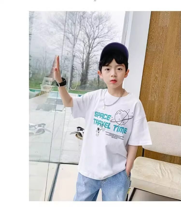 아동복 순면 반팔 티셔츠 2025 새로운 여름 잘 생긴 중대형 어린이 프린트 클래스 유니폼 인터넷 연예인 유행상의스토어 가기