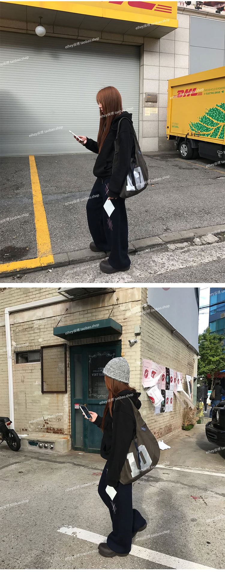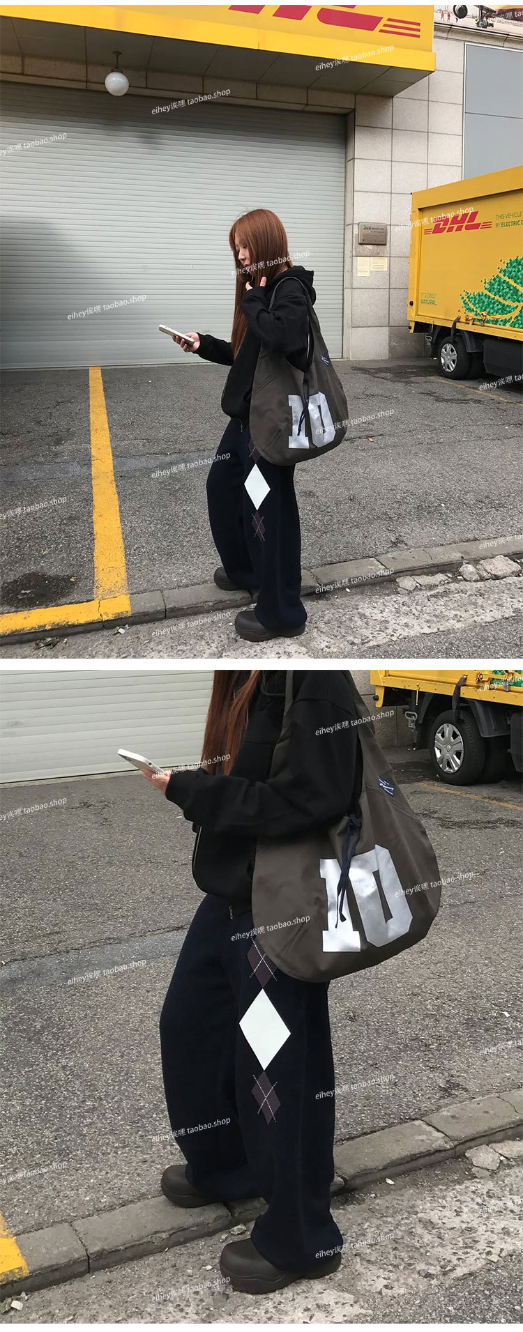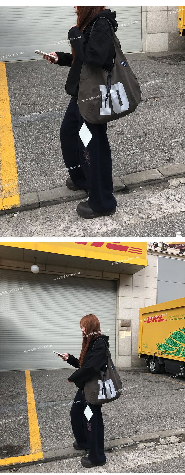 Eihey hey hey 10 주년 기념 카키 어깨 토트 백 디지털 인쇄 언더암 가방 휴대용 캔버스 가방 여성용 가방스토어 가기