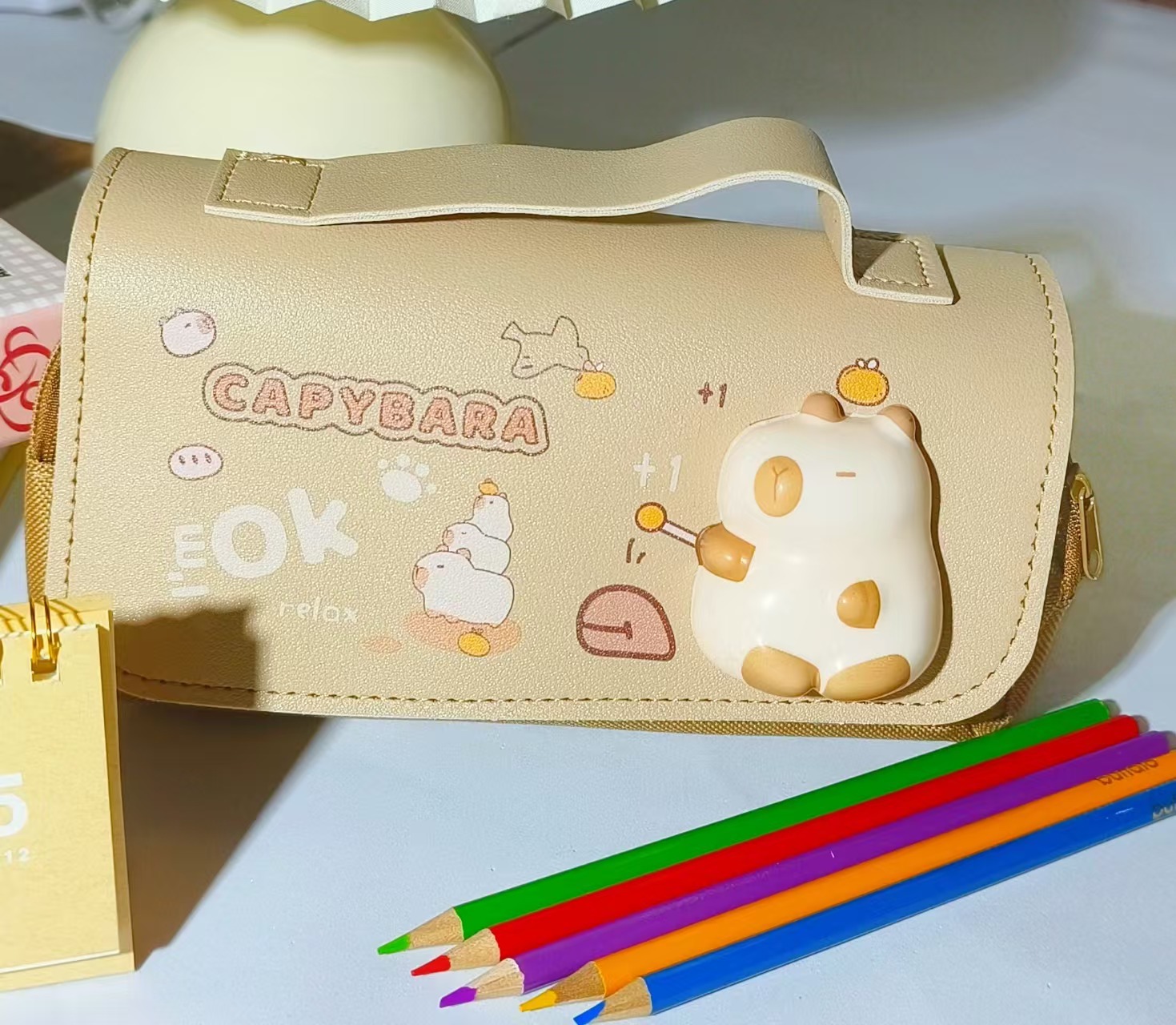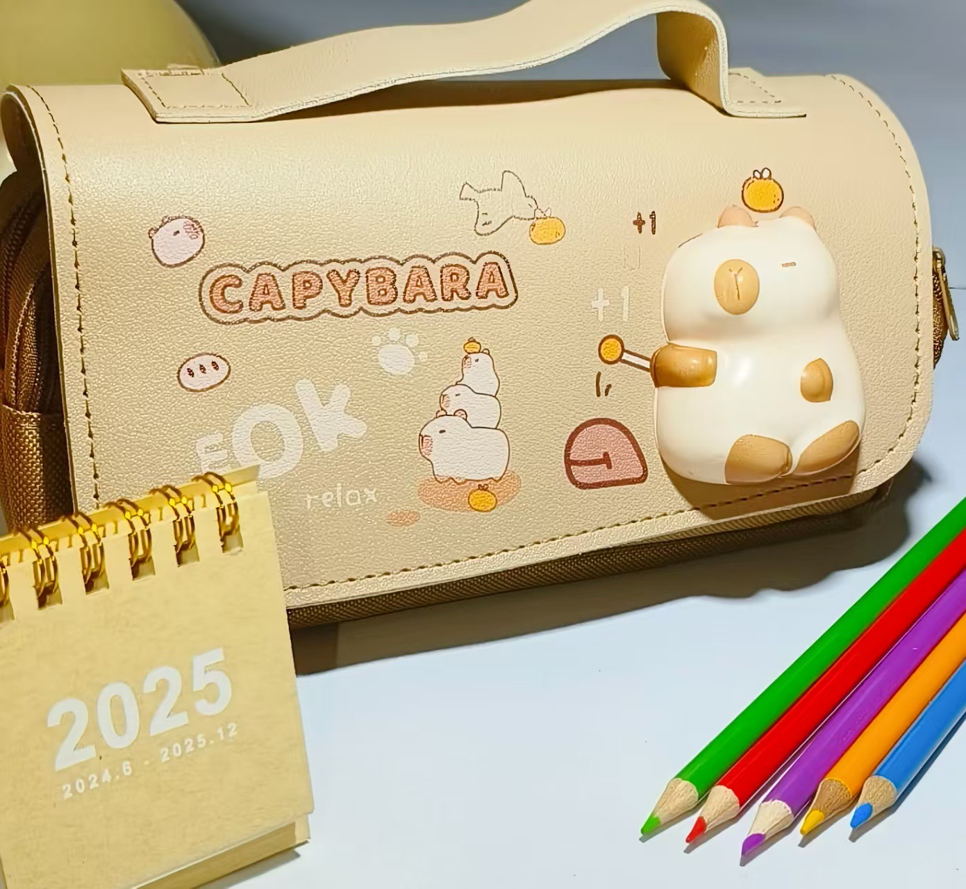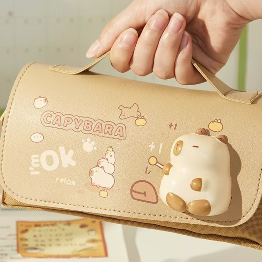 2025 새로운 만화 연필 케이스, 우유색의 압축 해소용 핀치 펜슬 케이스, 소녀와 소년을 위한 학생용 문구 상자