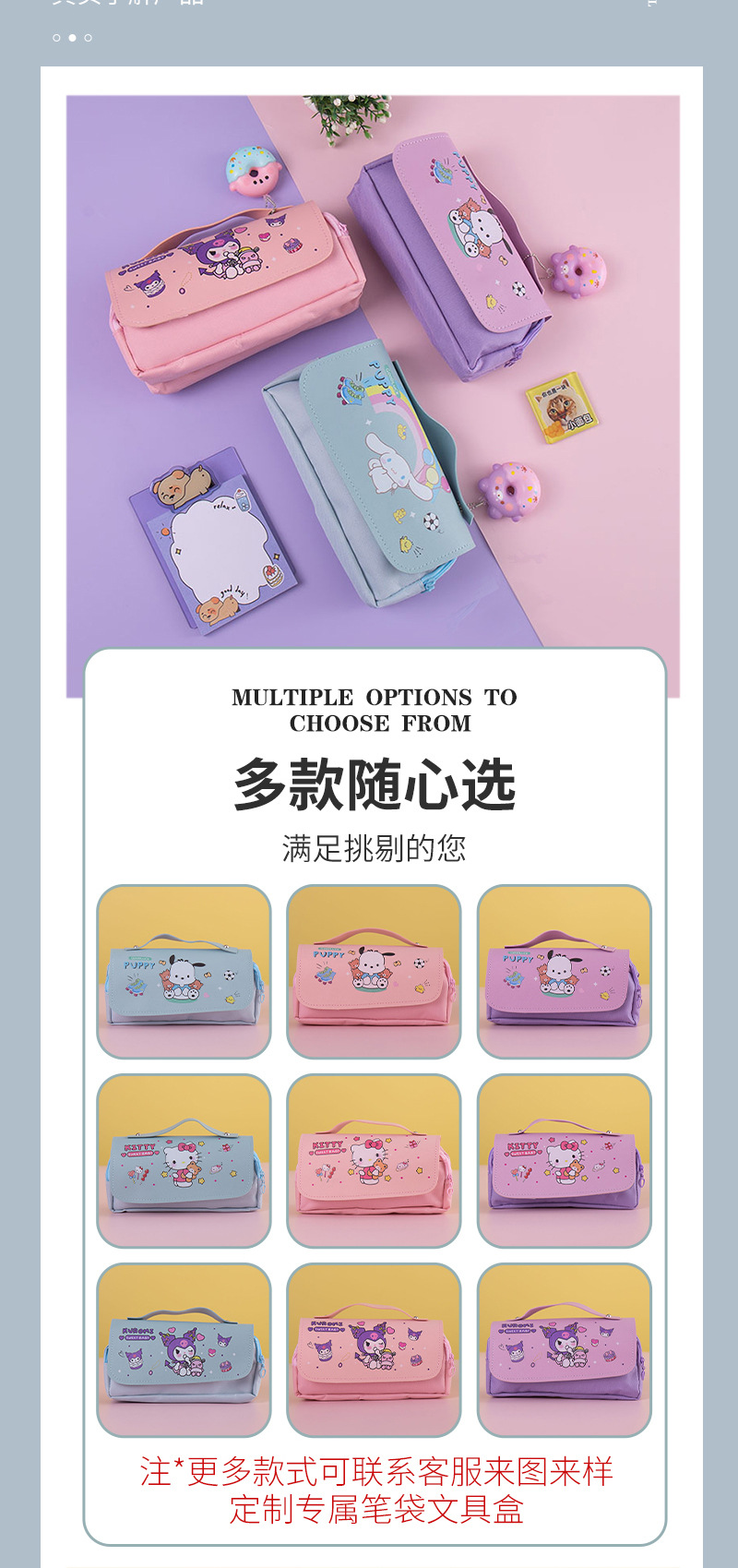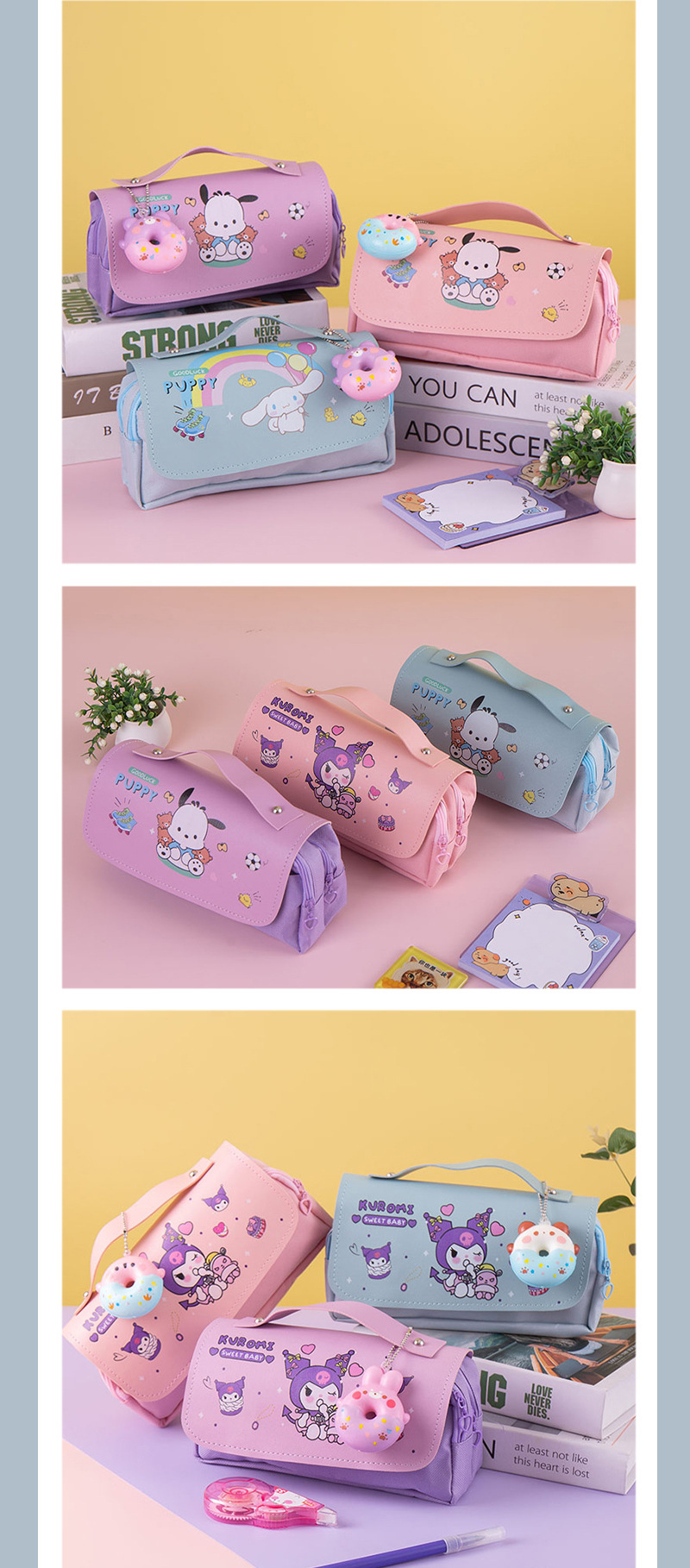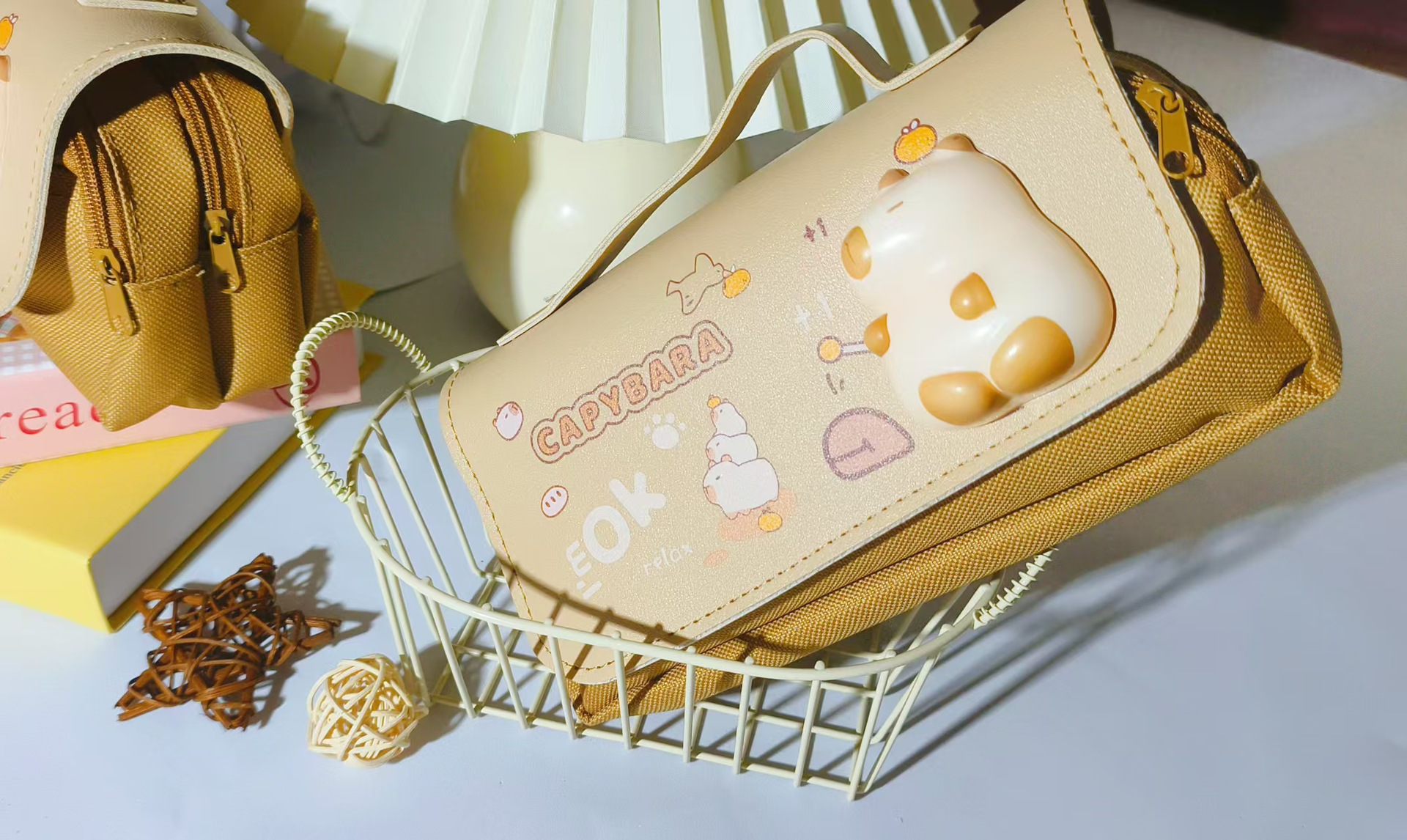 2025 새로운 만화 연필 케이스, 우유색의 압축 해소용 핀치 펜슬 케이스, 소녀와 소년을 위한 학생용 문구 상자