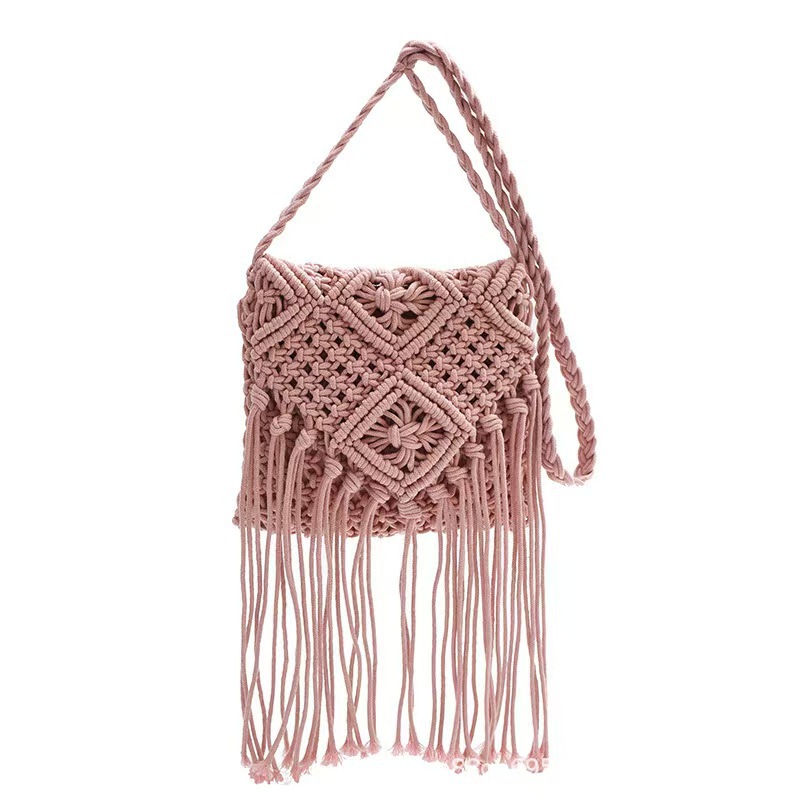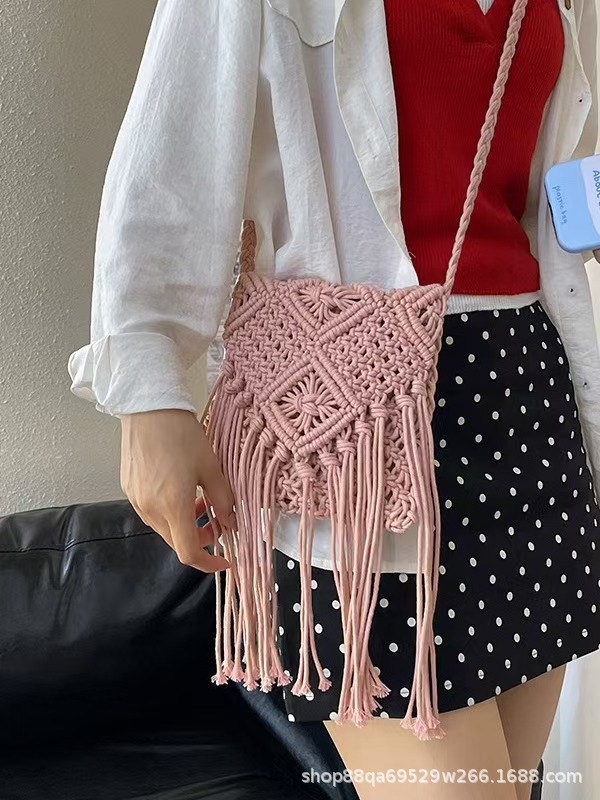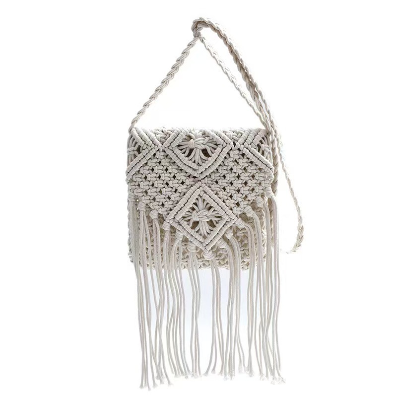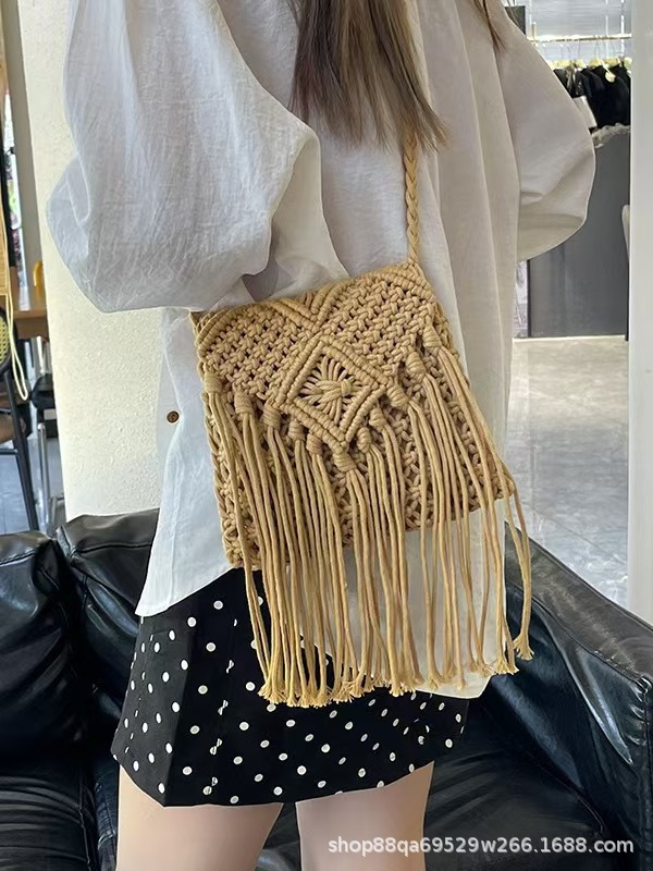 보헤미안 스타일 술 짚으로 짠 가방 작은 광장 가방 여성용 크로스 바디 가방 홀리데이 비치 백 수제 짠 가방스토어 가기