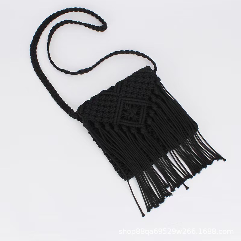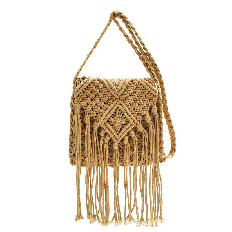 보헤미안 스타일 술 짚으로 짠 가방 작은 광장 가방 여성용 크로스 바디 가방 홀리데이 비치 백 수제 짠 가방