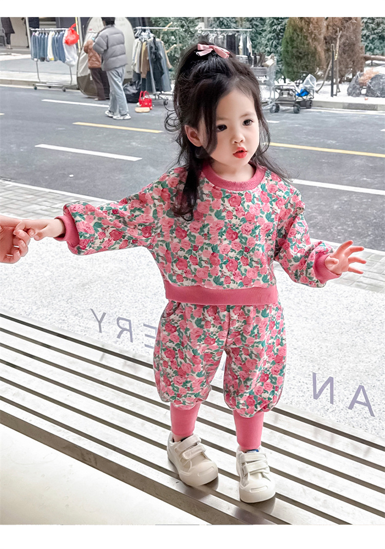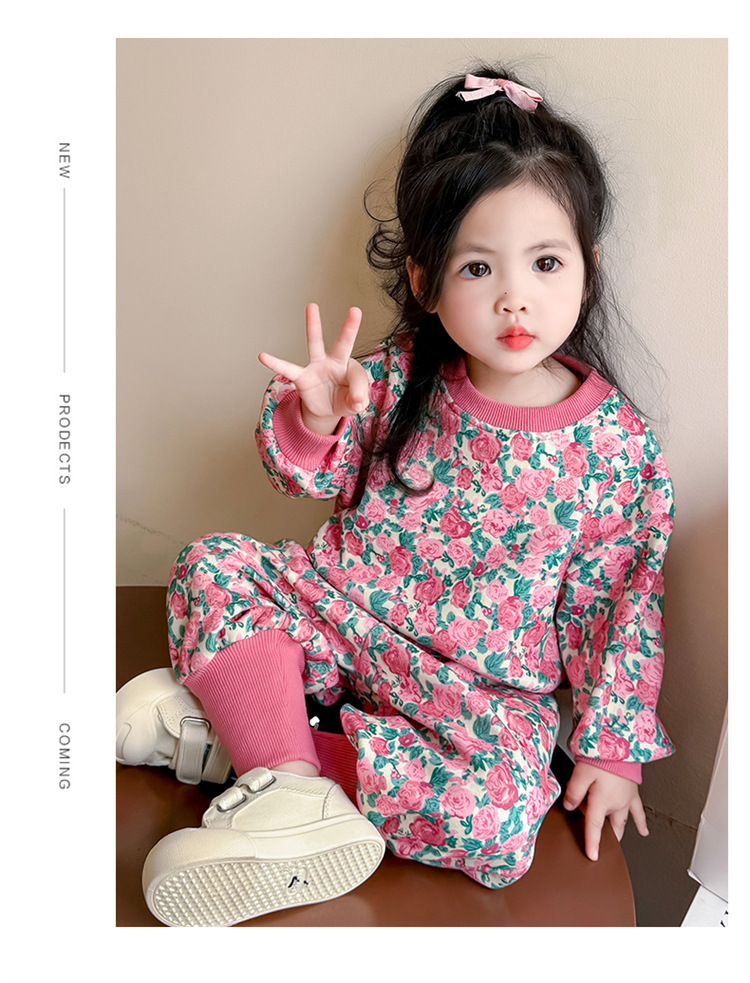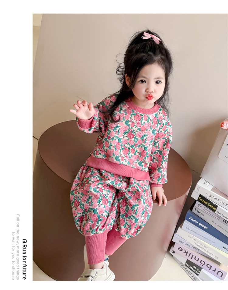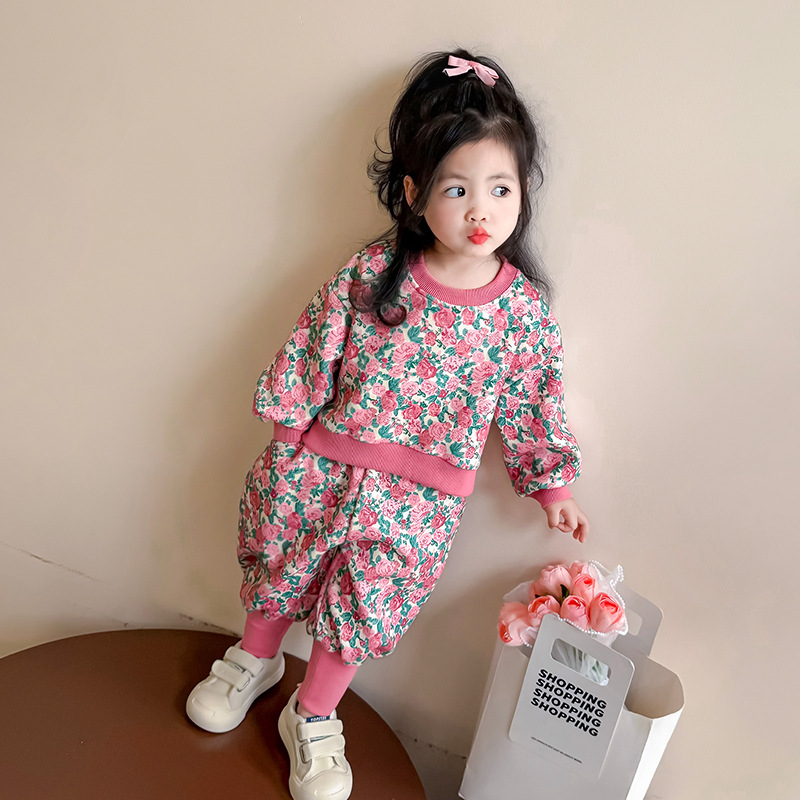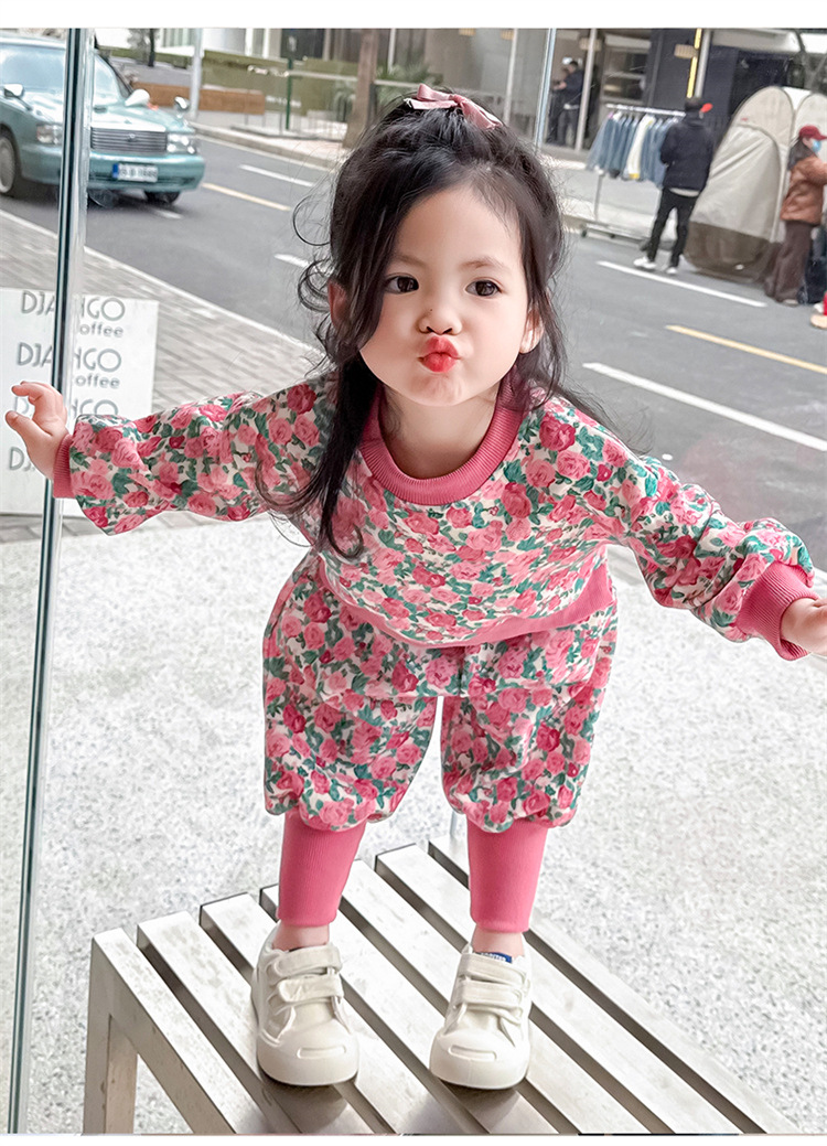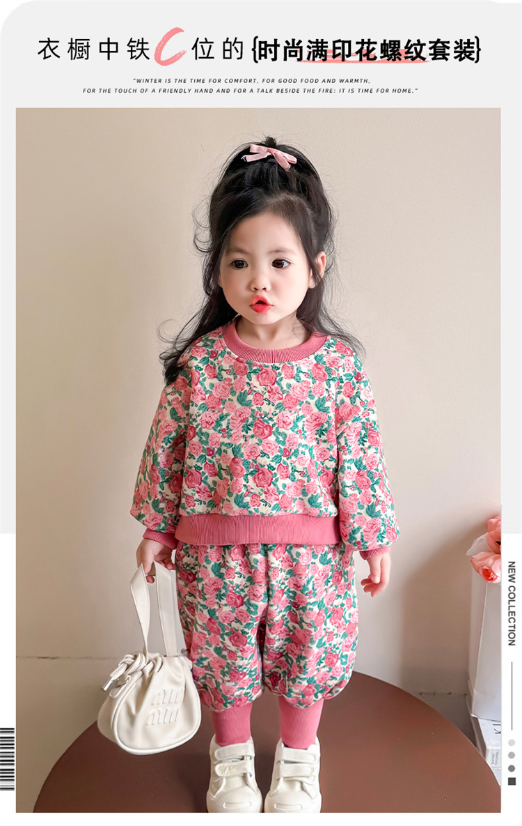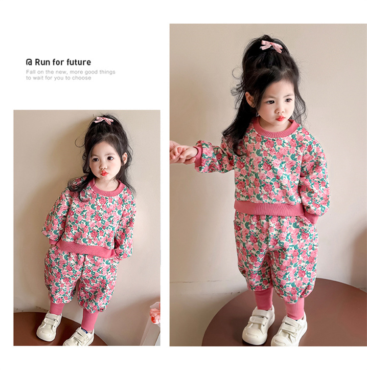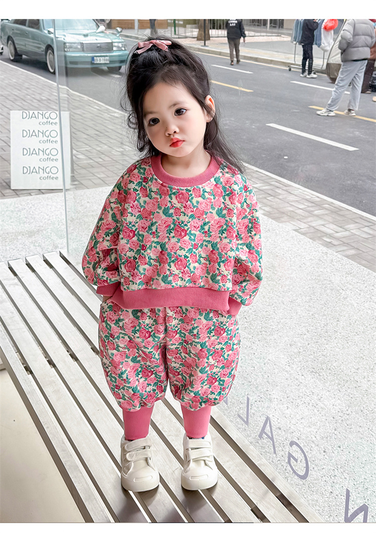소녀 전체 인쇄 스레드 세트 봄과 가을 2025 새로운 패션 소녀 스포츠 투피스 아동복스토어 가기