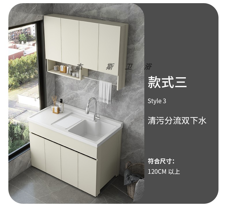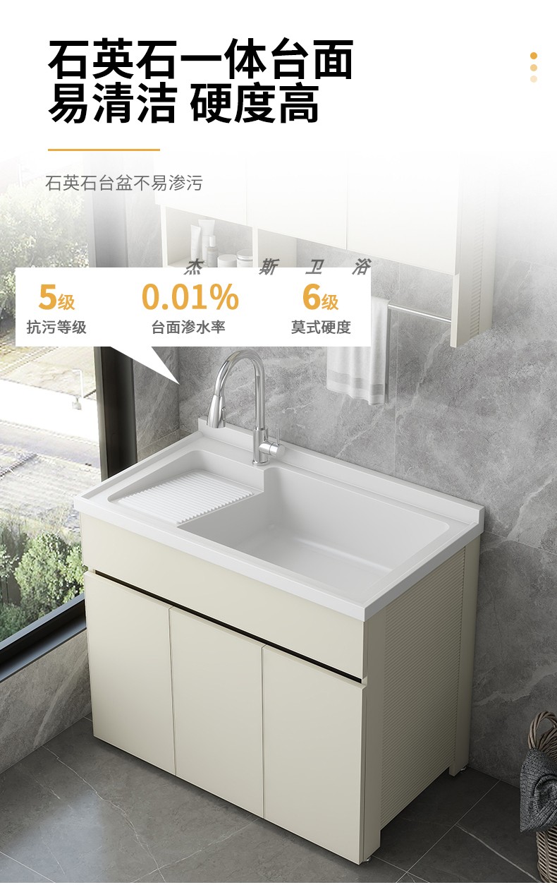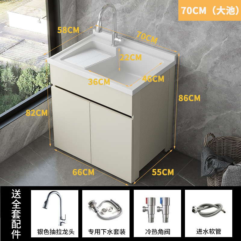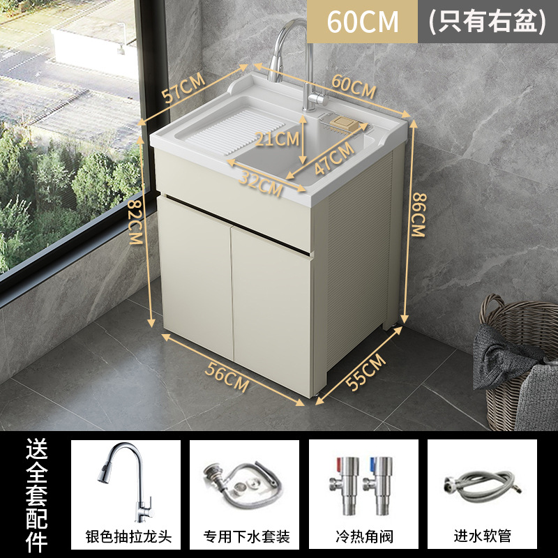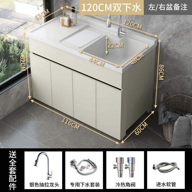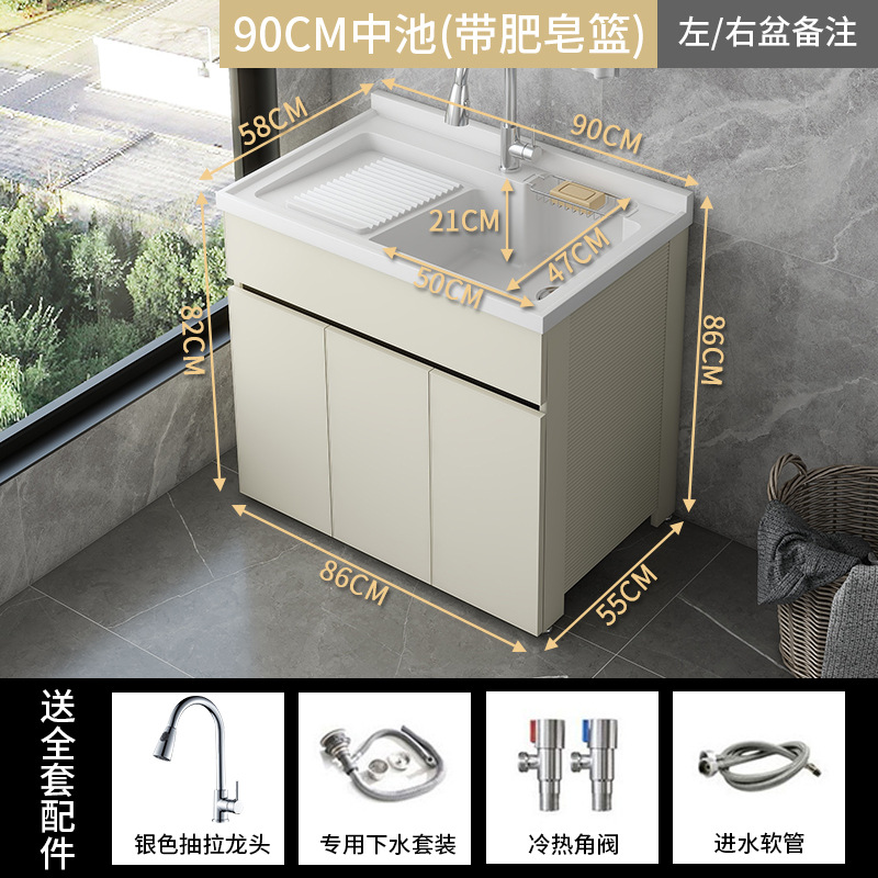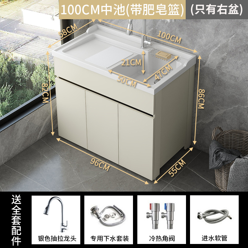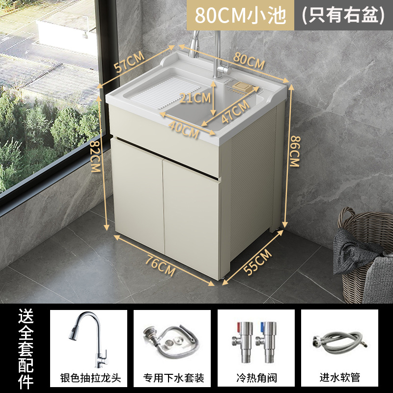 발코니 세탁 캐비닛 통합 캐비닛 조합 공간 알루미늄 세척 분지 세탁 탱크 대형 석영 석재 세탁 탱크 통합 테이블 분지스토어 가기