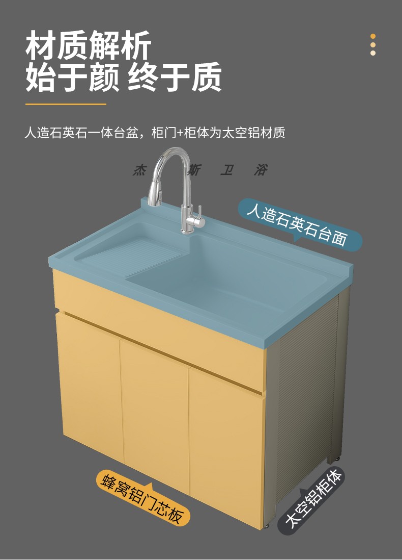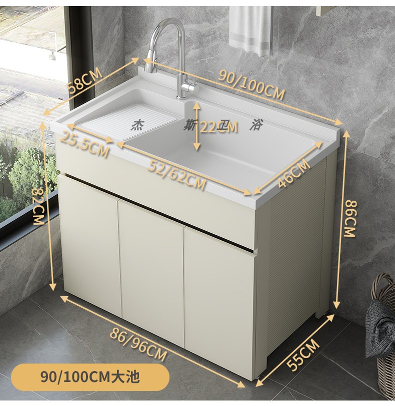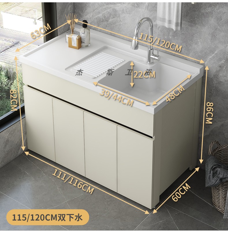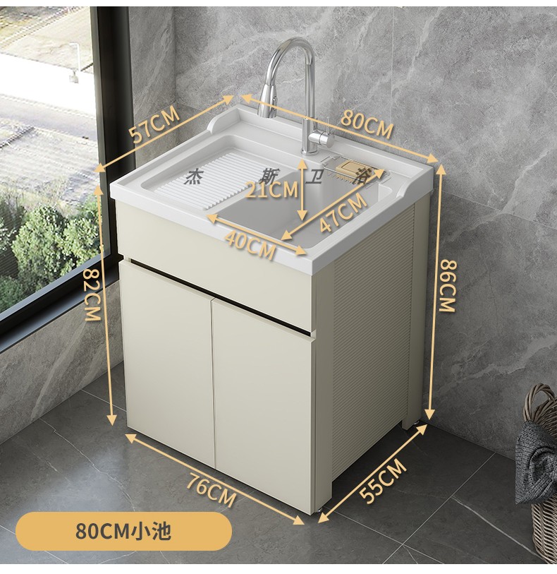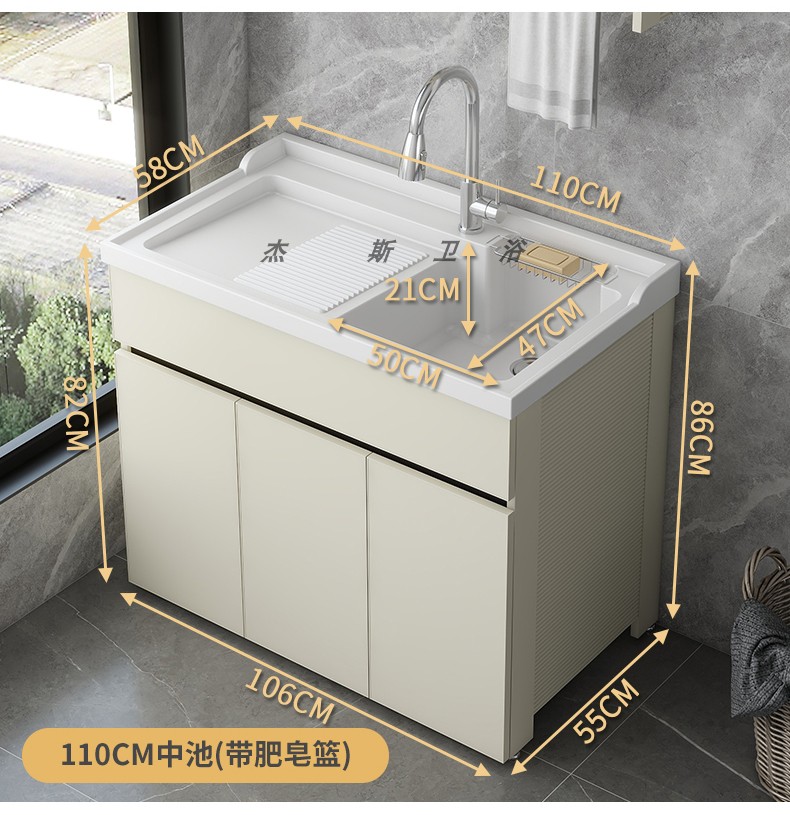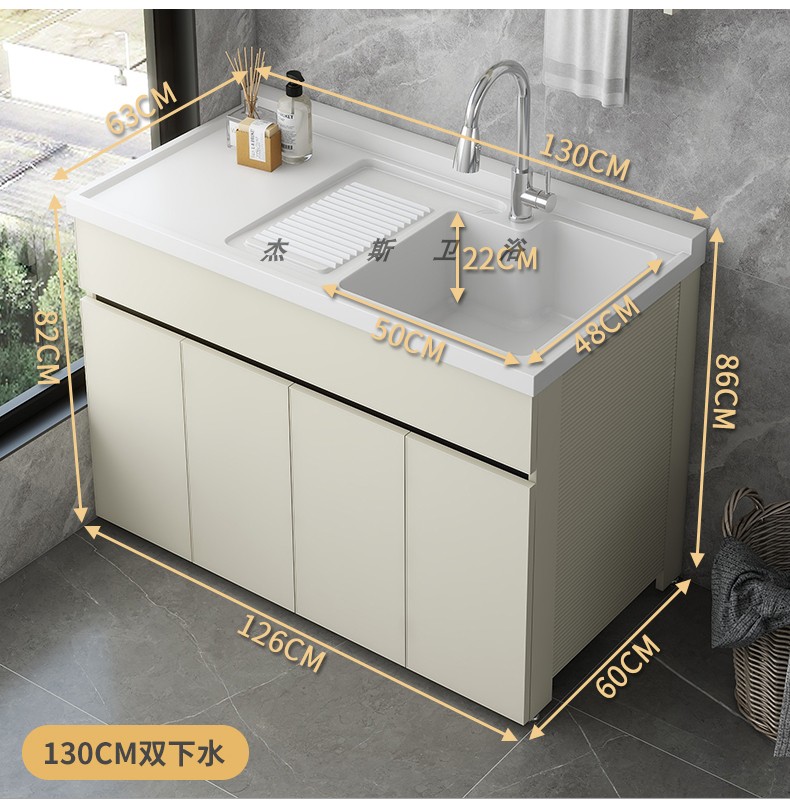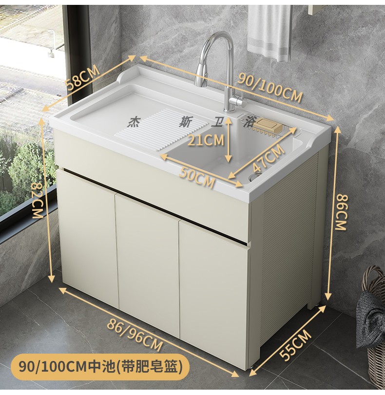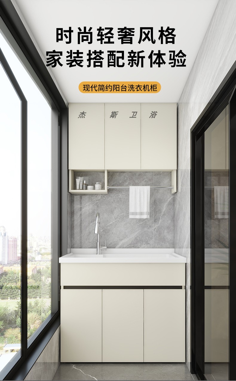 발코니 세탁 캐비닛 통합 캐비닛 조합 공간 알루미늄 세척 분지 세탁 탱크 대형 석영 석재 세탁 탱크 통합 테이블 분지