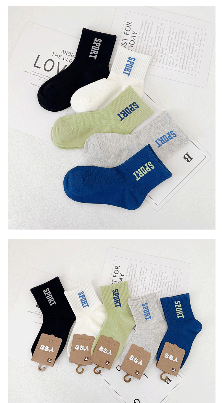Yi Shuang 쌍 어린이 양말 여름 새로운 메쉬 통기성 유행 브랜드 편지 중간 튜브 양말 코튼 보이즈 스포츠 양말스토어 가기