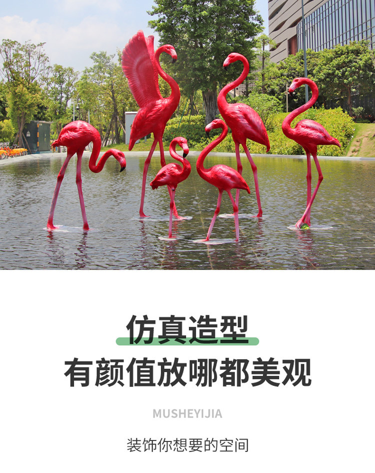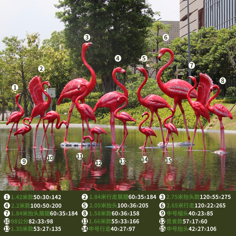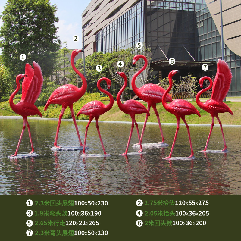 야외 시뮬레이션 플라밍고 장식품 유리 섬유 강화 플라스틱 정원 풍경 조각 웨딩 소품 안뜰 쇼핑몰 장식스토어 가기