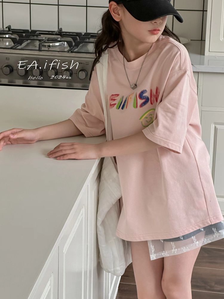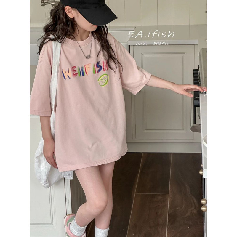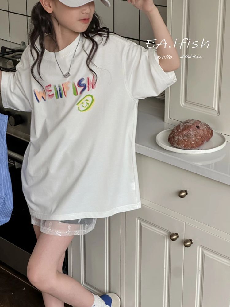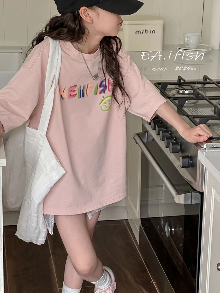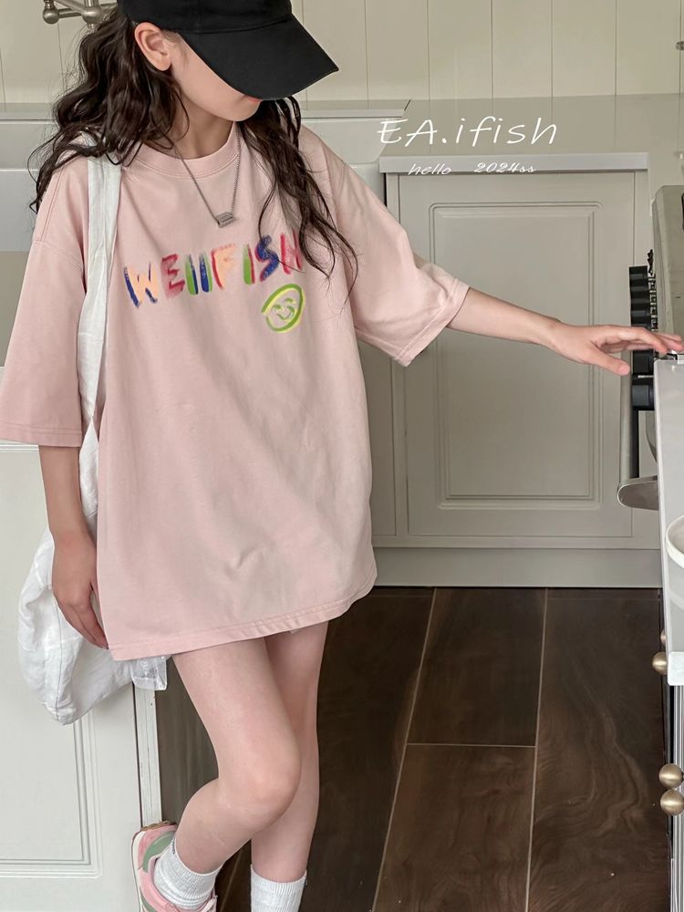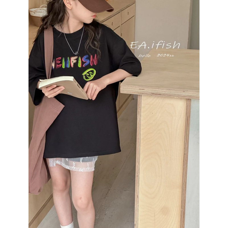 [목줄 테두리] 여자 반소매 최고 여름 2025 새로운 패션 여름 옷 어린이 반팔 티셔츠스토어 가기