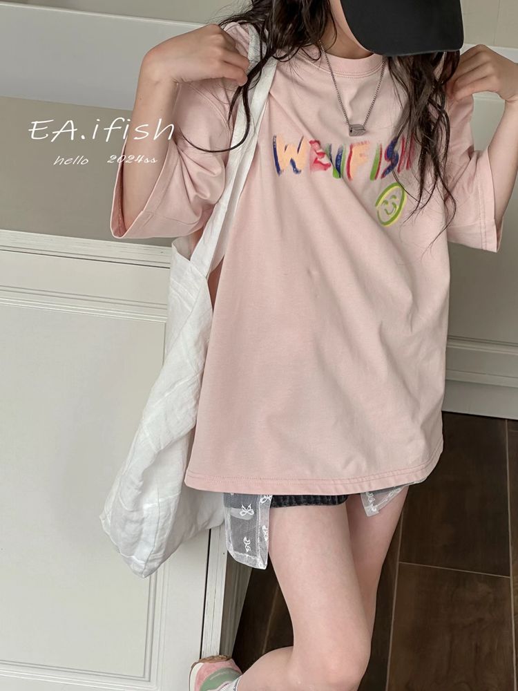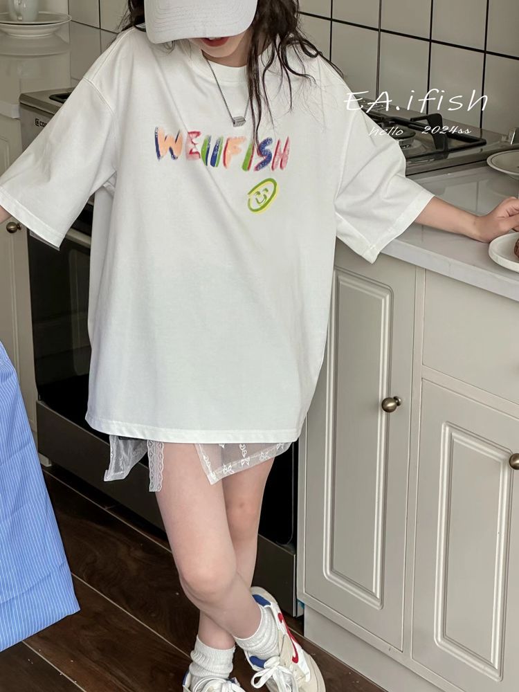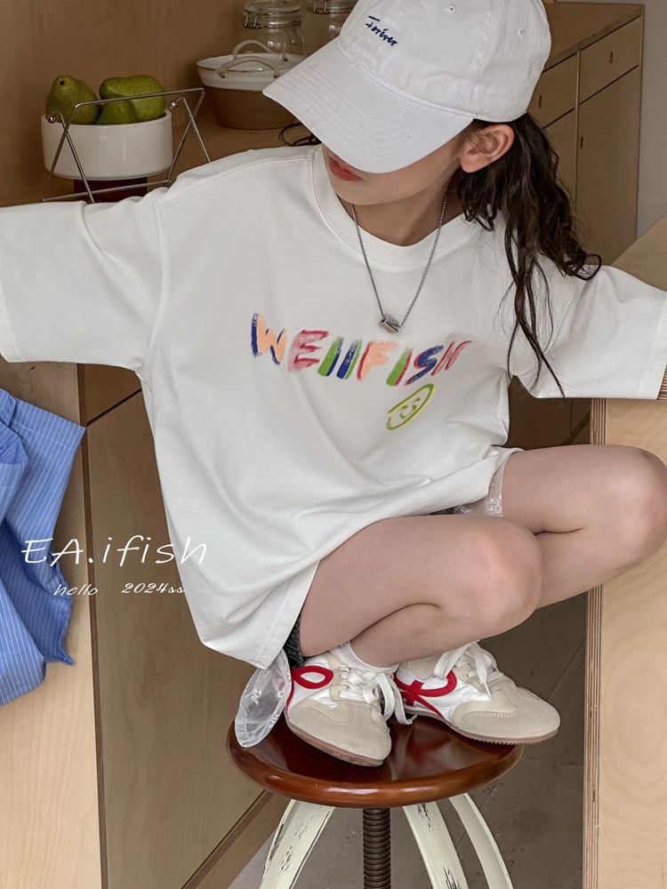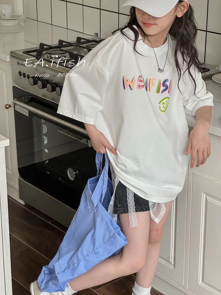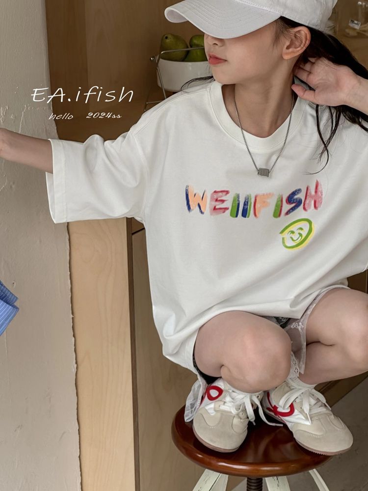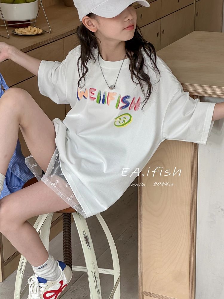 [목줄 테두리] 여자 반소매 최고 여름 2025 새로운 패션 여름 옷 어린이 반팔 티셔츠스토어 가기