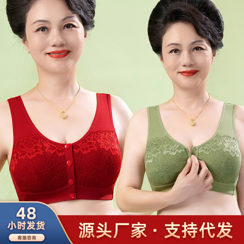 어머니의 레이스 속옷 중년 및 노인 비 테두리 조끼 브래지어 얇은 편안한 프론트 버클 여성 브래지어 여름