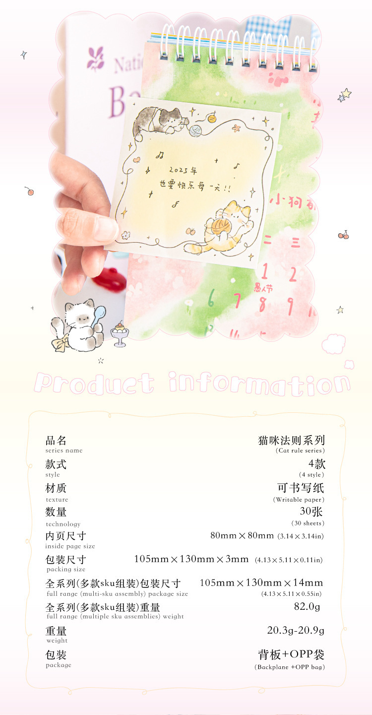 Mo Mo White Kraft 종이 포스트잇 노트 고양이 규칙 시리즈 만화 귀여운 학생 메시지 노트 N 번스토어 가기