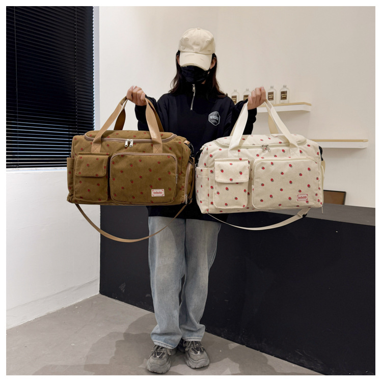 국경 간 단거리 여행 보관 가방 여성 대용량 경량 체육관 가방 달콤한 나가는 코듀로이 보관 가방
