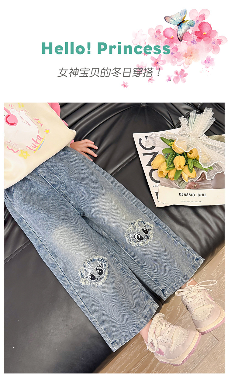 소녀 서양식 느슨한 캐주얼 봄과 가을 부드러운 청바지 어린이 외부 착용 2025 새로운 아기 바지 봄 패션스토어 가기