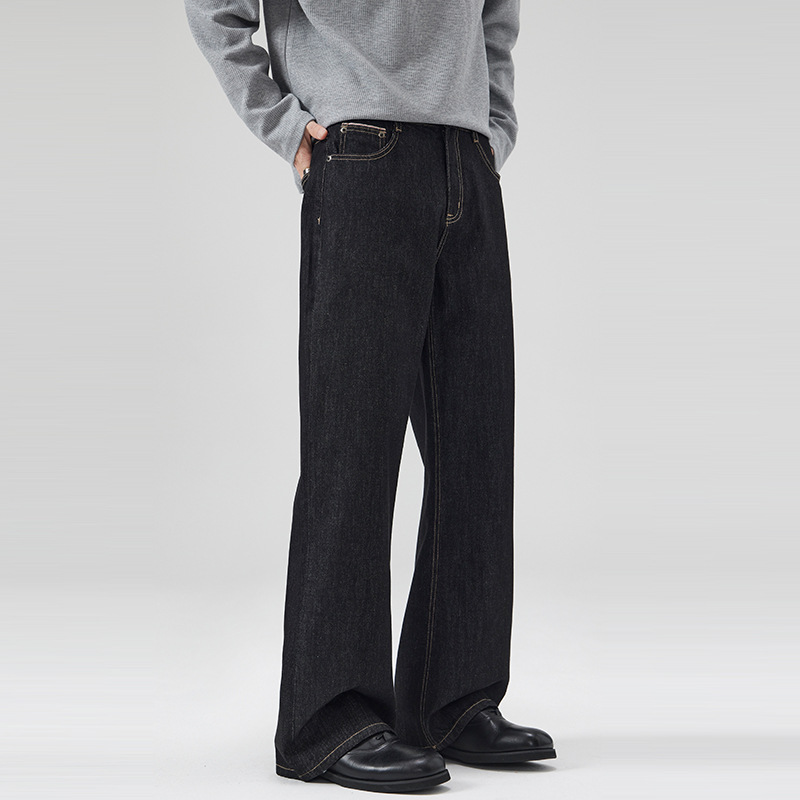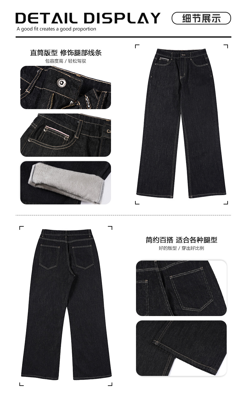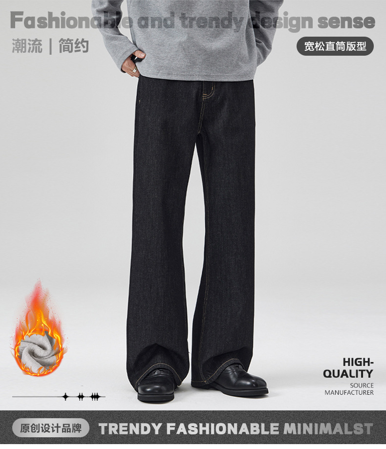 LKTM 남성복 가을 겨울 기모 두꺼운 천연 소가죽 무변색 청바지 남녀공용 클린핏 다용도 긴바지스토어 가기