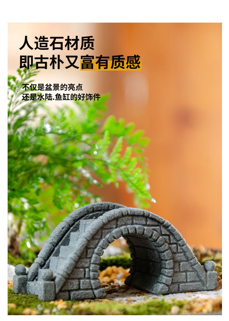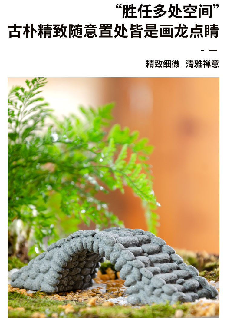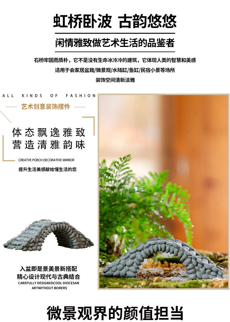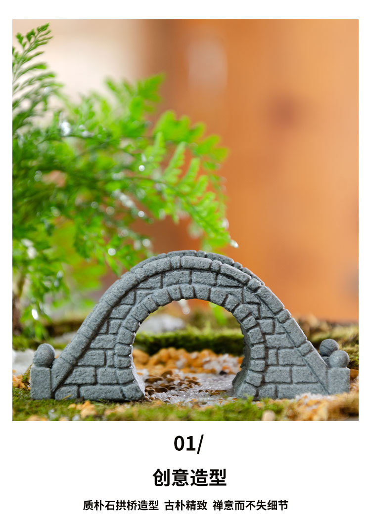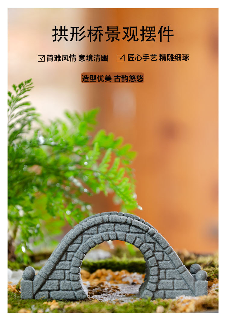 장식품 작은 다리 흐르는 물 조경 조약돌 아치 다리 데스크탑 바위 물 풍경 물고기 탱크 소형 조경 장식 복고풍