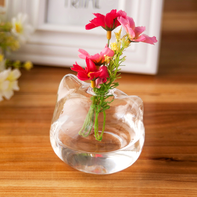 일본식 유리 꽃병 홈 장식 고양이 바탕 화면 녹색 식물 수경 꽃병 창조적 인 마이크로 풍경 장식품스토어 가기