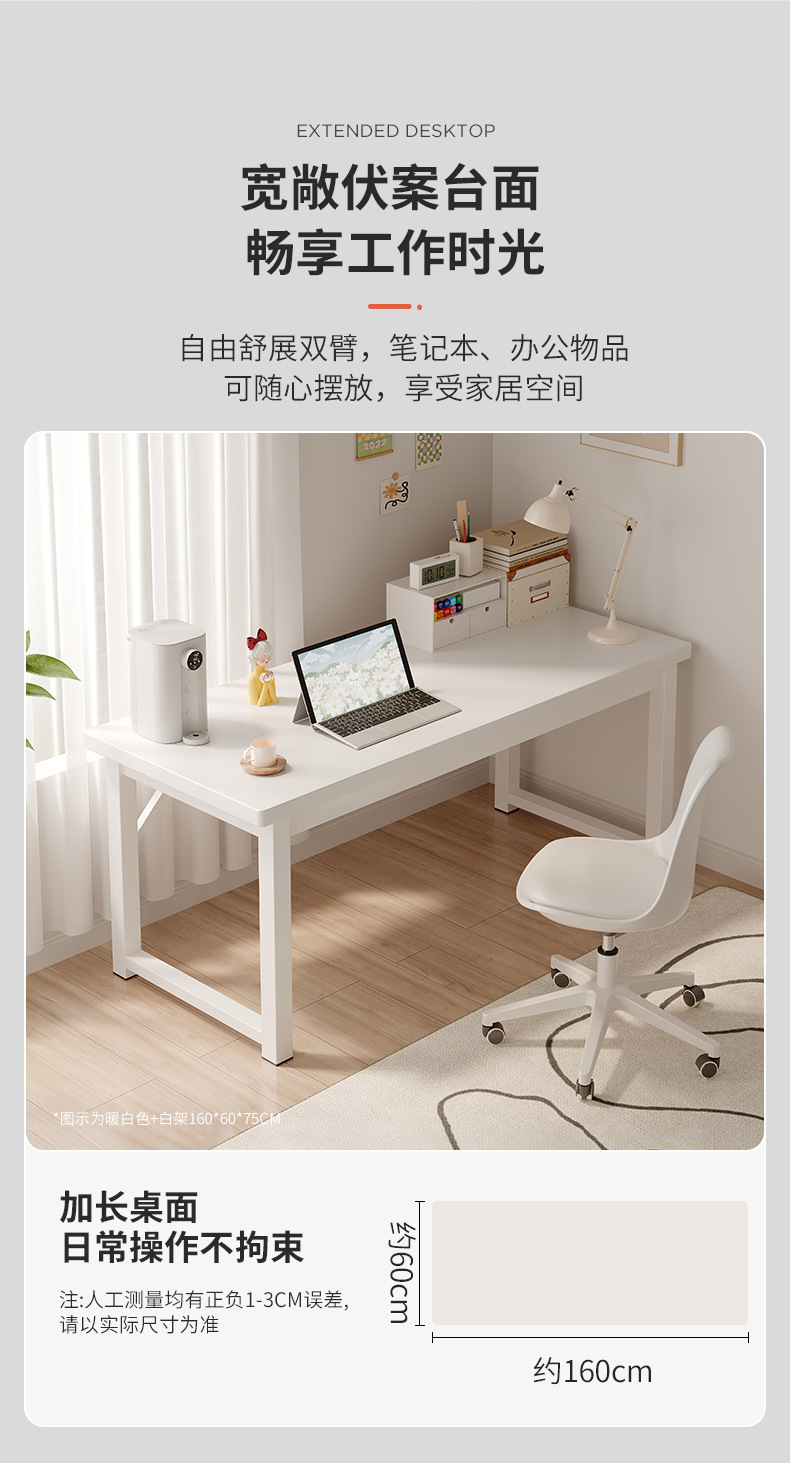 • 길이 160 폭 60 높이 75 [두꺼운 30mm 테이블 다리] 삼각형 강화 따뜻한 흰색