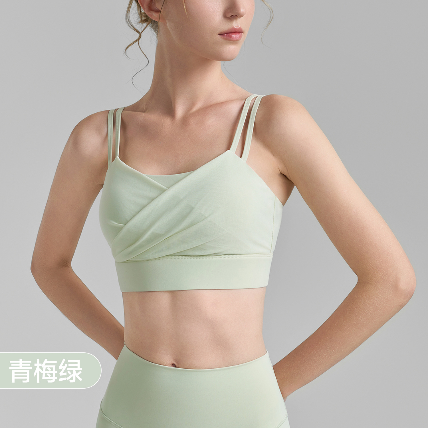 순수한 섹시 스타일 투피스 요가탑 2026 신상 메쉬 주름 스포츠 브라 등 노출 피트니스 탑 여성용스토어 가기