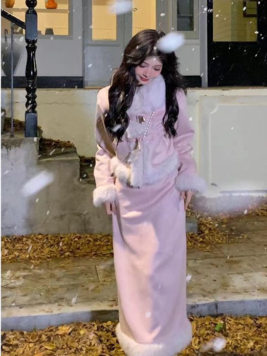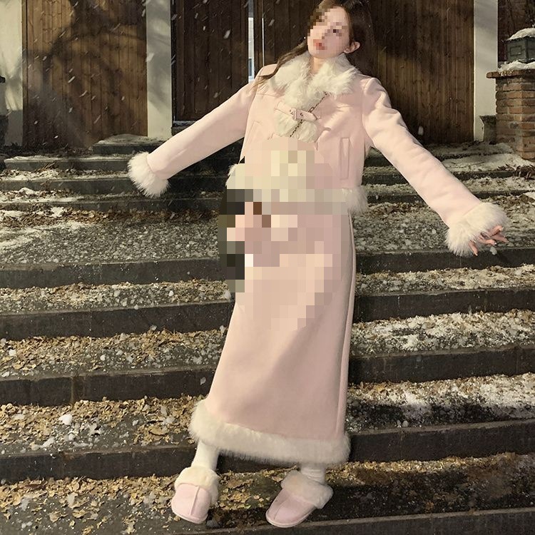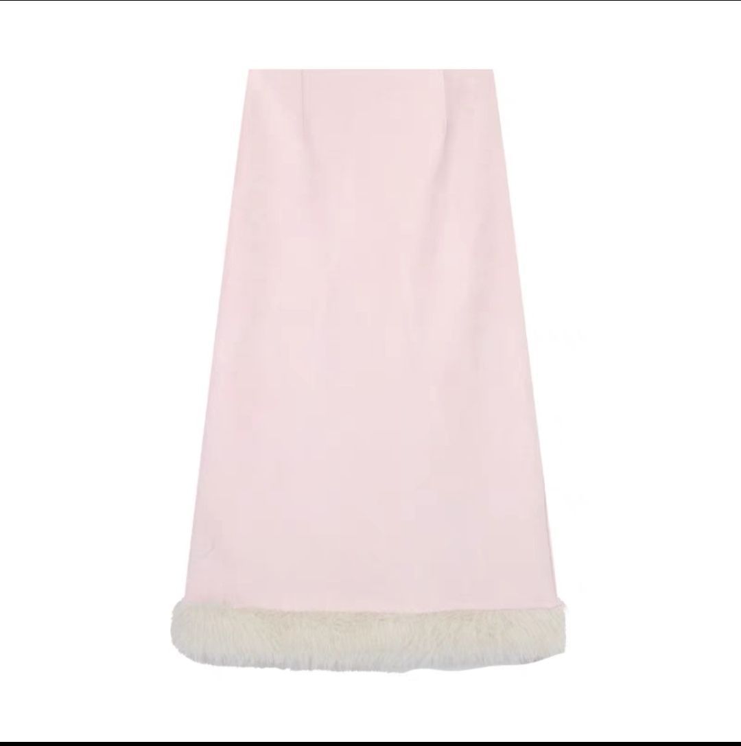 • 라이트 핑크 탑 + 롱 스커트 [화이트 퍼]