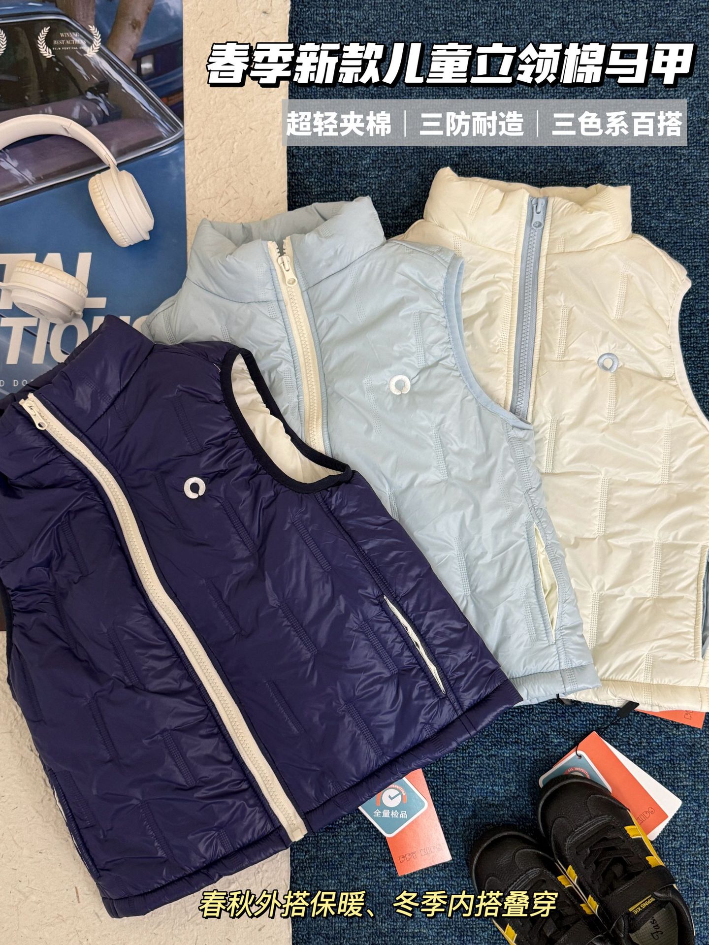 26ss 봄 신상 남녀 아동용 아웃도어 스타일의 스탠드 칼라 누빔 경량 보온 중대형 아동용 면 조끼 재킷스토어 가기